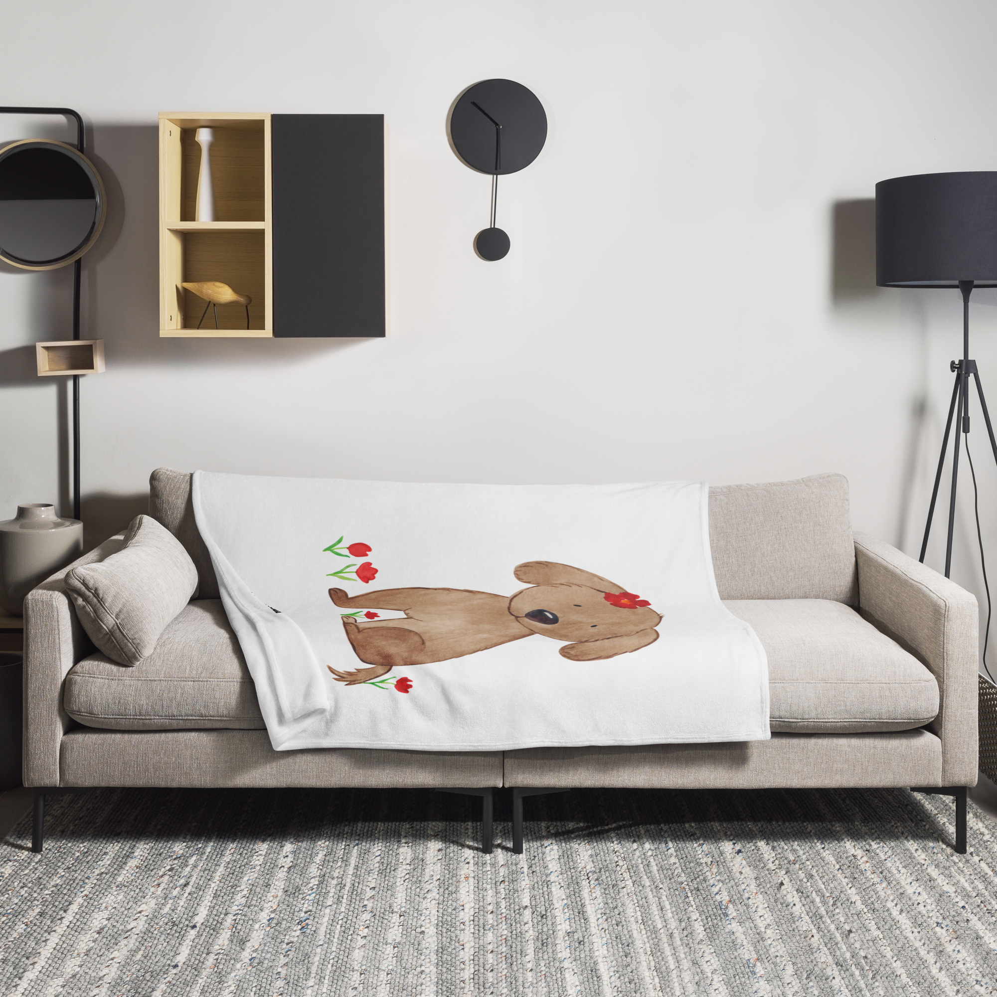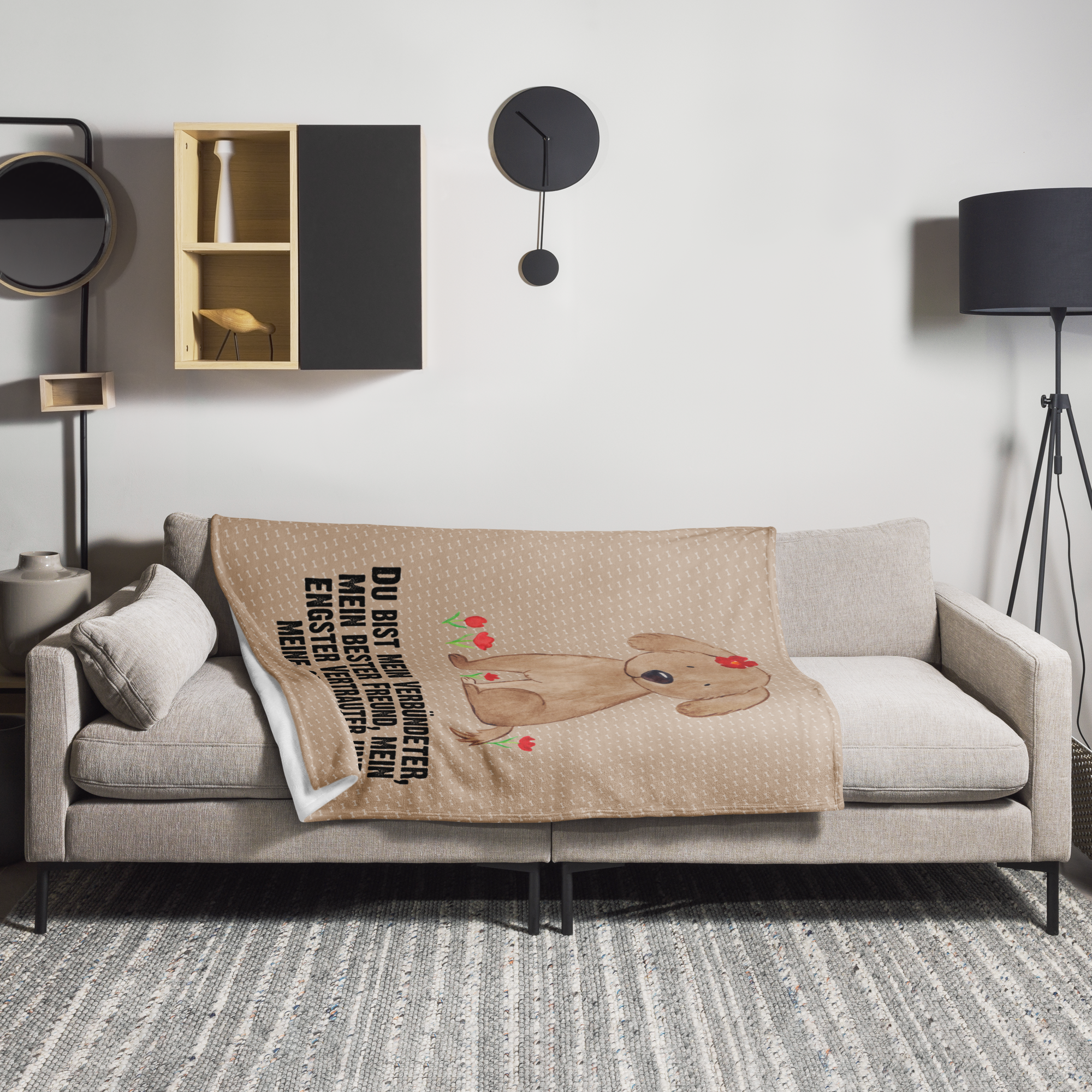 Die super flauschige Kuscheldecke von Mr. & Mrs. Panda, ist ideal für kalte Monate und Tage. Die Größe der Kuscheldecke beträgt 127 x 153 cm und ist somit perfekt, um es sich im Wohnzimmer auf dem Sofa oder im Schlafzimmer auf dem Bett gemütlich zu machen.Die Sofadecke besteht aus Kuschel Fleece Mikrofaser und ist extrem flauschig. Die fellartige Kuscheldecke schmiegt sich herrlich weich an deinen Körper und wärmt außerordentlich gut, so wirst du sicherlich nicht frieren. Die Decke zeichnet sich durch ihre hochwertige und strapazierfähige Qualität aus. Alternativ kannst du die Decke auch 140x200 cm kaufen. Sie eignet sich auch optimal als Tagesdecke für Kinder und Erwachsene.