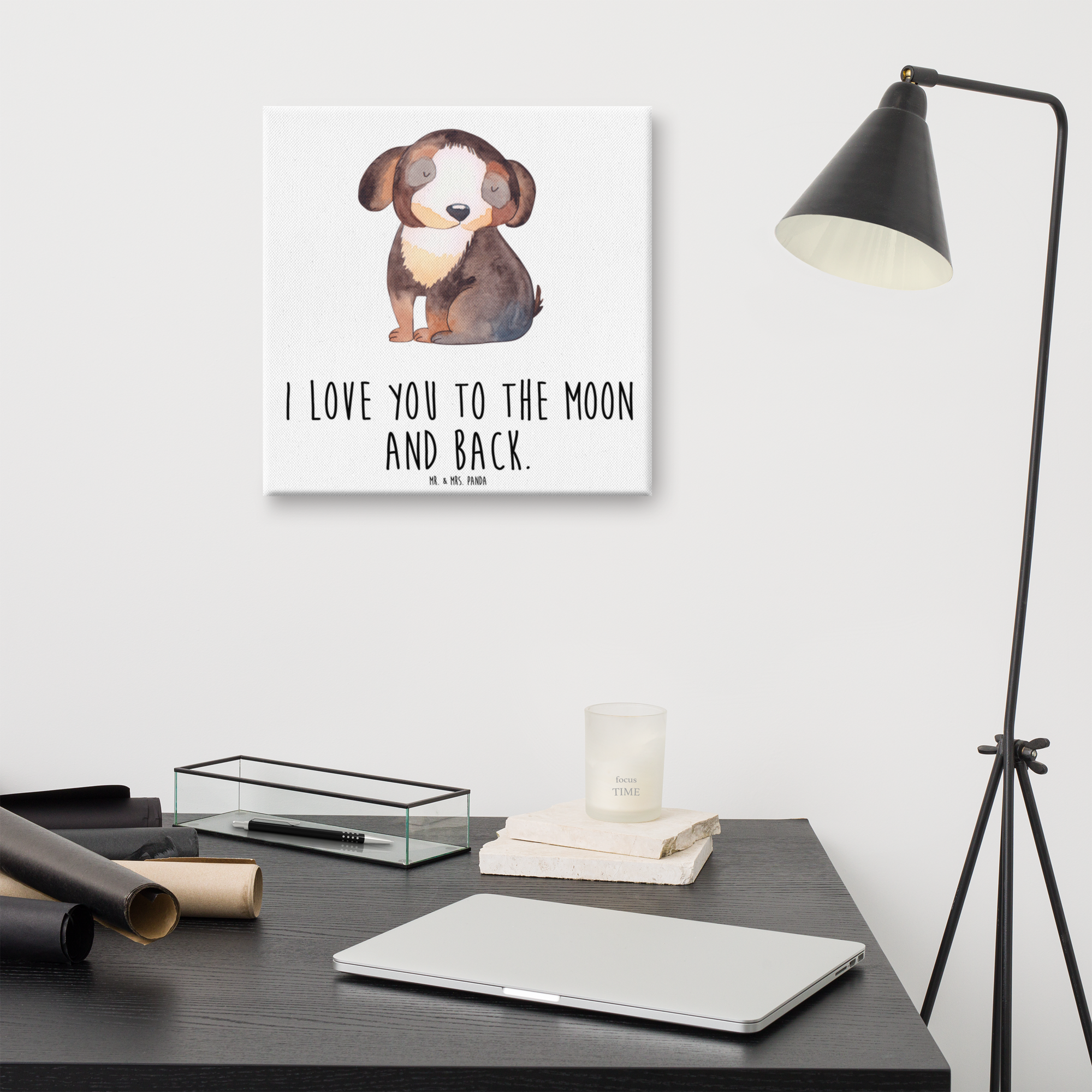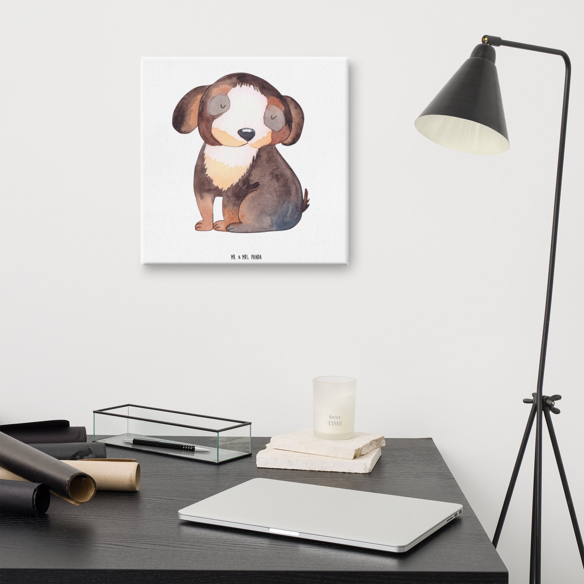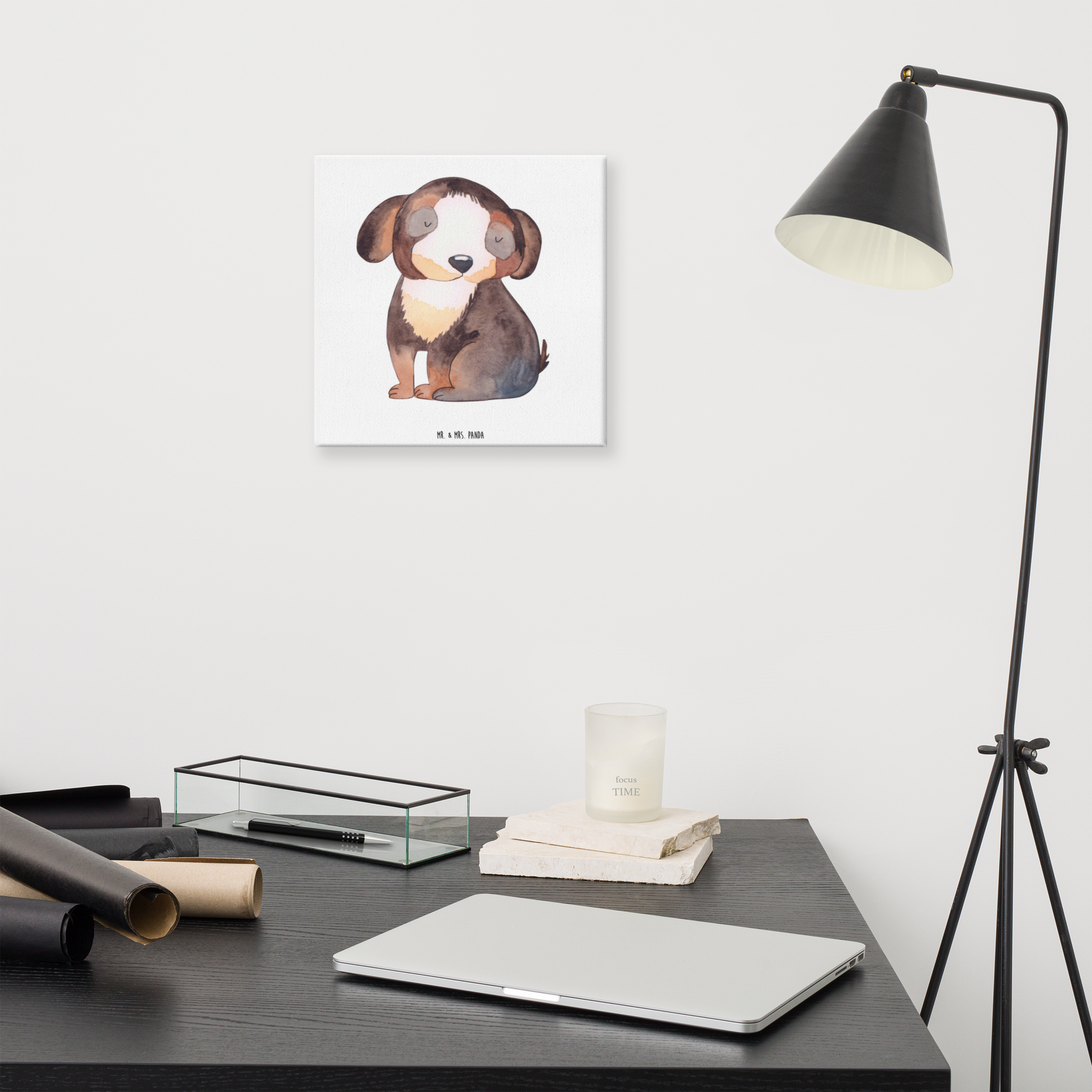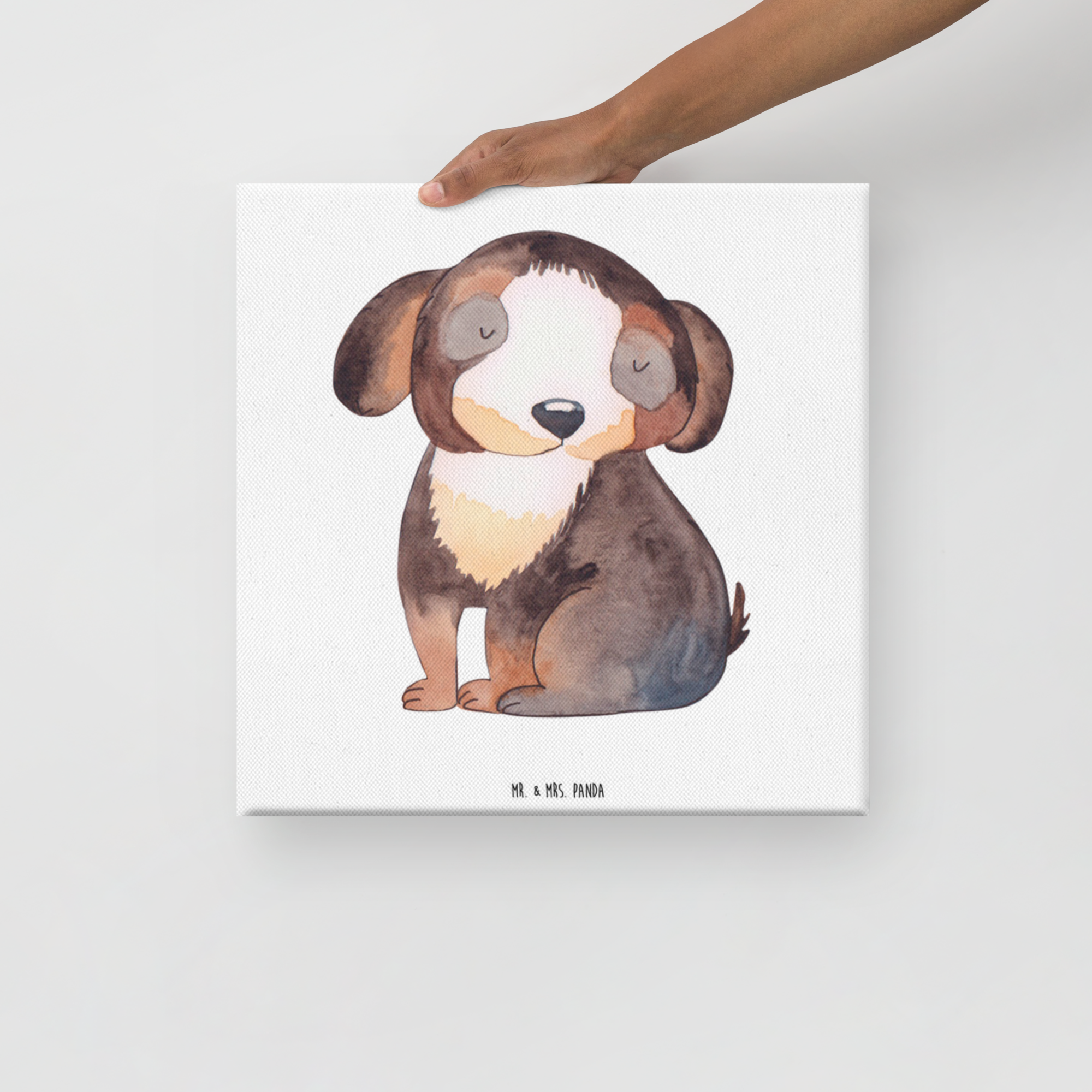 Leinwand Bild Hund entspannt - 40 x 40 cm - mit Spruch