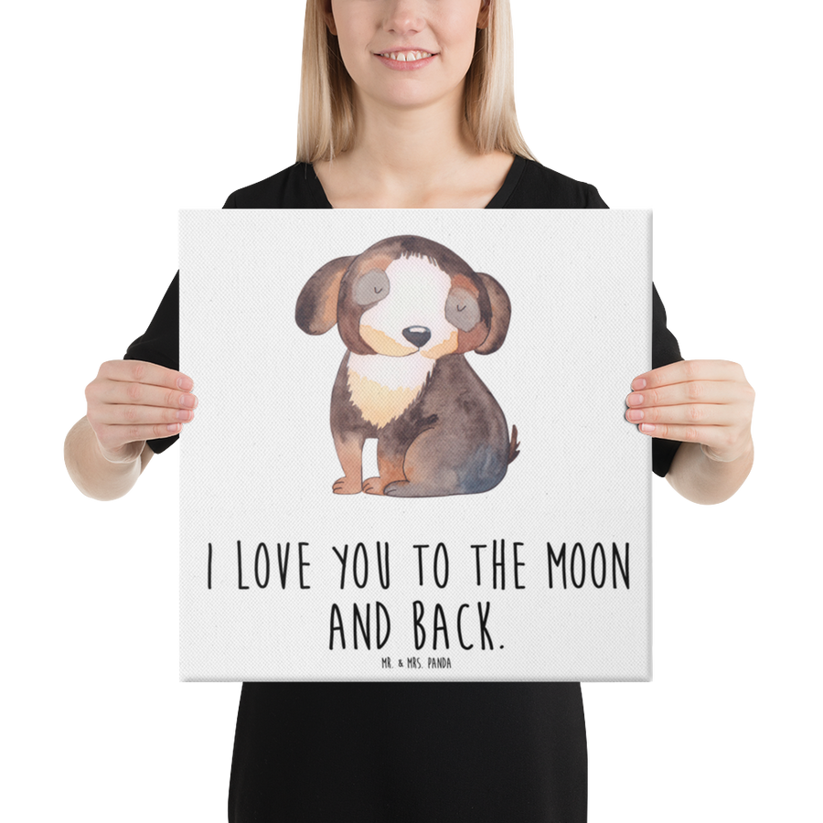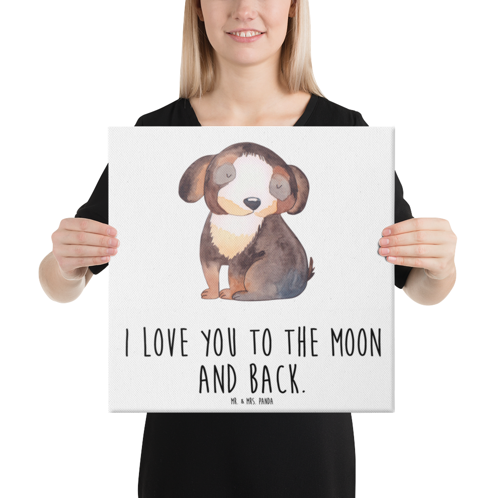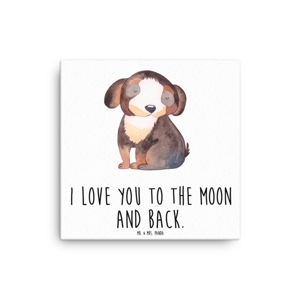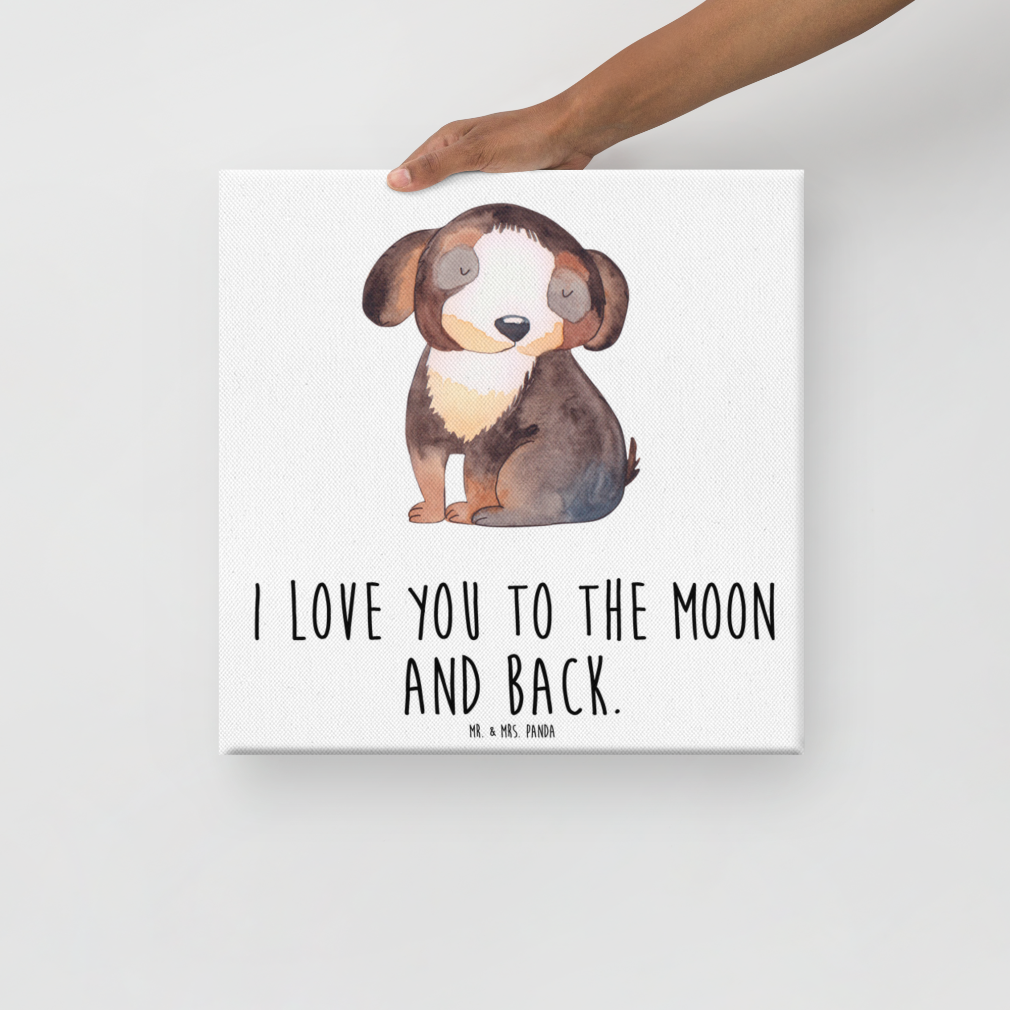 Leinwand Bild Hund entspannt - 40 x 40 cm - mit Spruch