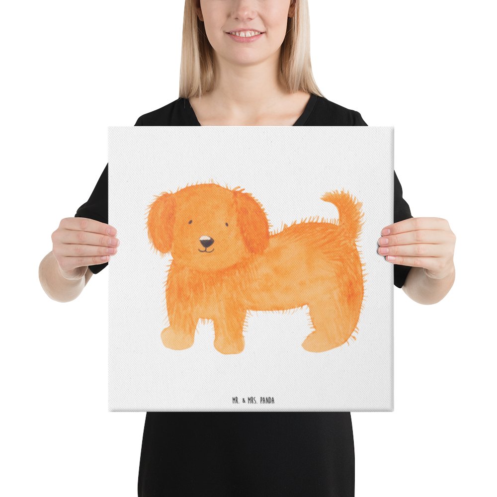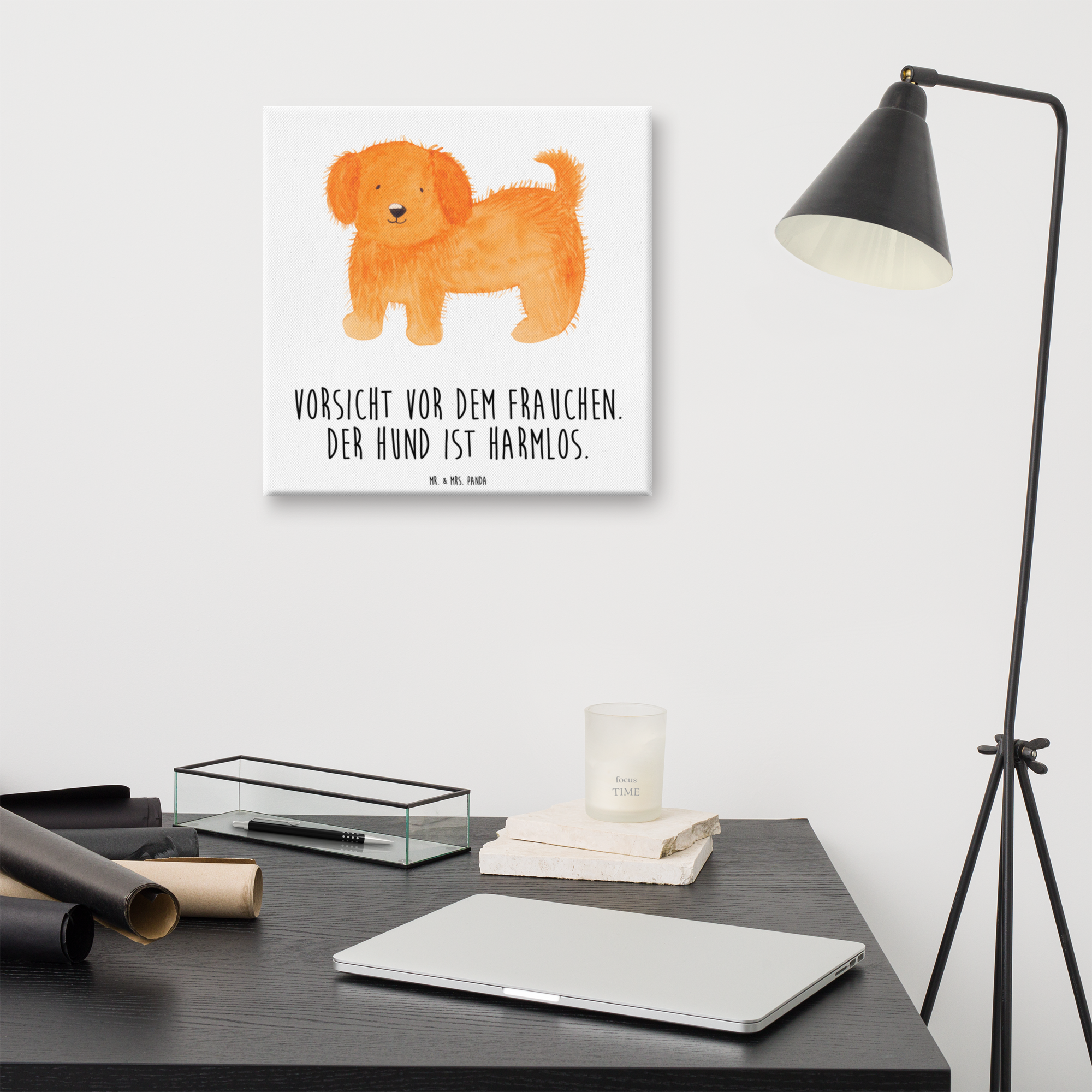 Leinwand Bild Hund flauschig - 40 x 40 cm - mit Spruch