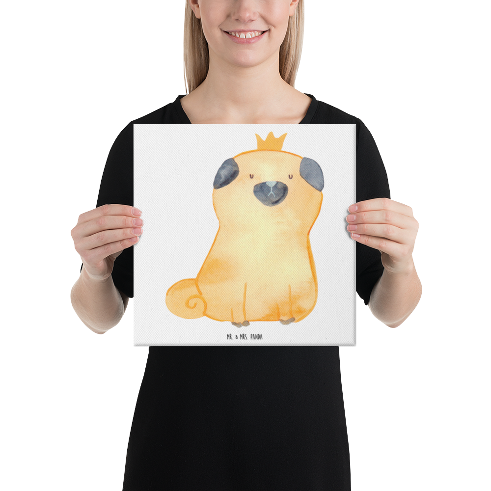 Leinwand Bild Mops Krone - 40 x 40 cm - mit Spruch