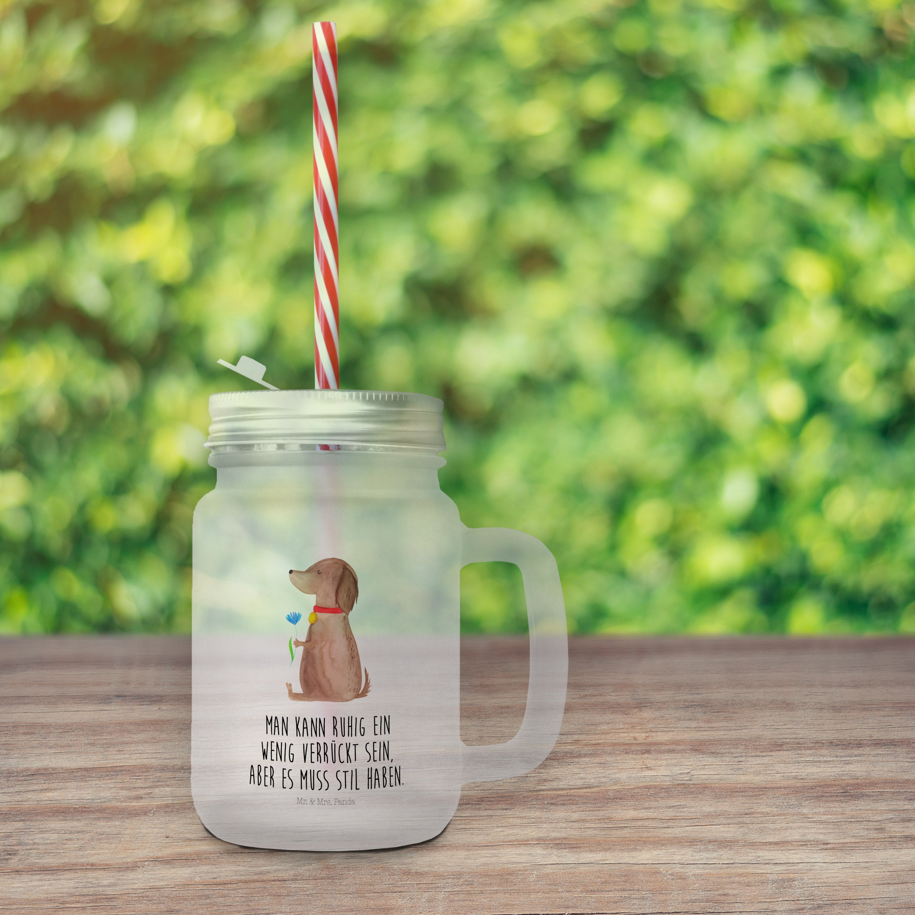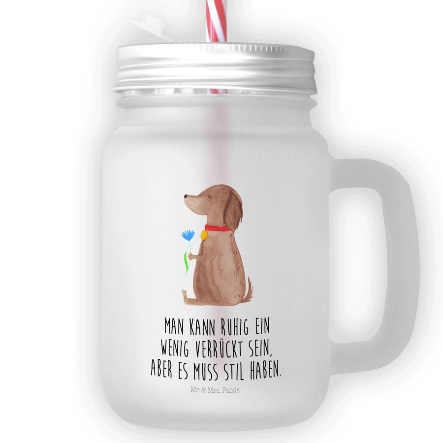 Trinkglas Mason Jar Hund Blume - mit Spruch