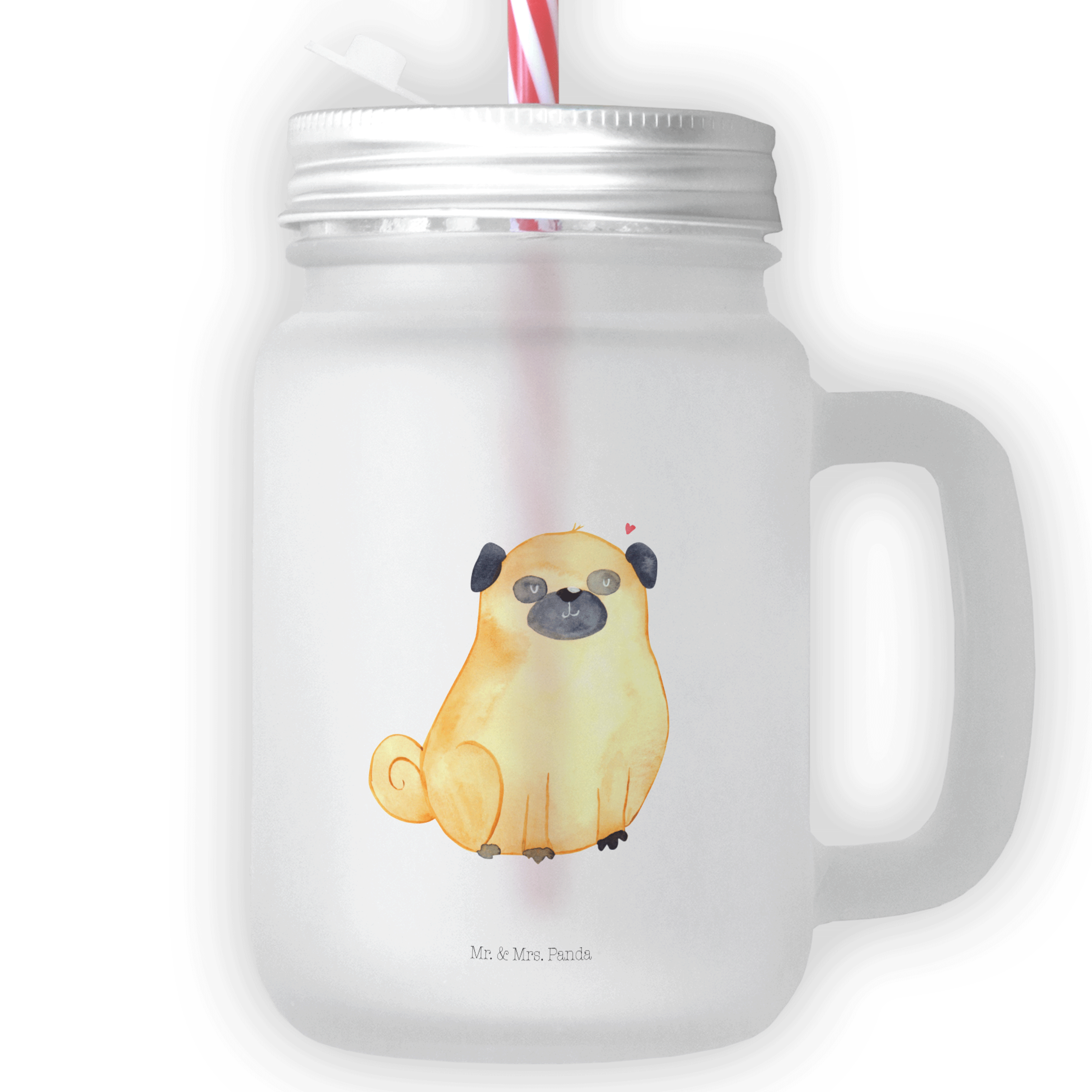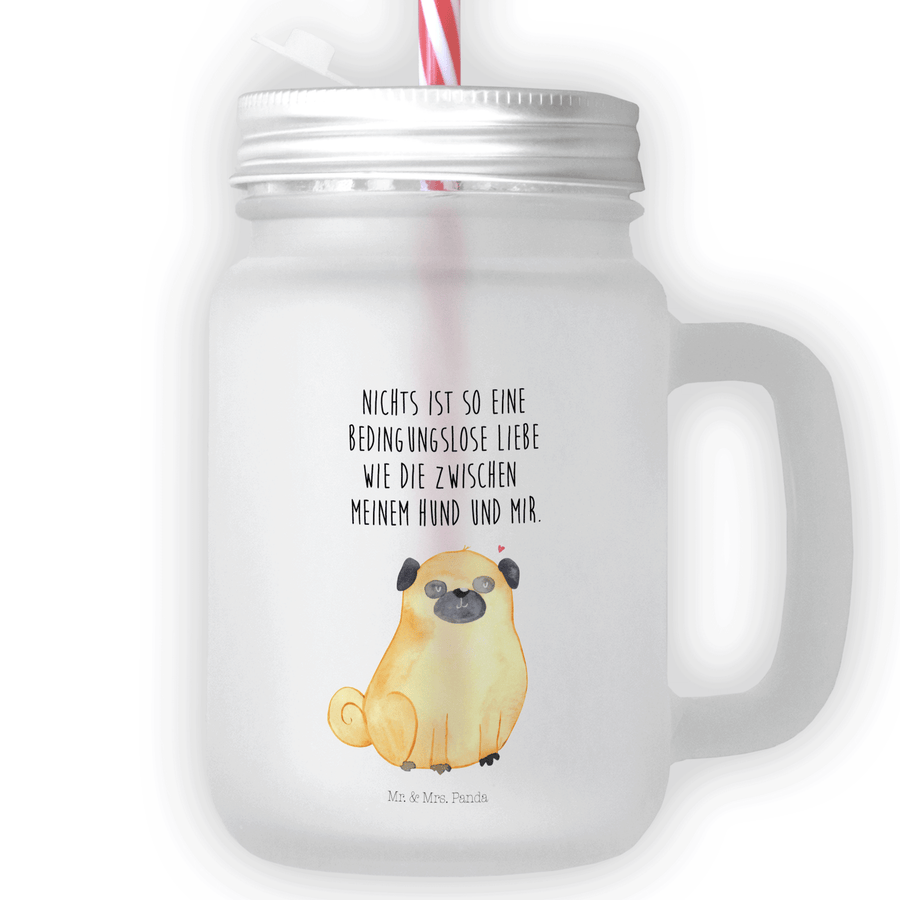 Trinkglas Mason Jar Mops Mason Jar, Glas, Trinkglas, Henkelglas, Sommerglas, Einmachglas, Cocktailglas, Cocktail-Glas, Mason Jar Trinkglas, Satiniertes Glas, Retro-Glas, Strohhalm Glas, Schraubdeckel Glas, Sommerparty Einrichtung, Hund, Hundemotiv, Haustier, Hunderasse, Tierliebhaber, Hundebesitzer, Sprüche, Mops, Liebe, Hundeliebe