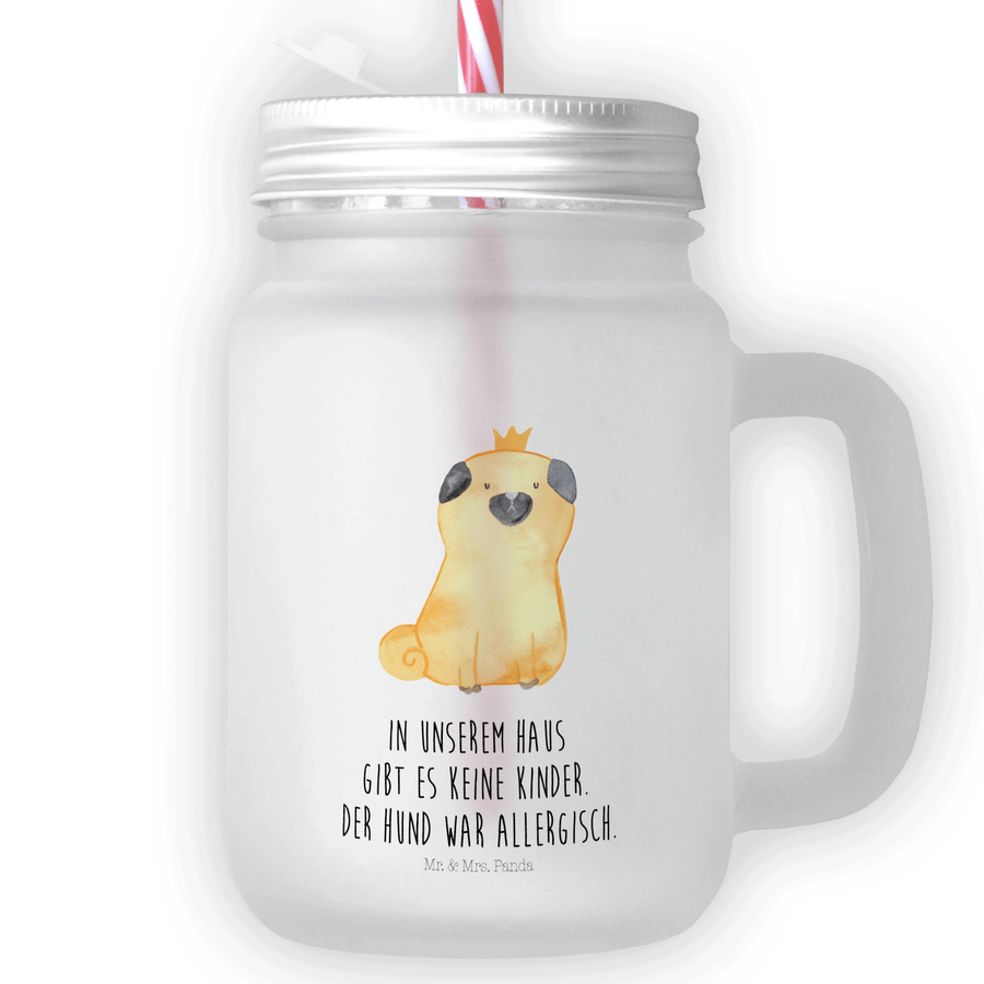 Trinkglas Mason Jar Mops Krone - mit Spruch