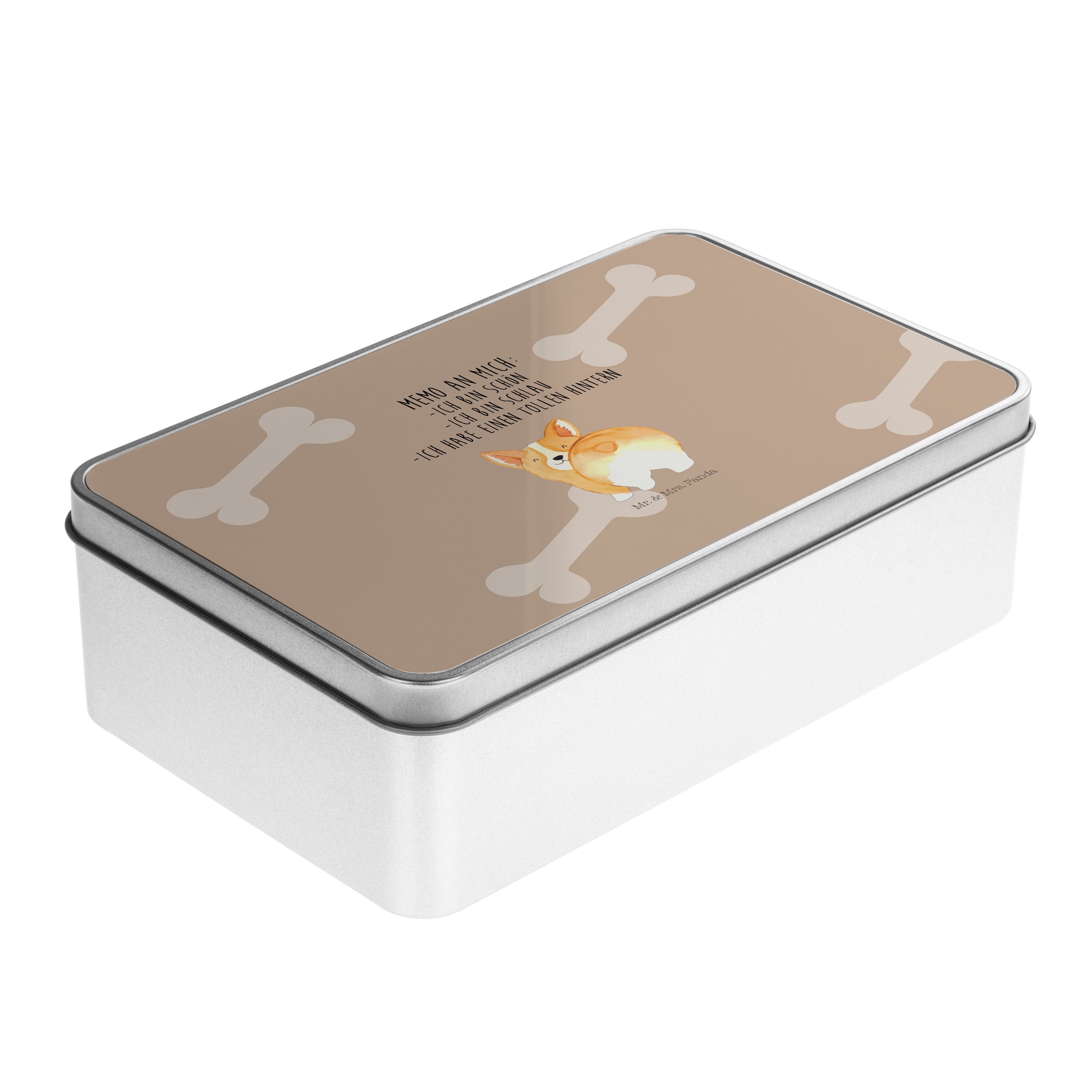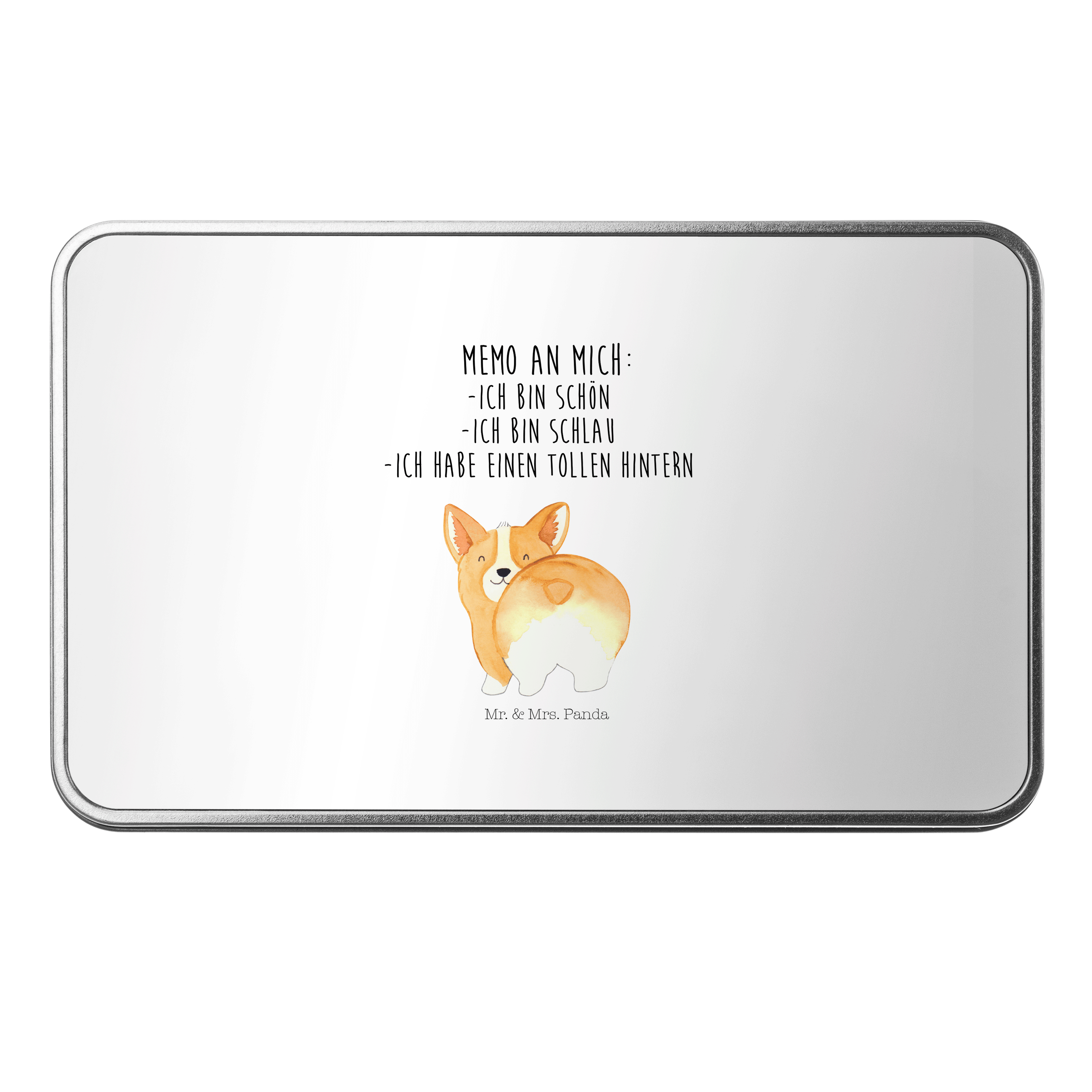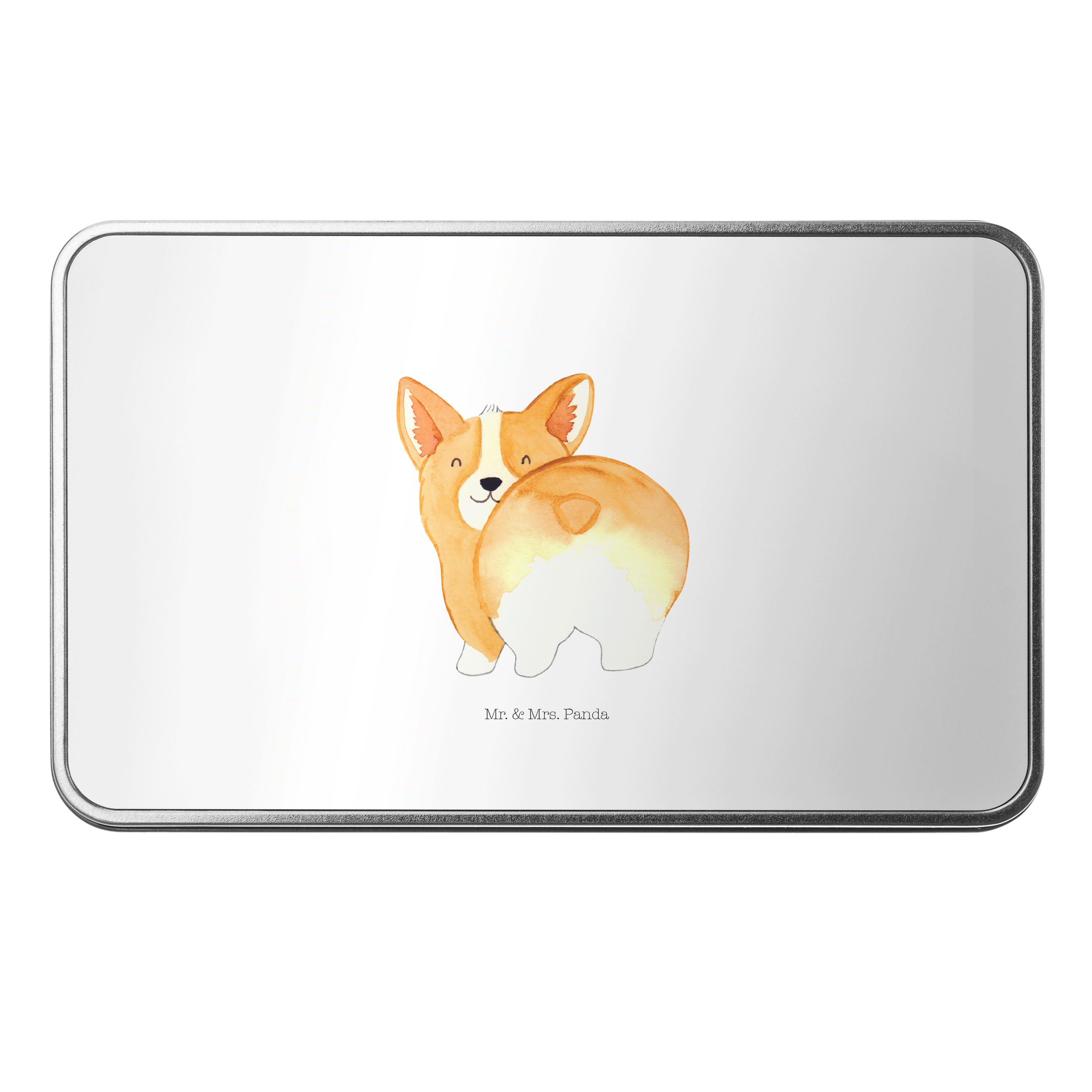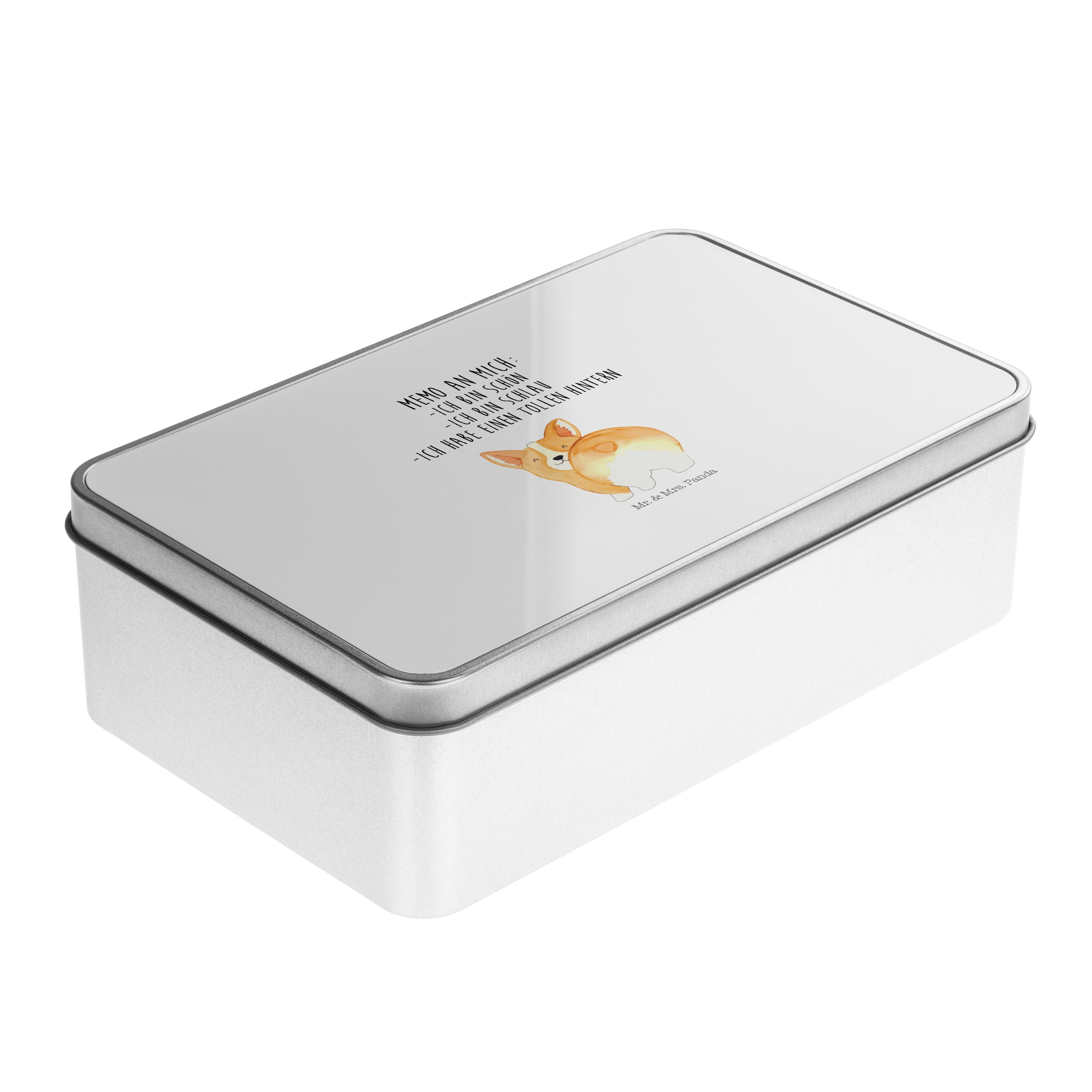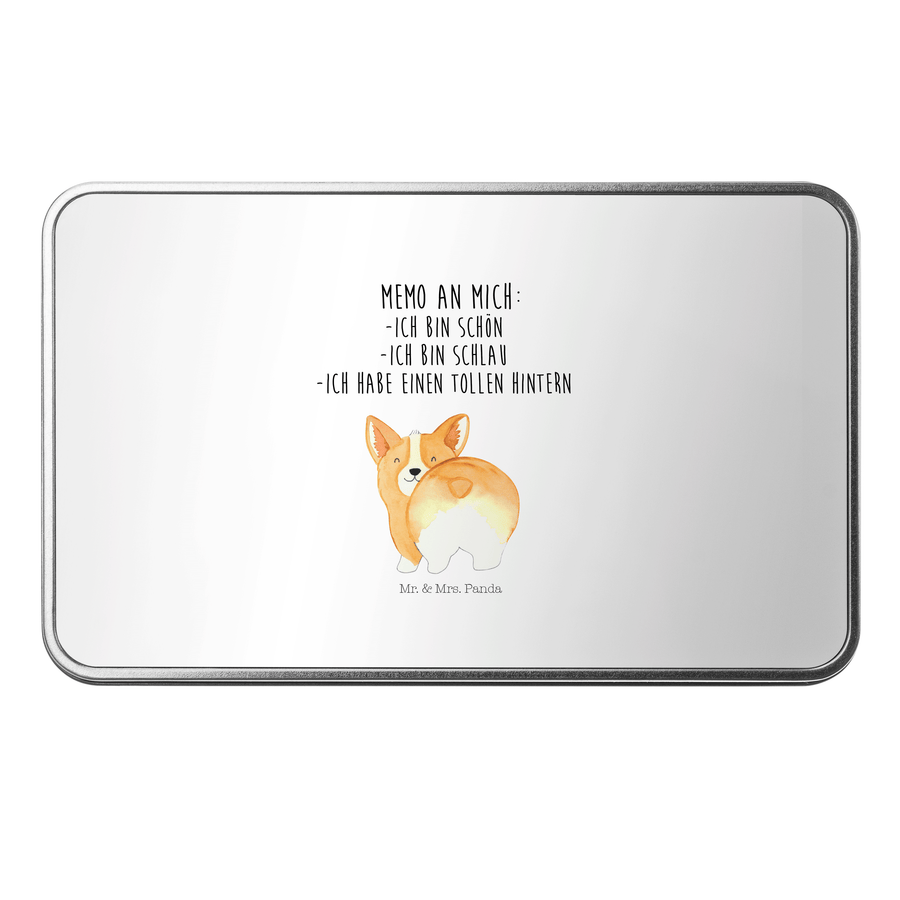 Metalldose rechteckig Corgie Po - mit Spruch - Weiß