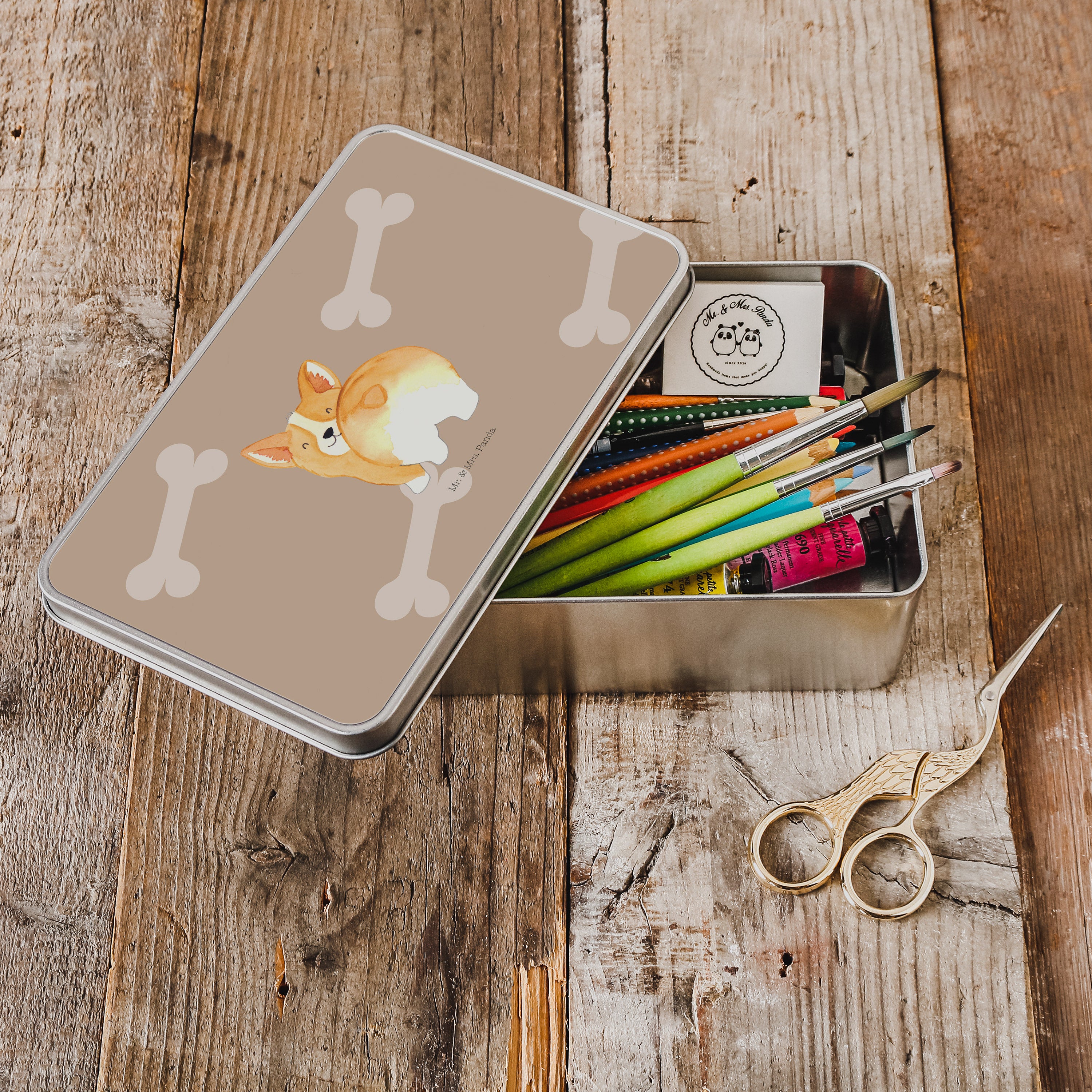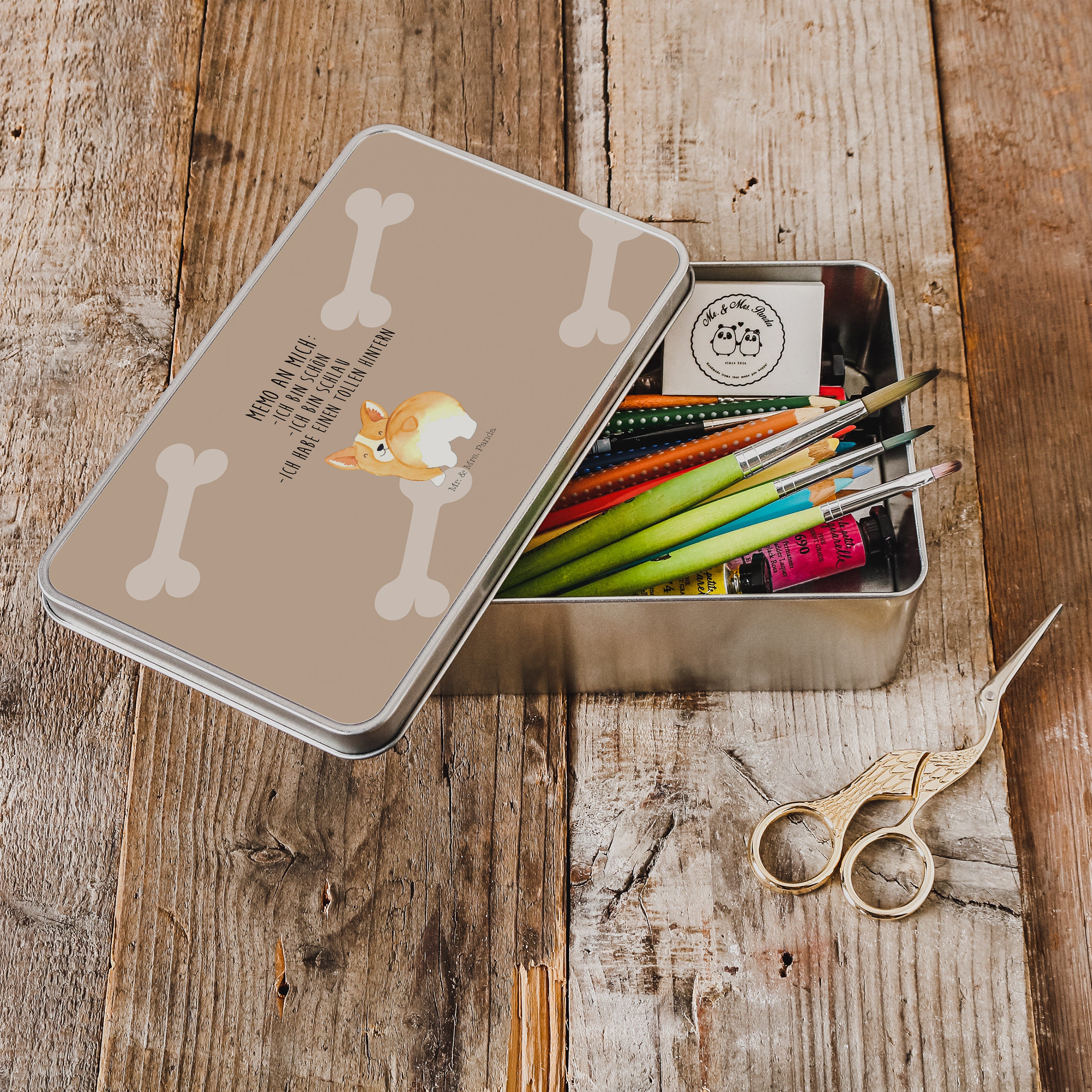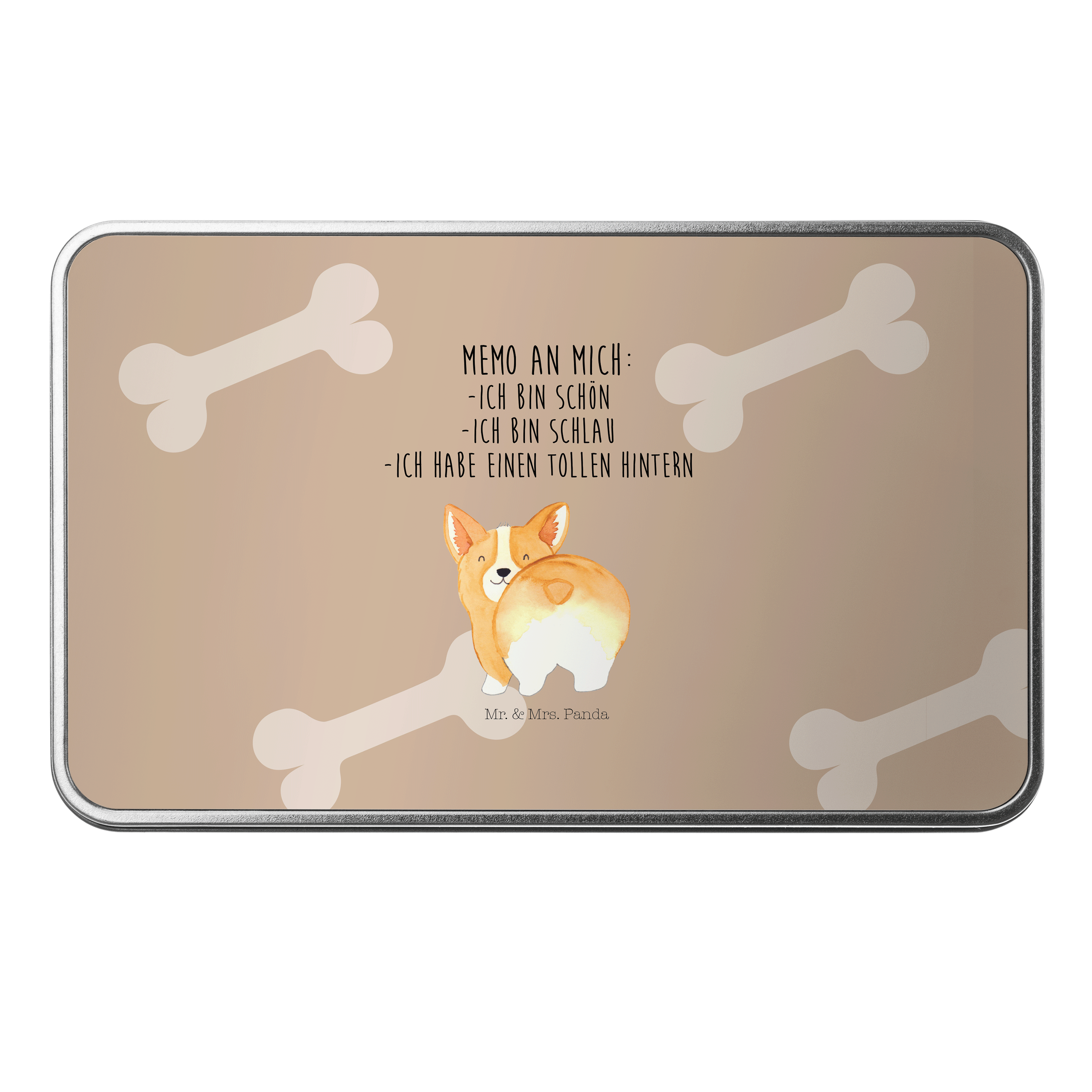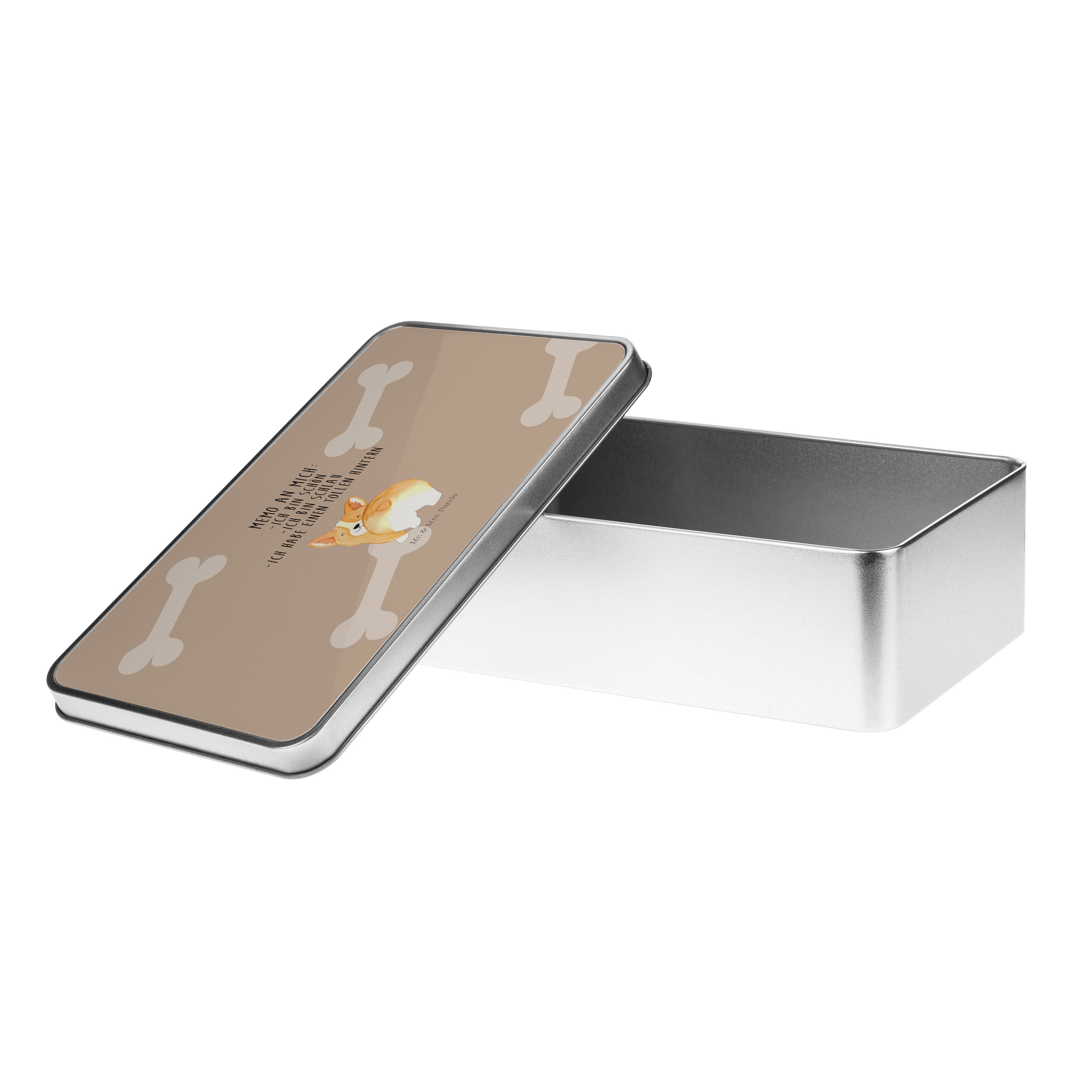 Metalldose rechteckig Corgie Po - mit Spruch - Weiß