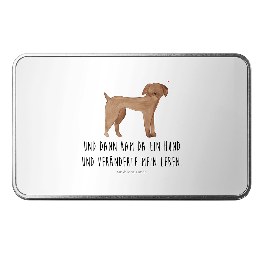 Metalldose rechteckig Hund Dogge - mit Spruch - Weiß
