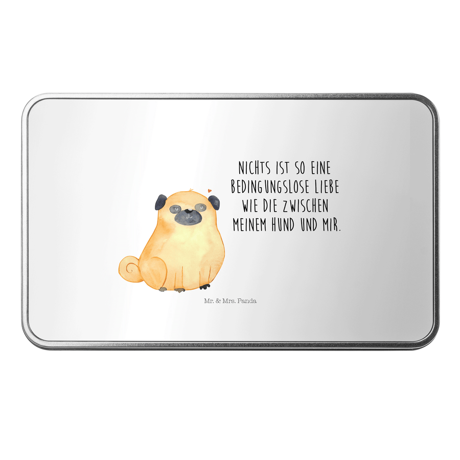 Metalldose rechteckig Mops - mit Spruch - Weiß