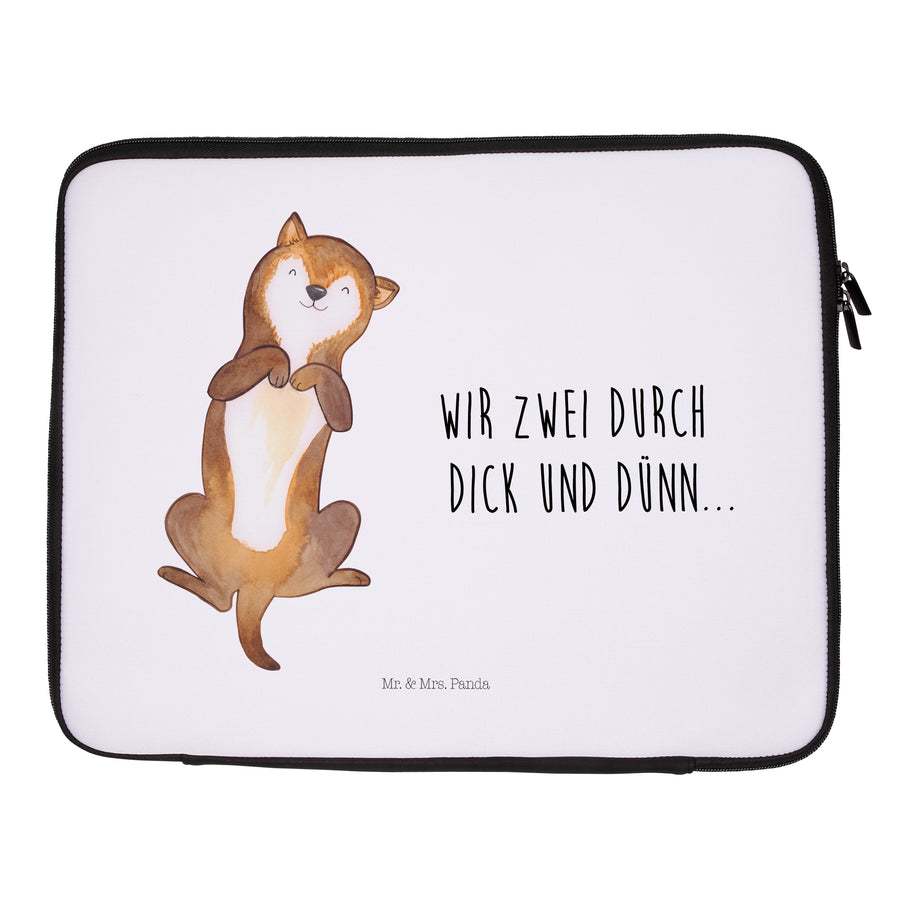 20 x 28 Notebook Tasche Hund Bauchkraulen - mit Spruch - Weiß