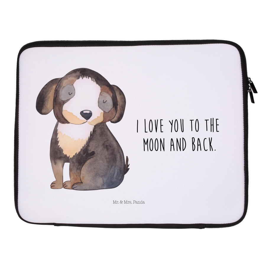 27 x 36 Notebook Tasche Hund entspannt - mit Spruch - Weiß
