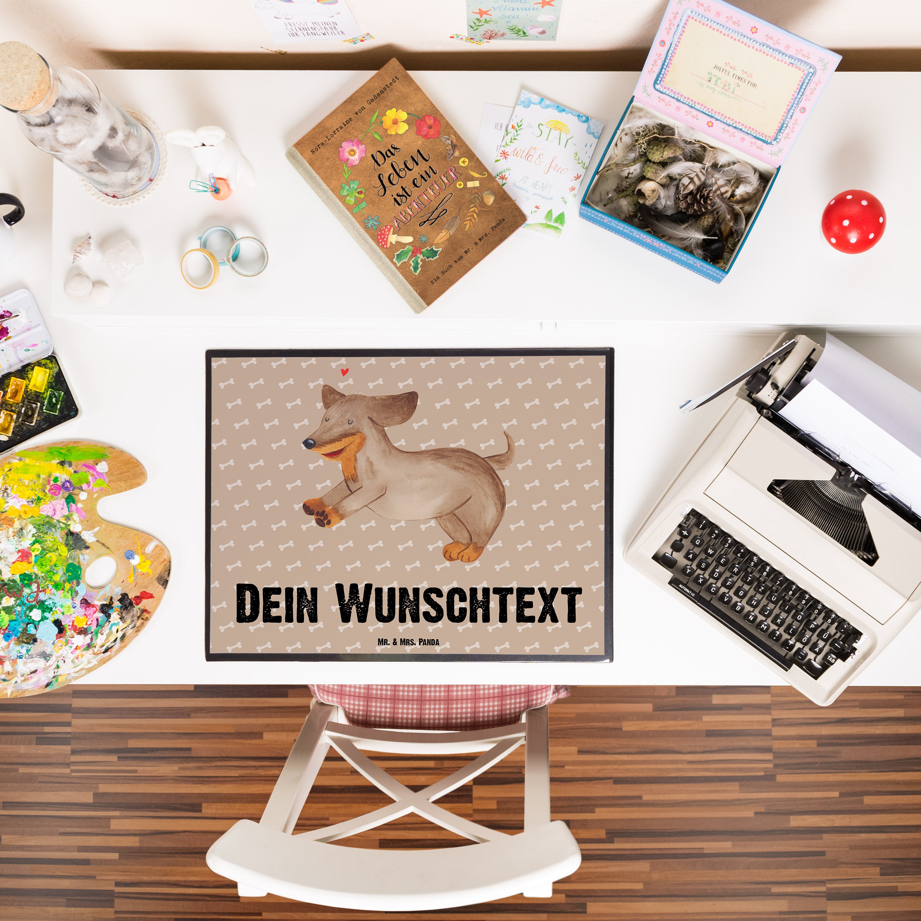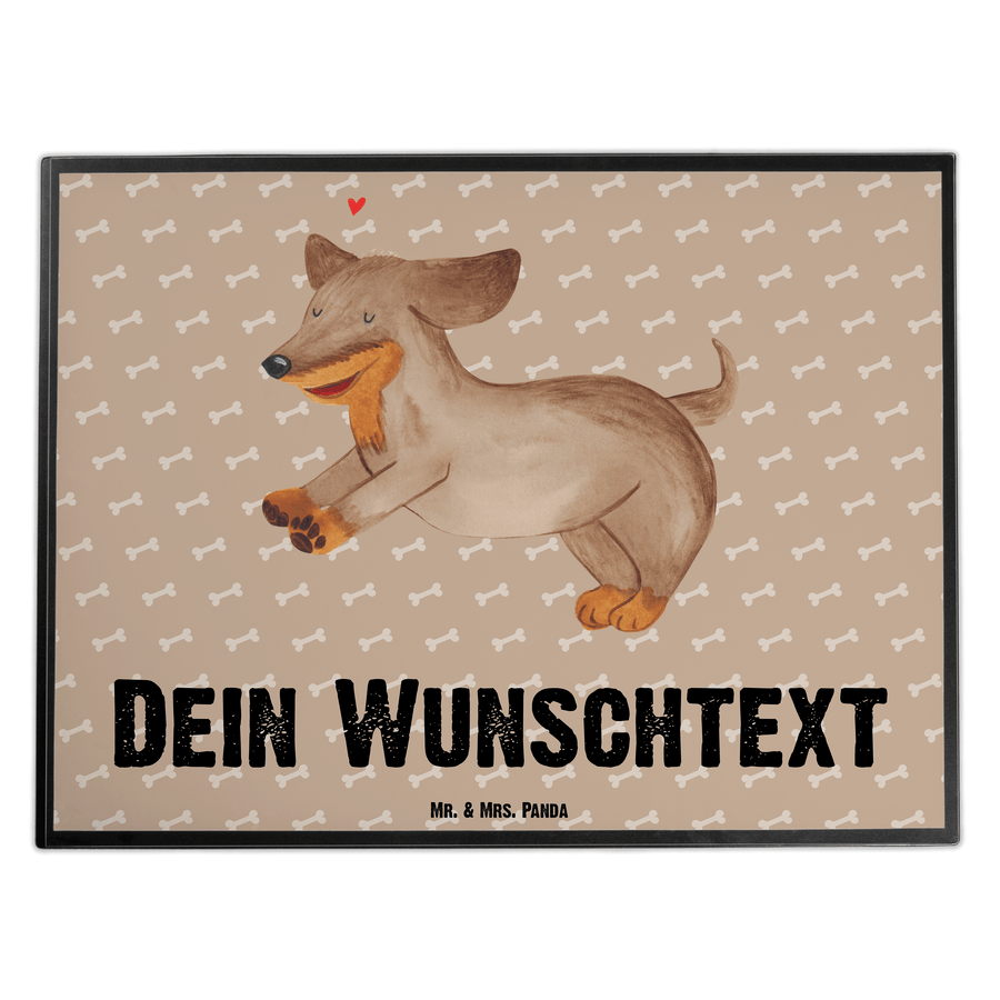 Personalisierte Schreibtischunterlage Hund Dackel fröhlich