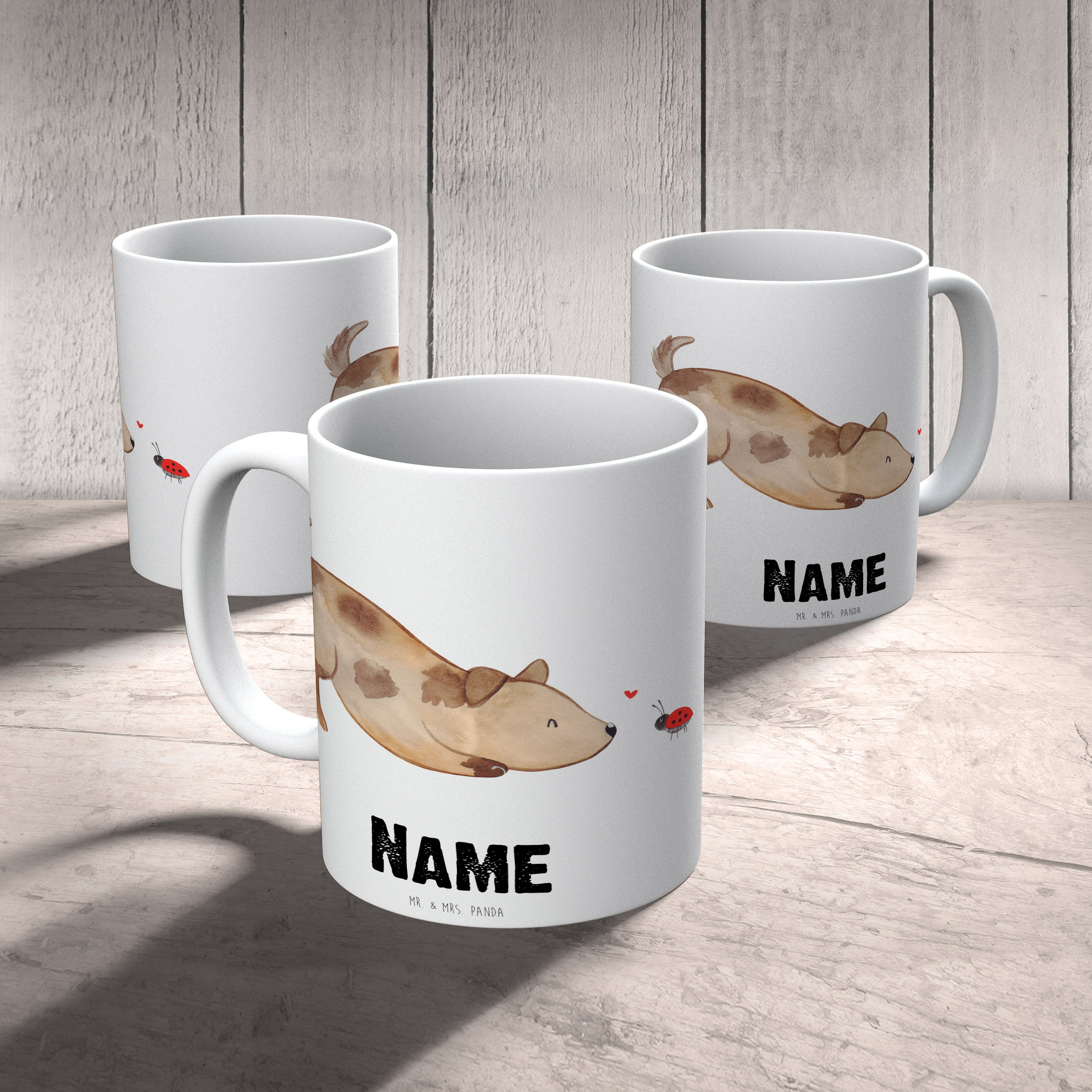 Personalisierte Tasse Hund Marienkäfer