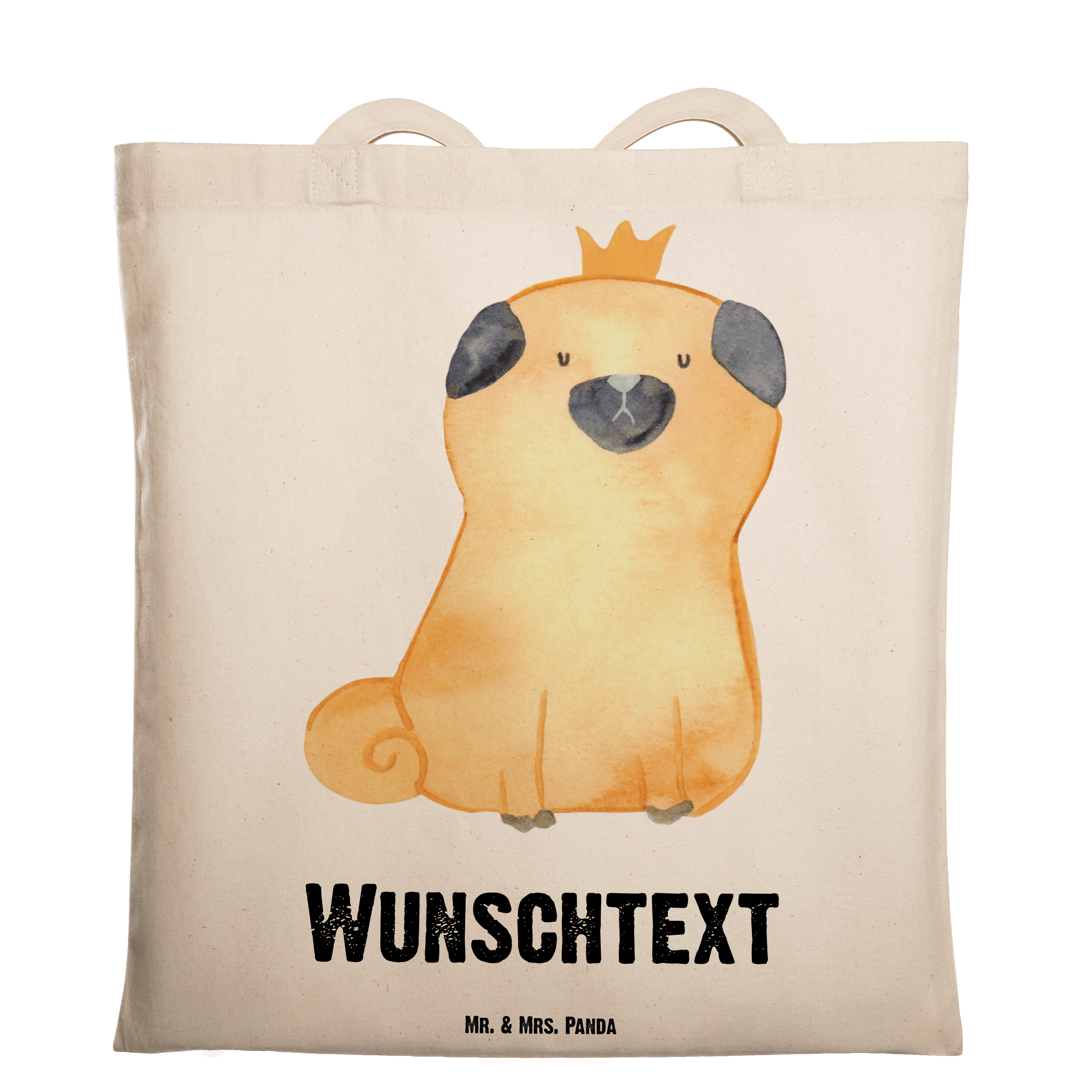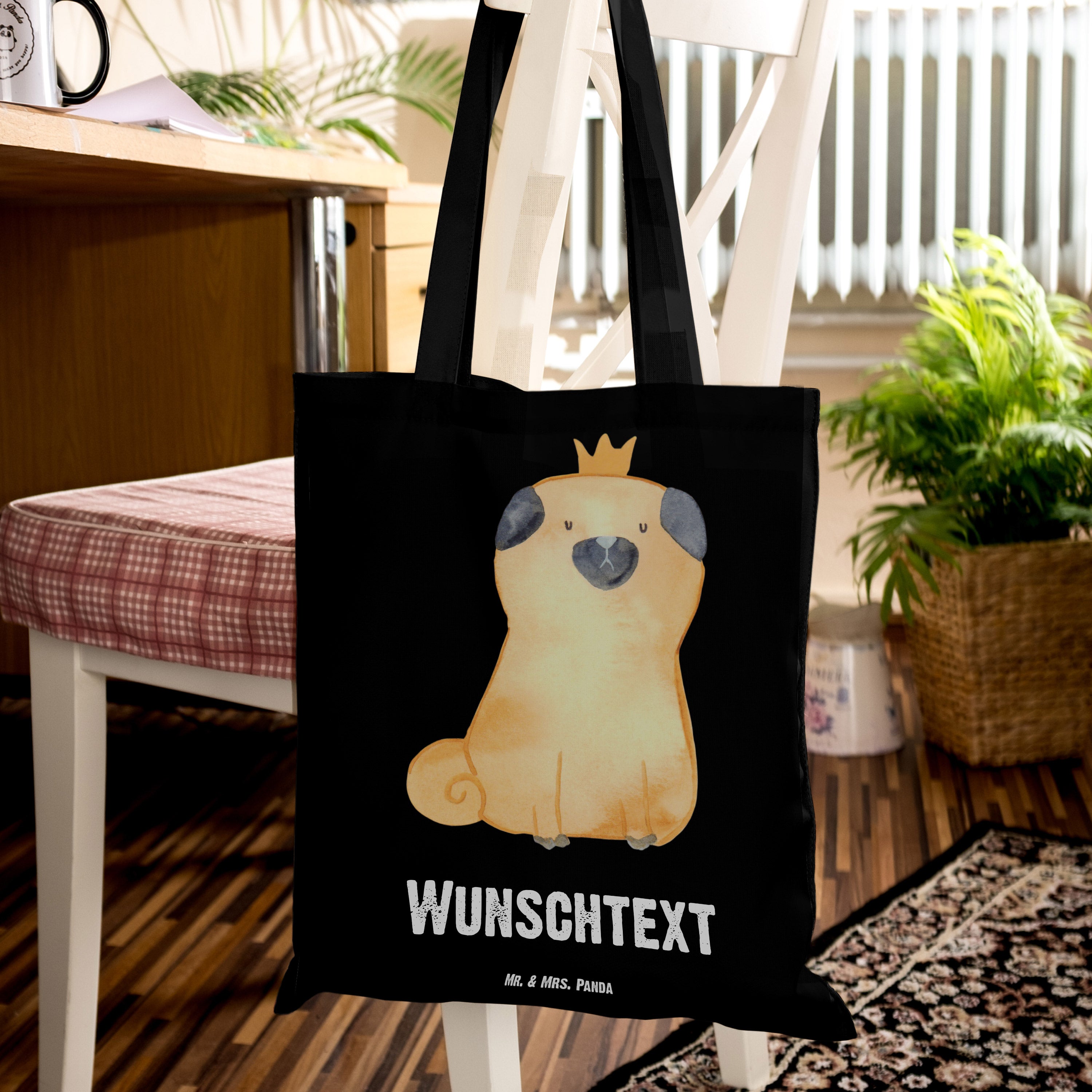Personalisierte Tragetasche Mops Krone - Schwarz