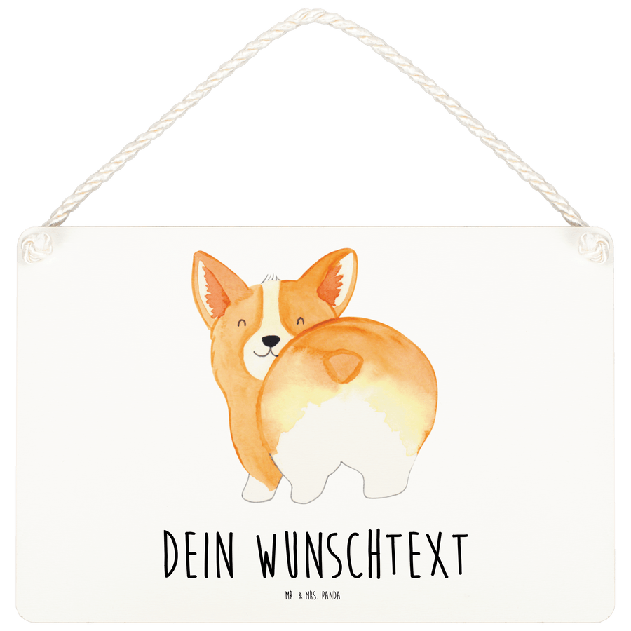 Personalisiertes Deko Schild Corgie Po - Weiß - DIN A4