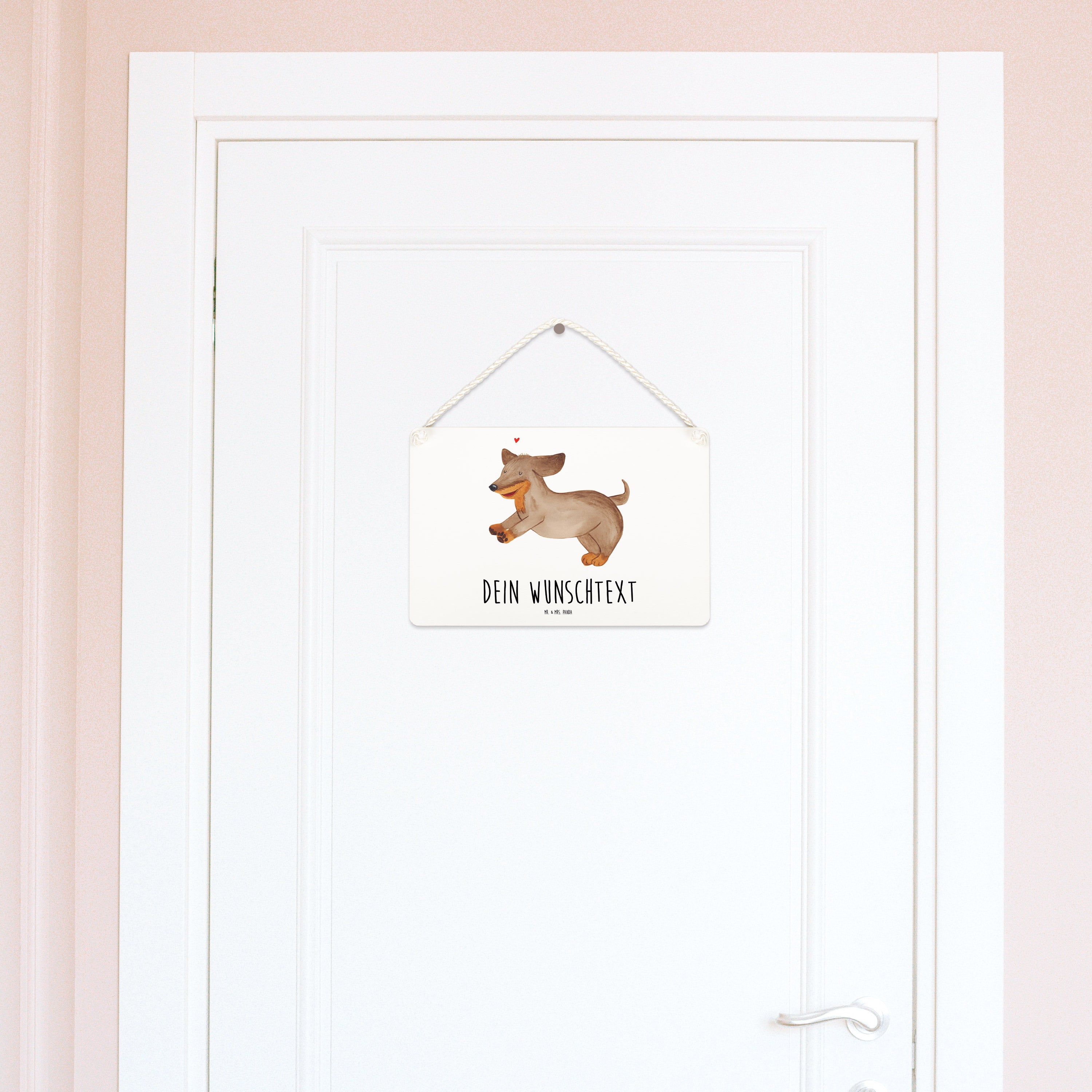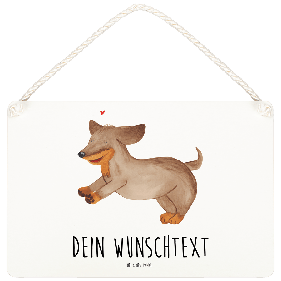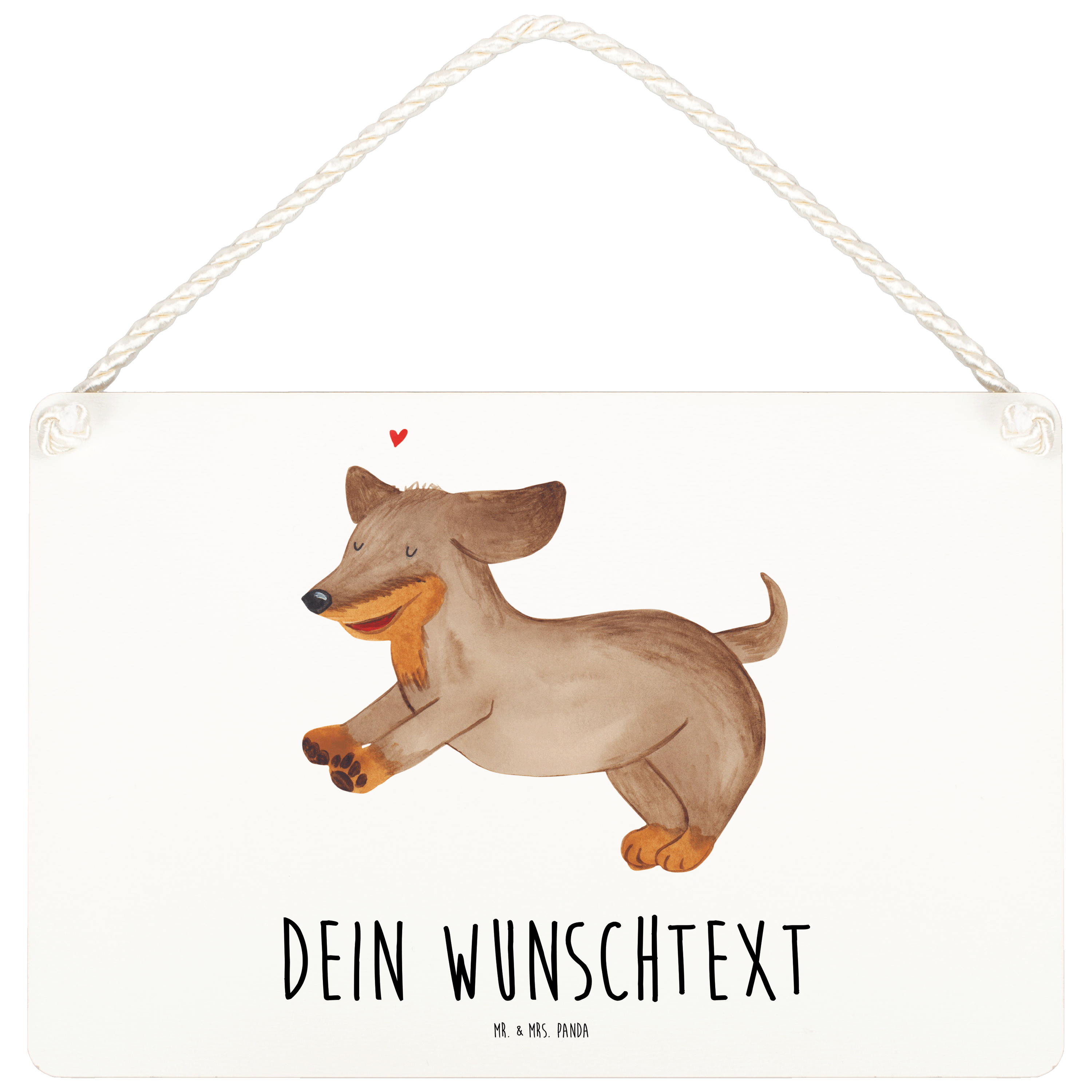 Personalisiertes Deko Schild Hund Dackel fröhlich - Weiß - DIN A5