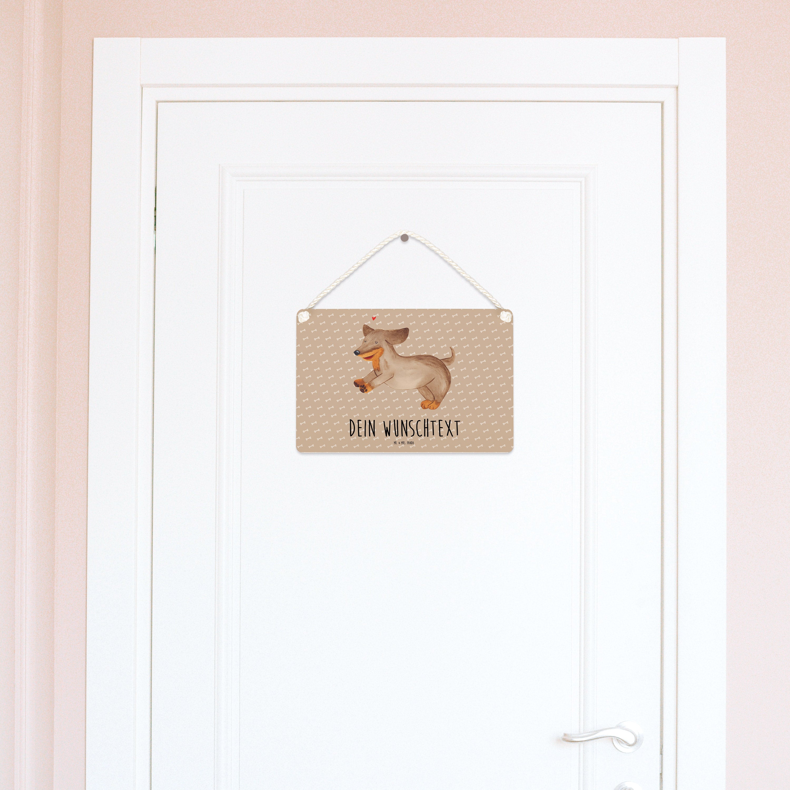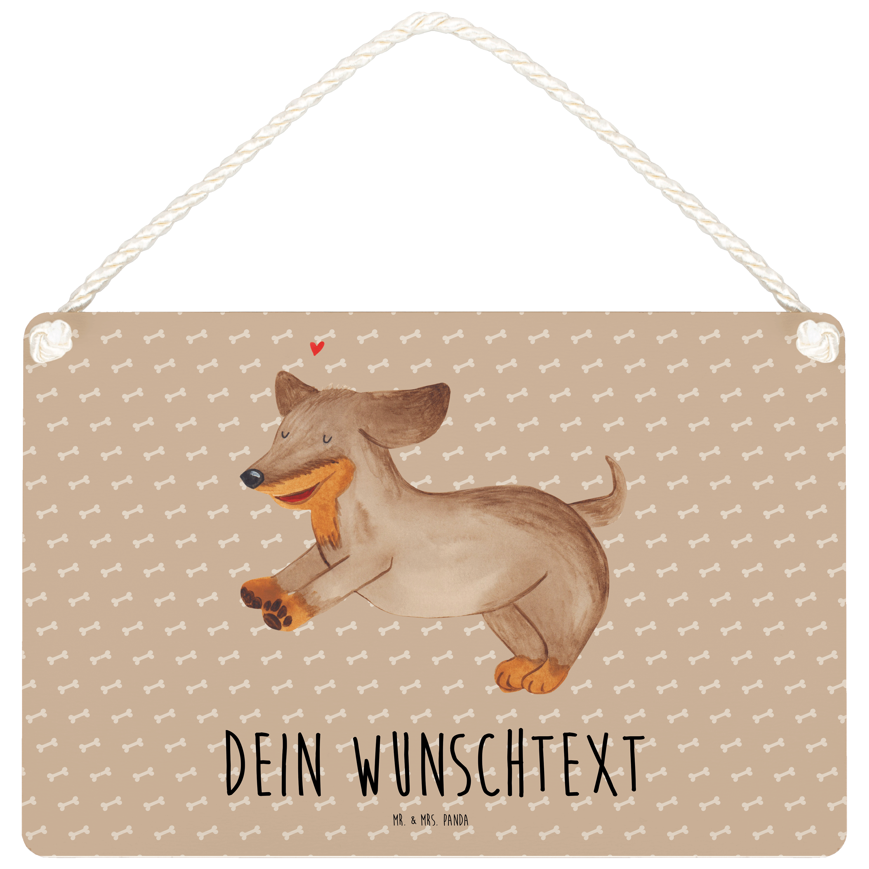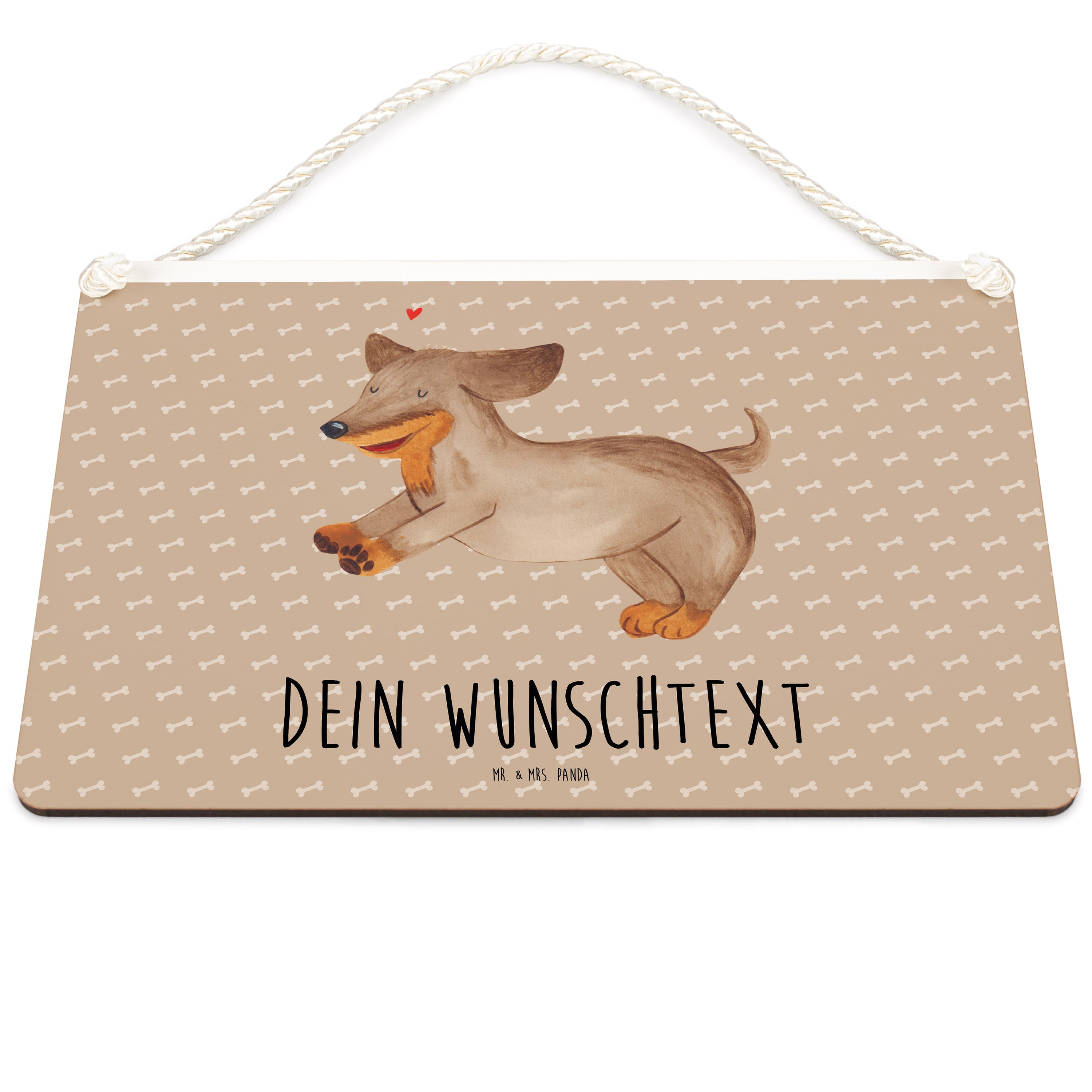 Personalisiertes Deko Schild Hund Dackel fröhlich - Weiß - DIN A5