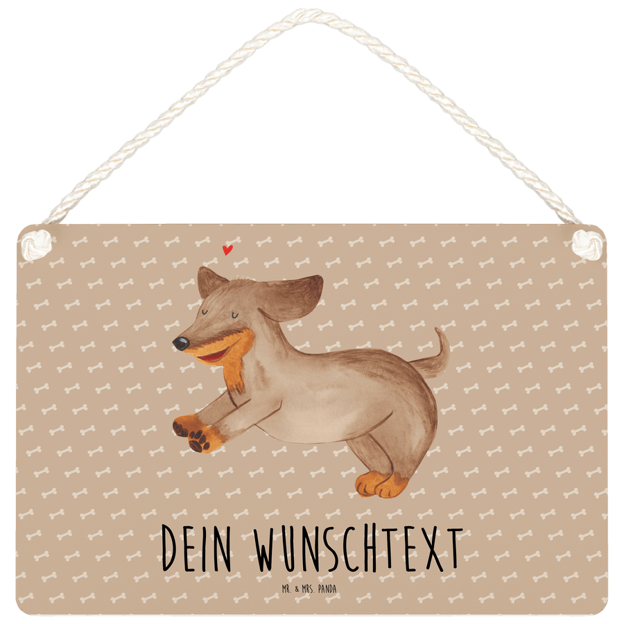 Personalisiertes Deko Schild Hund Dackel fröhlich - Hundeglück - DIN A5