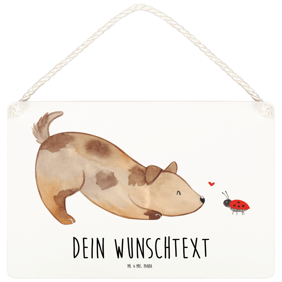 Personalisiertes Deko Schild Hund Marienkäfer - Weiß - DIN A6