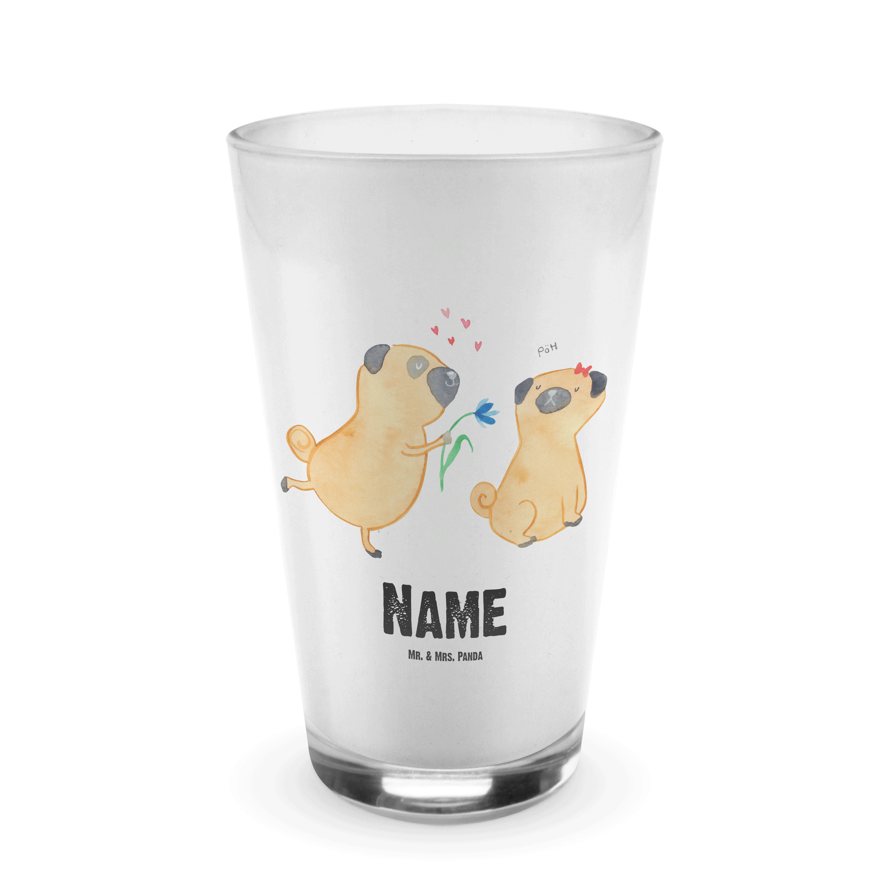 Personalisiertes Glas Mops verliebt