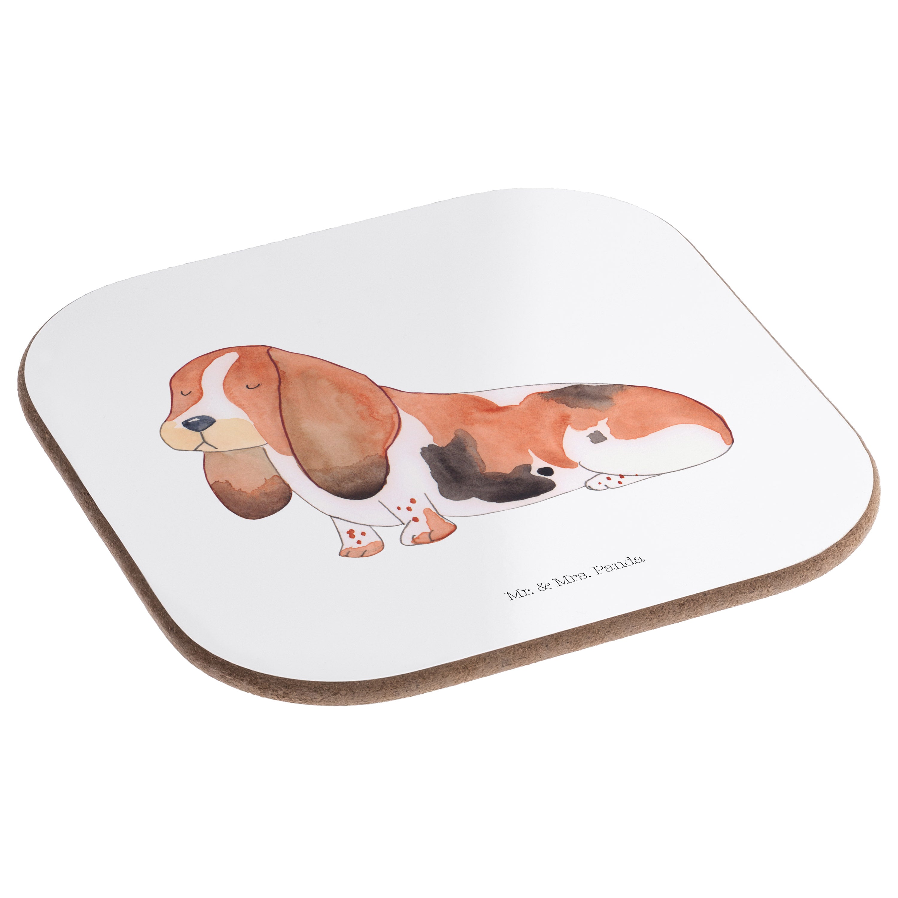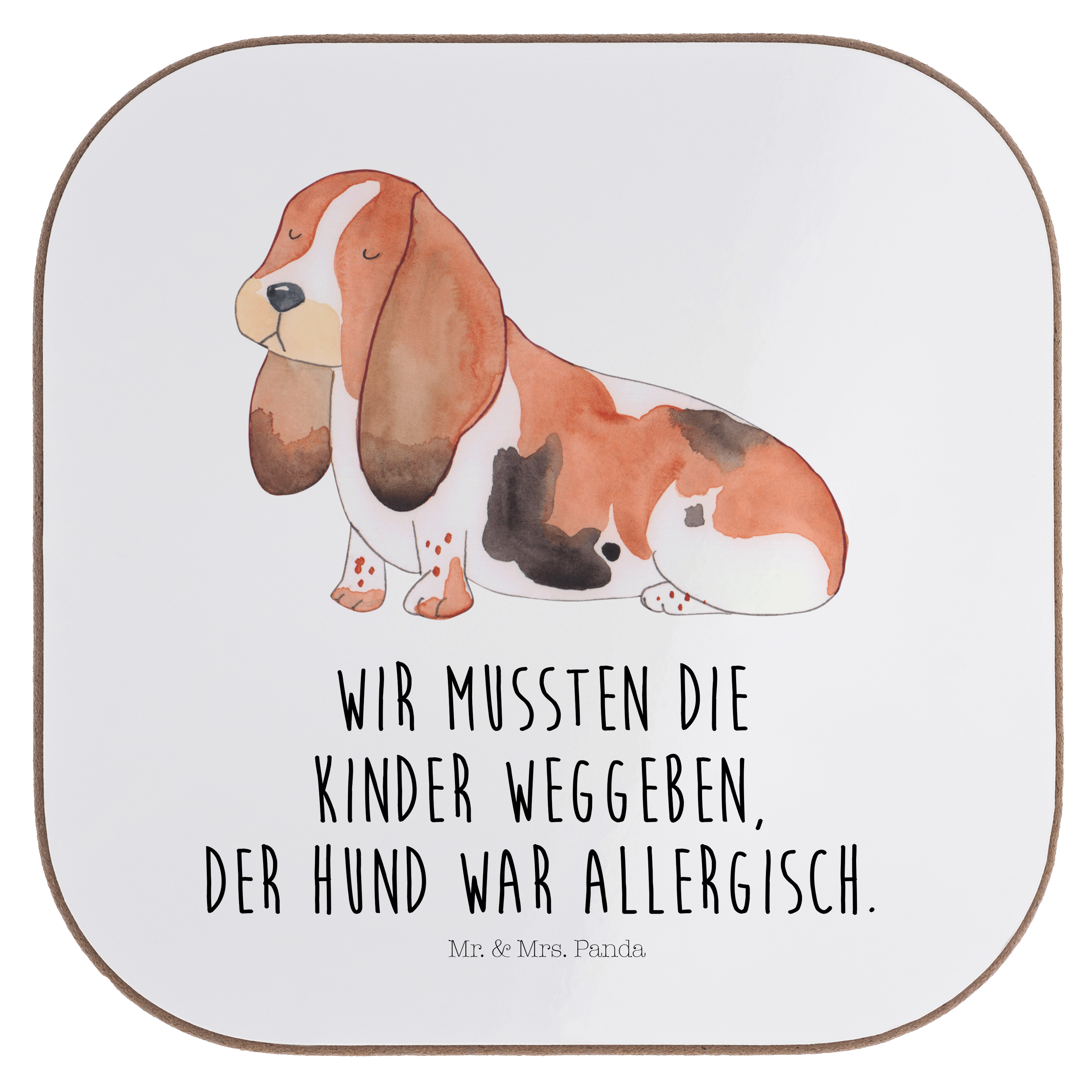 Quadratische Untersetzer Hund Basset Hound - mit Spruch