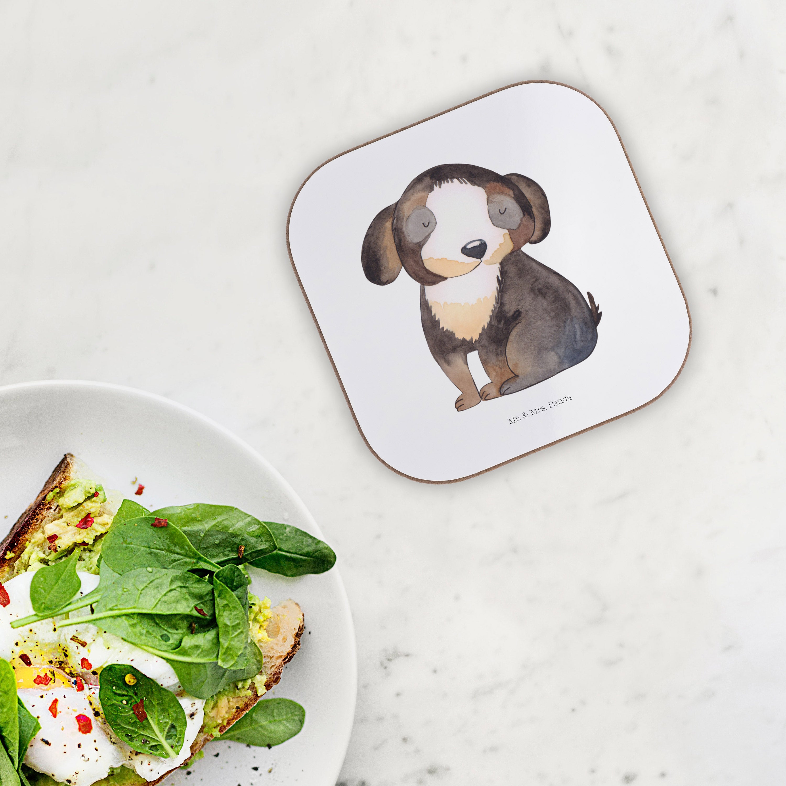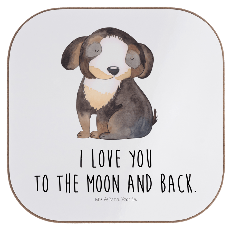 Quadratische Untersetzer Hund entspannt - mit Spruch