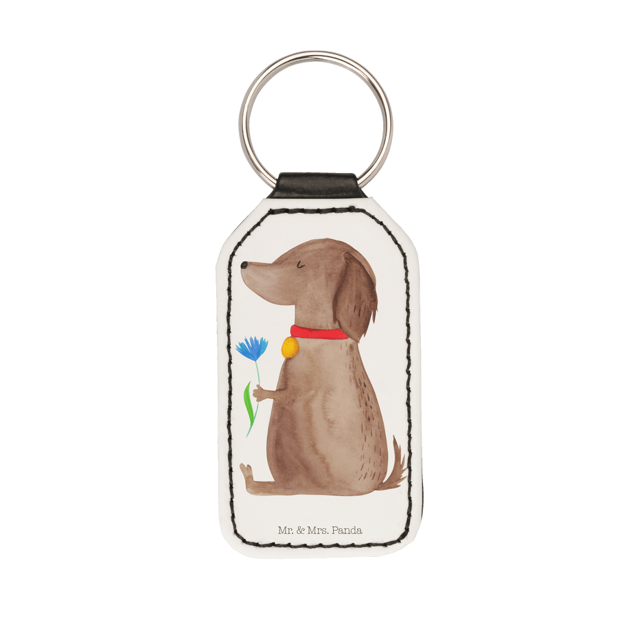 Rechteckig Schlüsselanhänger Hund Blume - Weiß