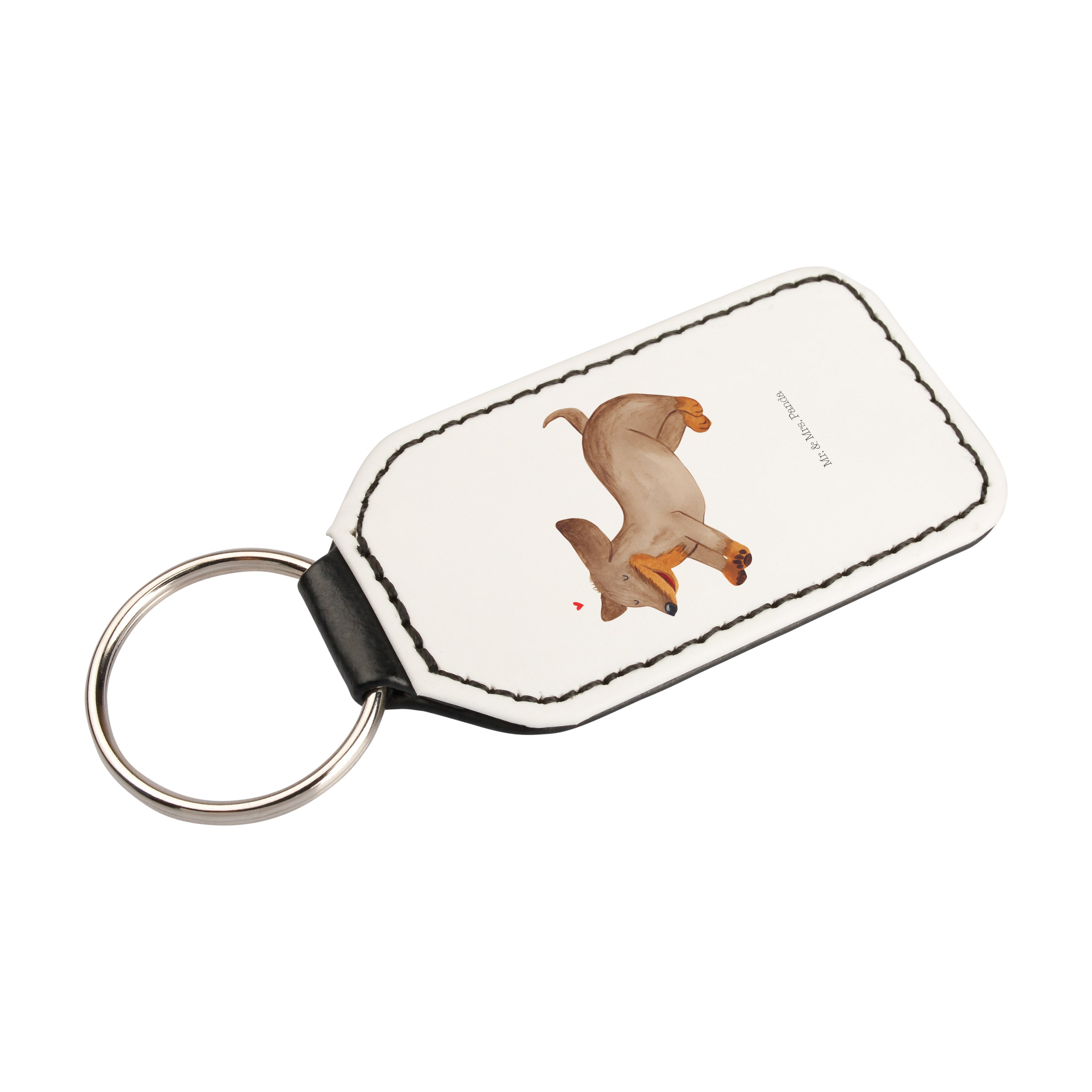 Rechteckig Schlüsselanhänger Hund Dackel fröhlich - Hundeglück