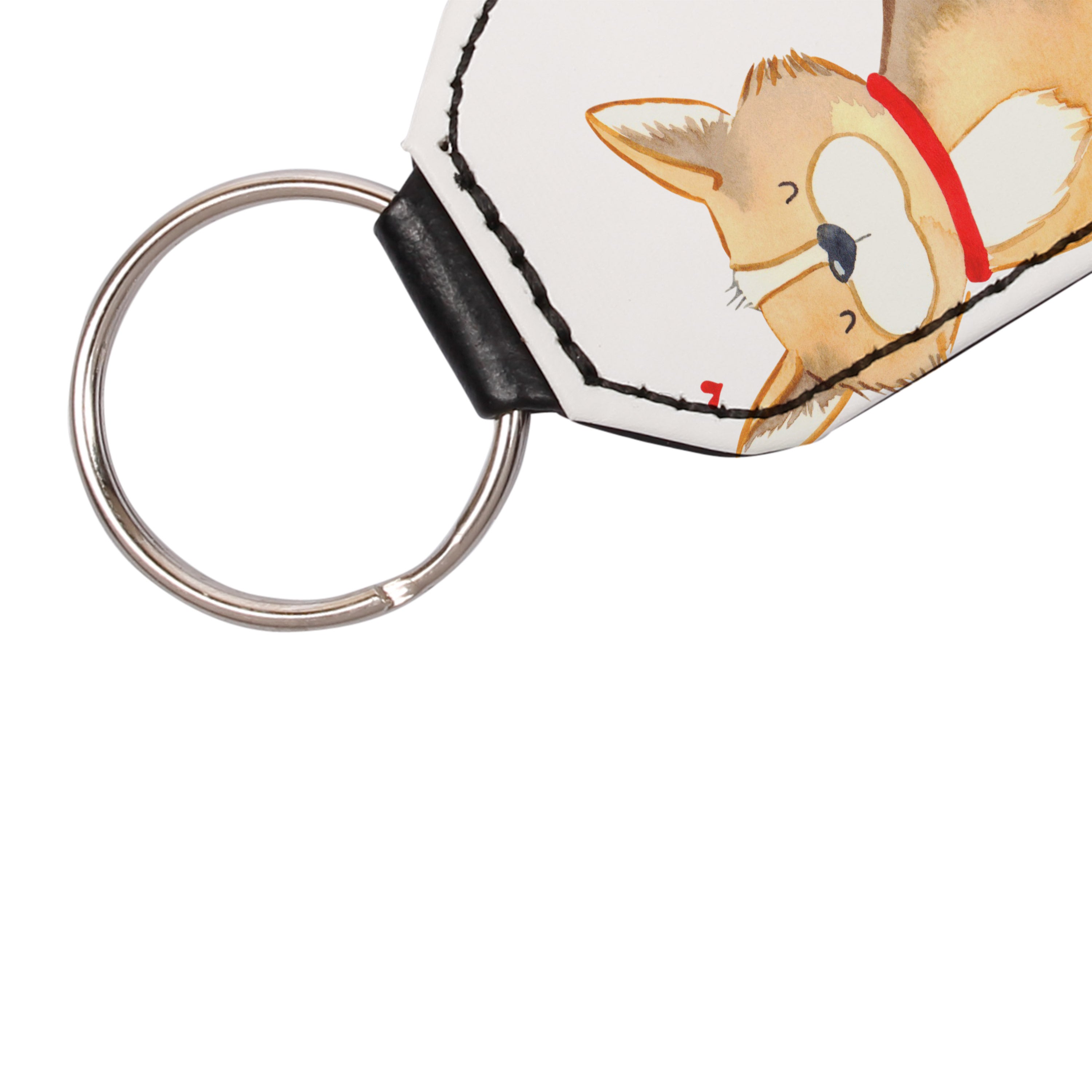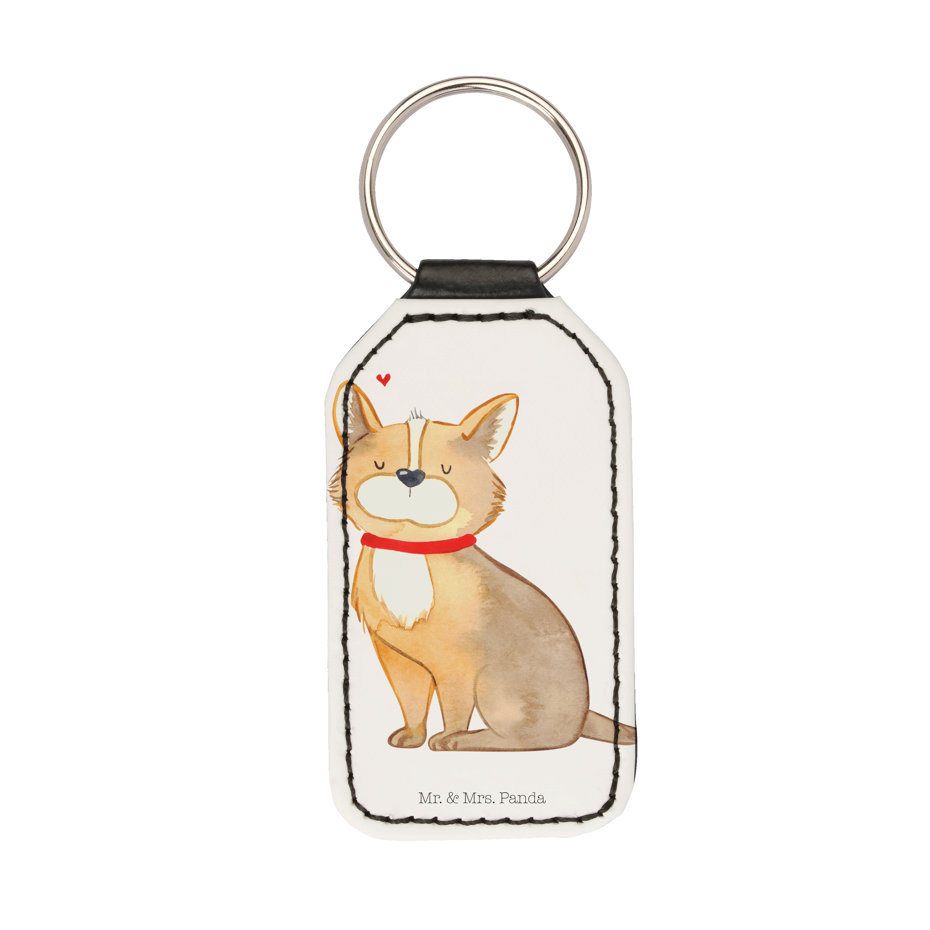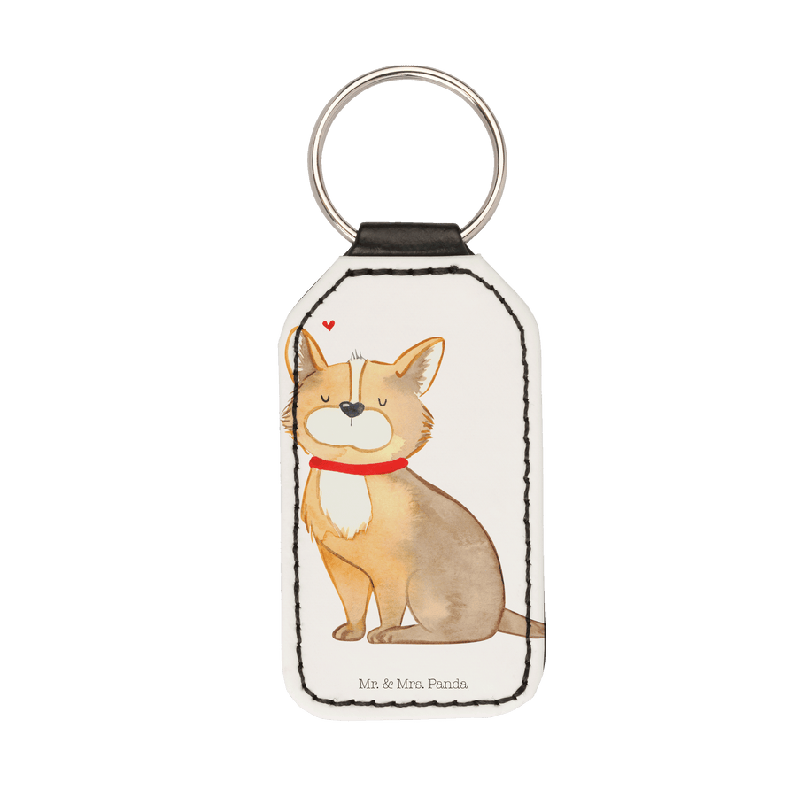 Rechteckig Schlüsselanhänger Hundeglück - Weiß