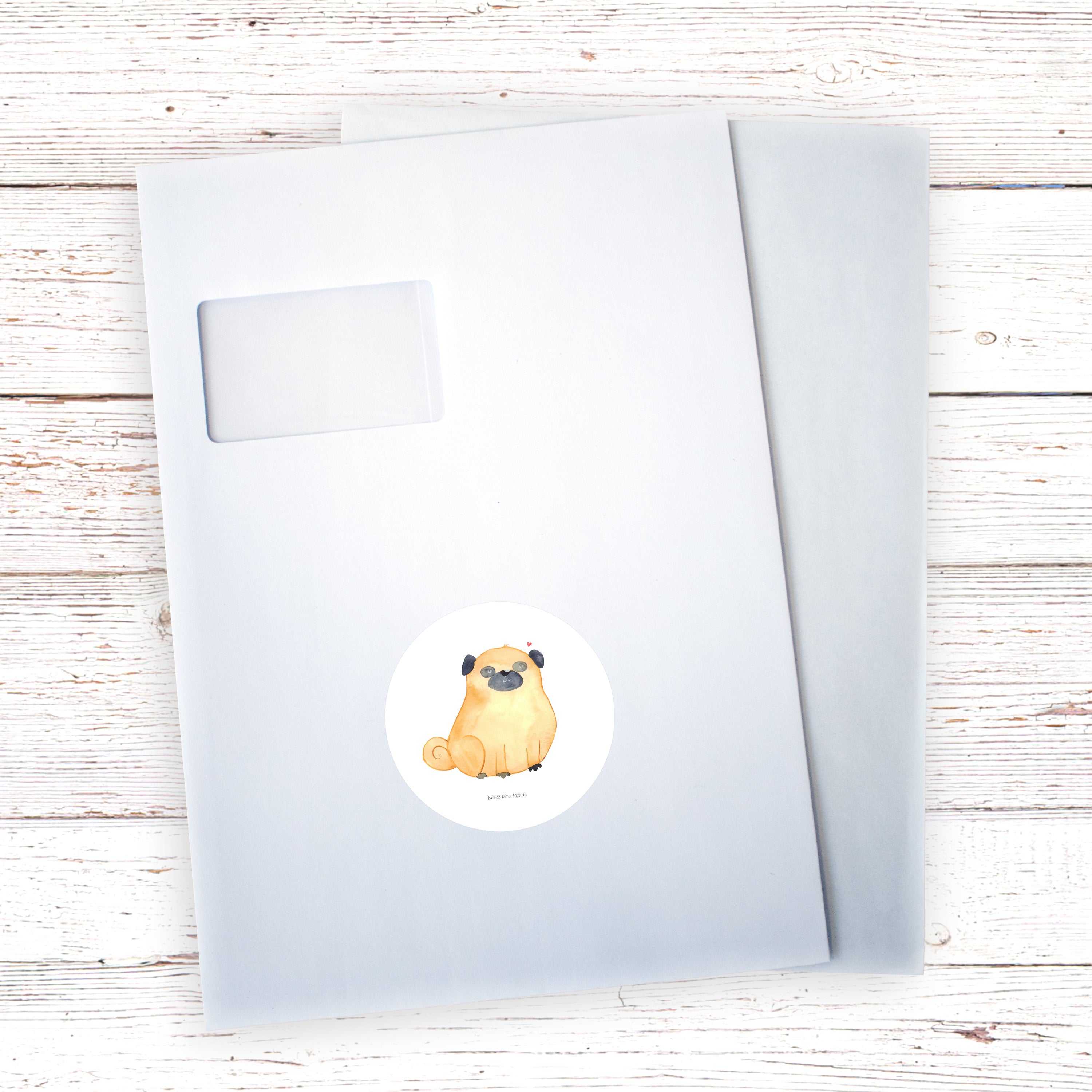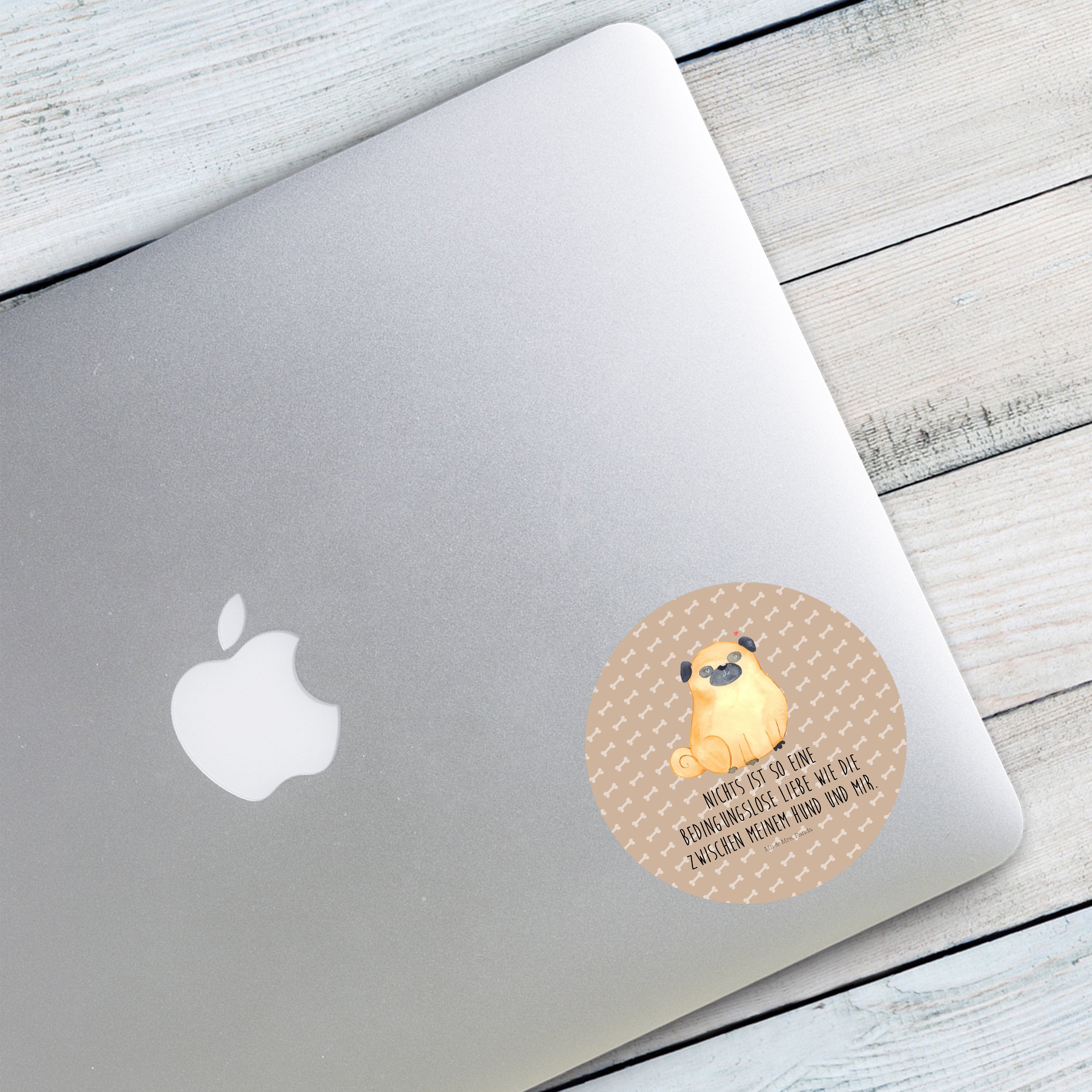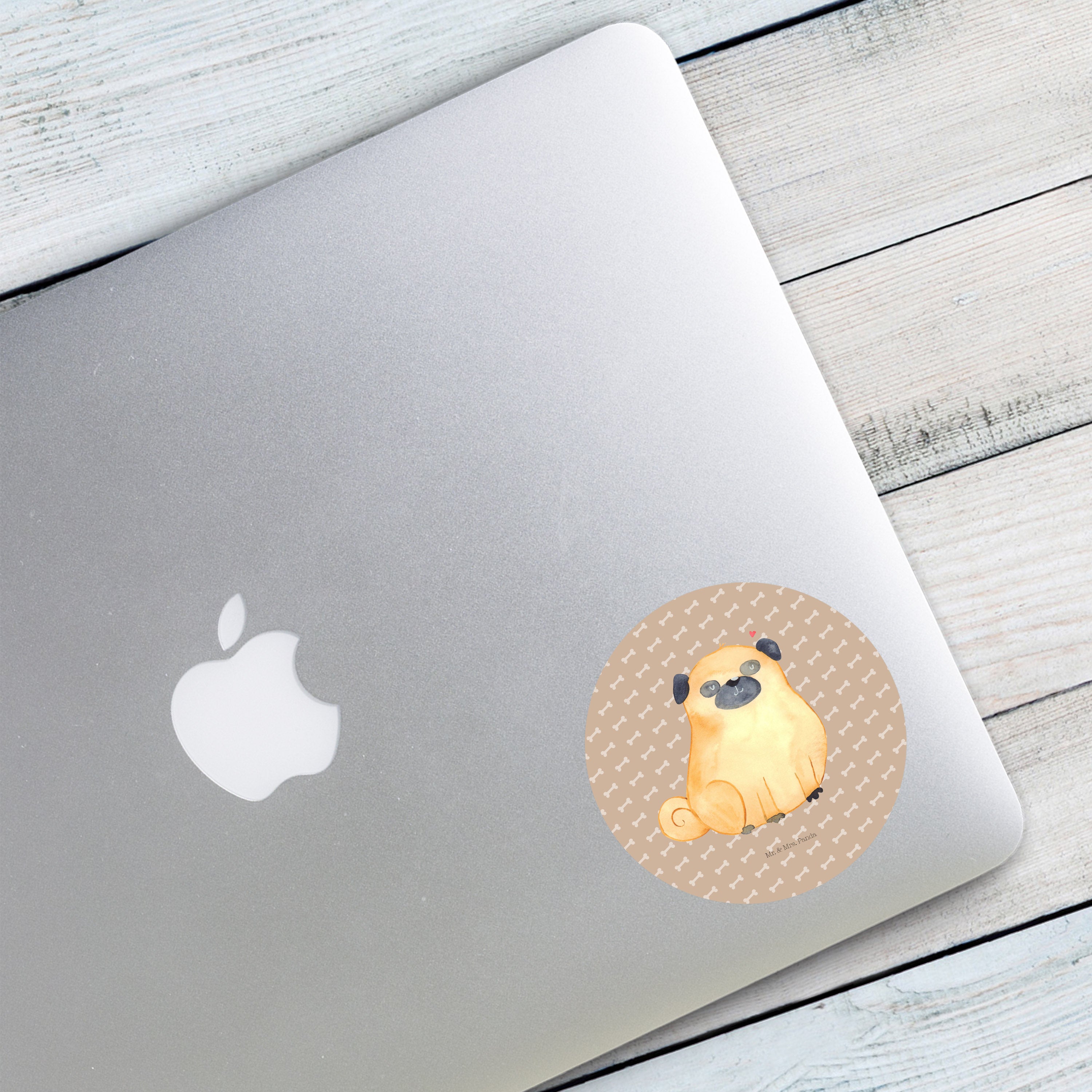 80mm Rund Aufkleber Mops - mit Spruch - Hundeglück