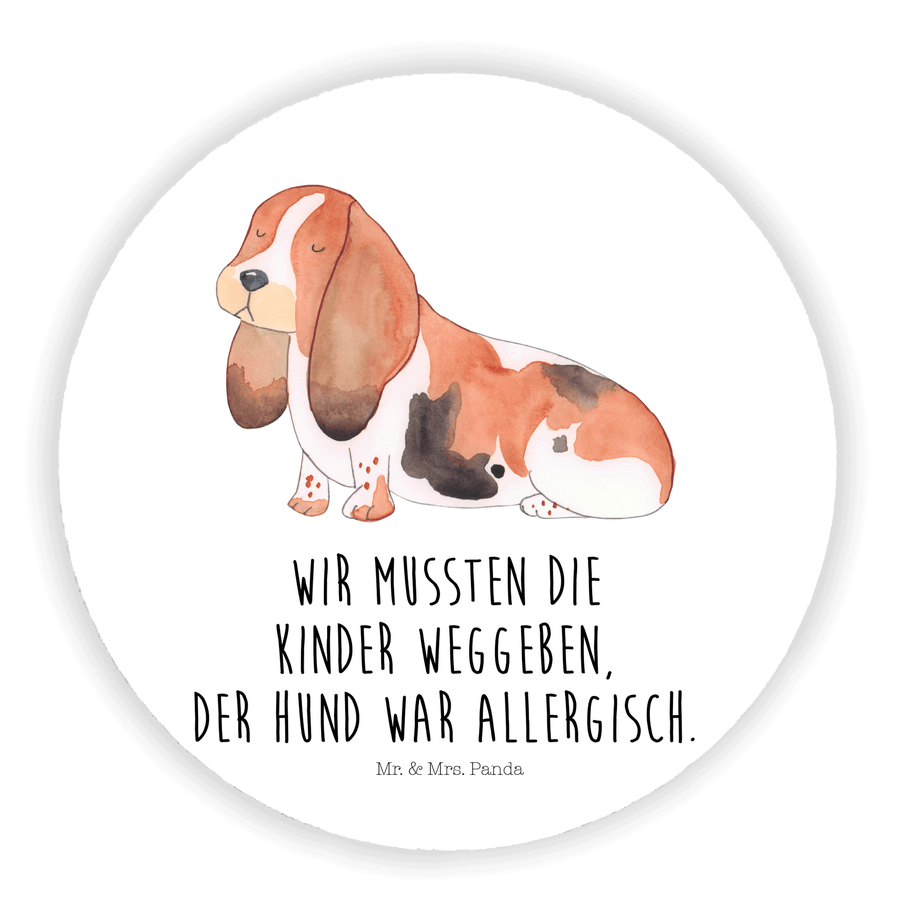 Rund Magnet Hund Basset Hound - mit Spruch - Weiß