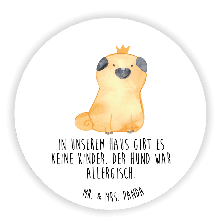 Rund Magnet Mops Krone - mit Spruch - Weiß