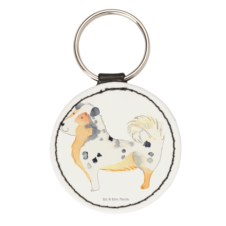 Rund Schlüsselanhänger Australien Shepherd - Weiß