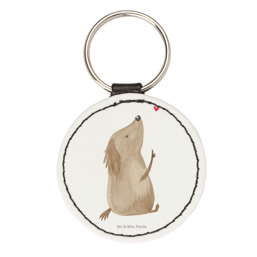 Rund Schlüsselanhänger Hund Liebe - Weiß