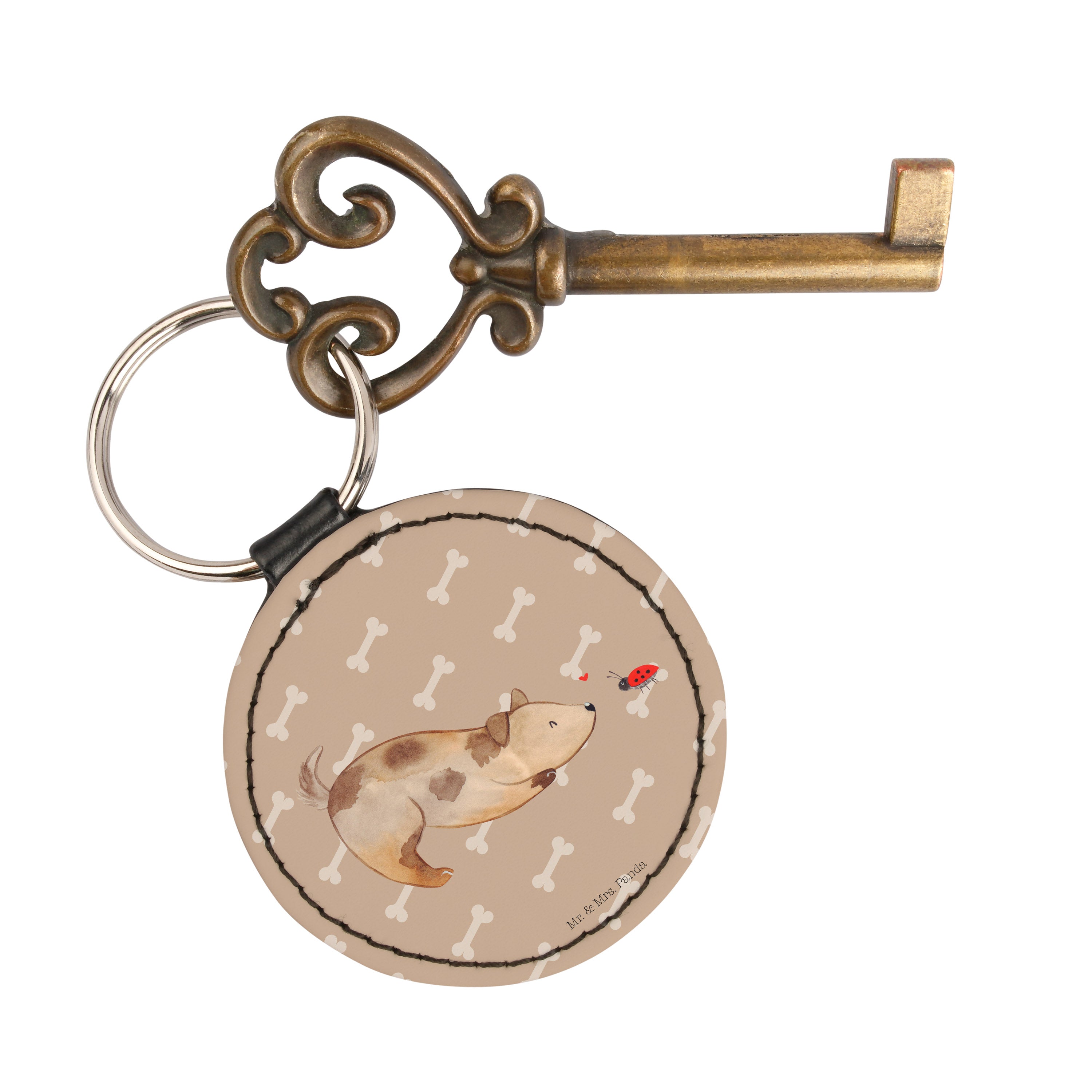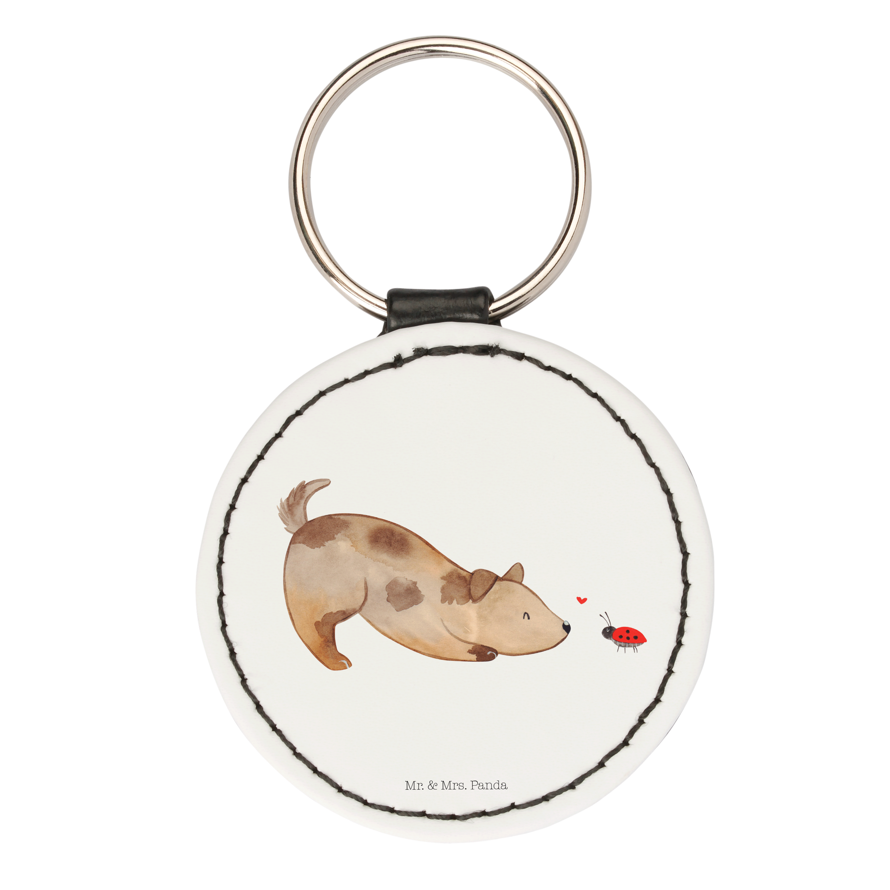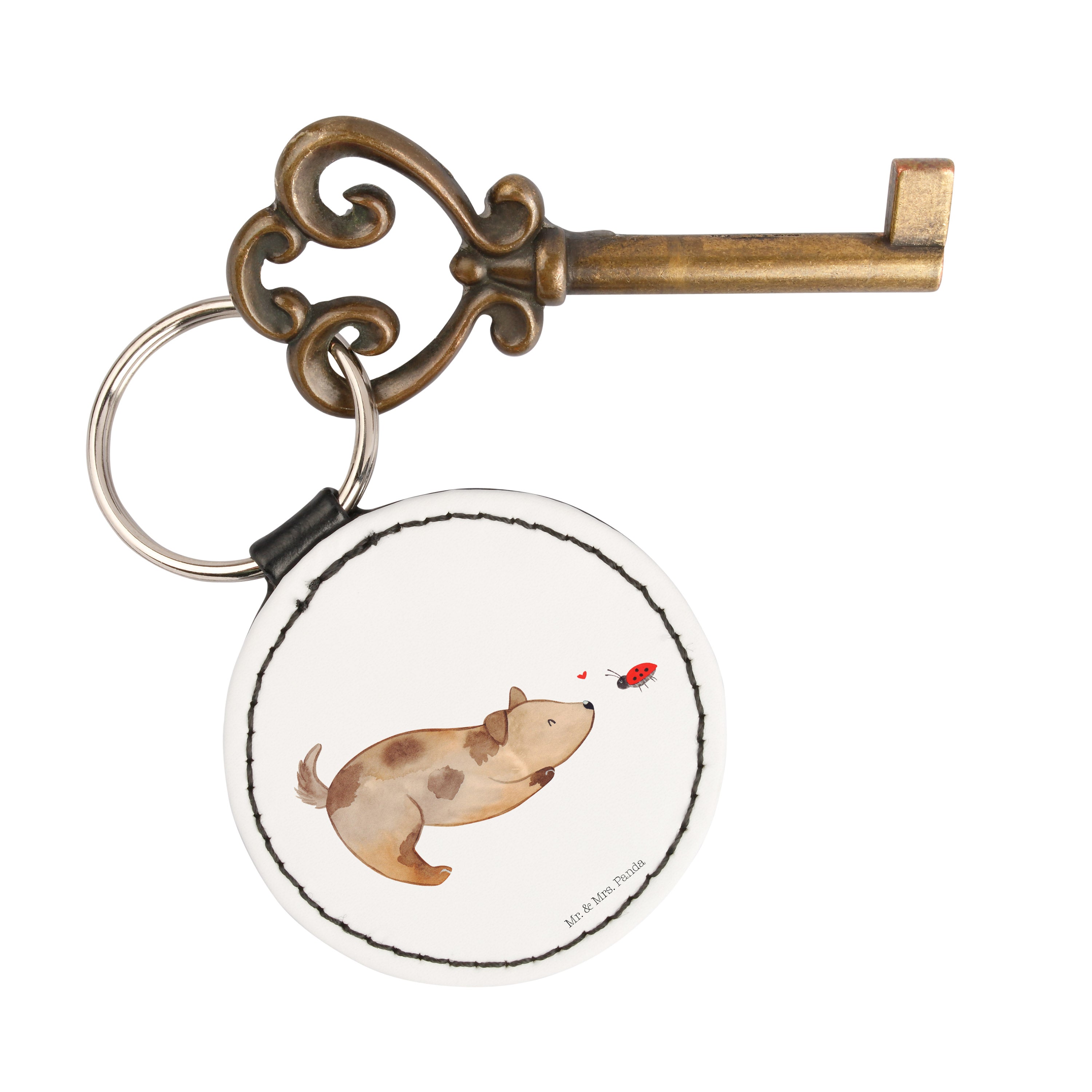 Rund Schlüsselanhänger Hund Marienkäfer - Weiß
