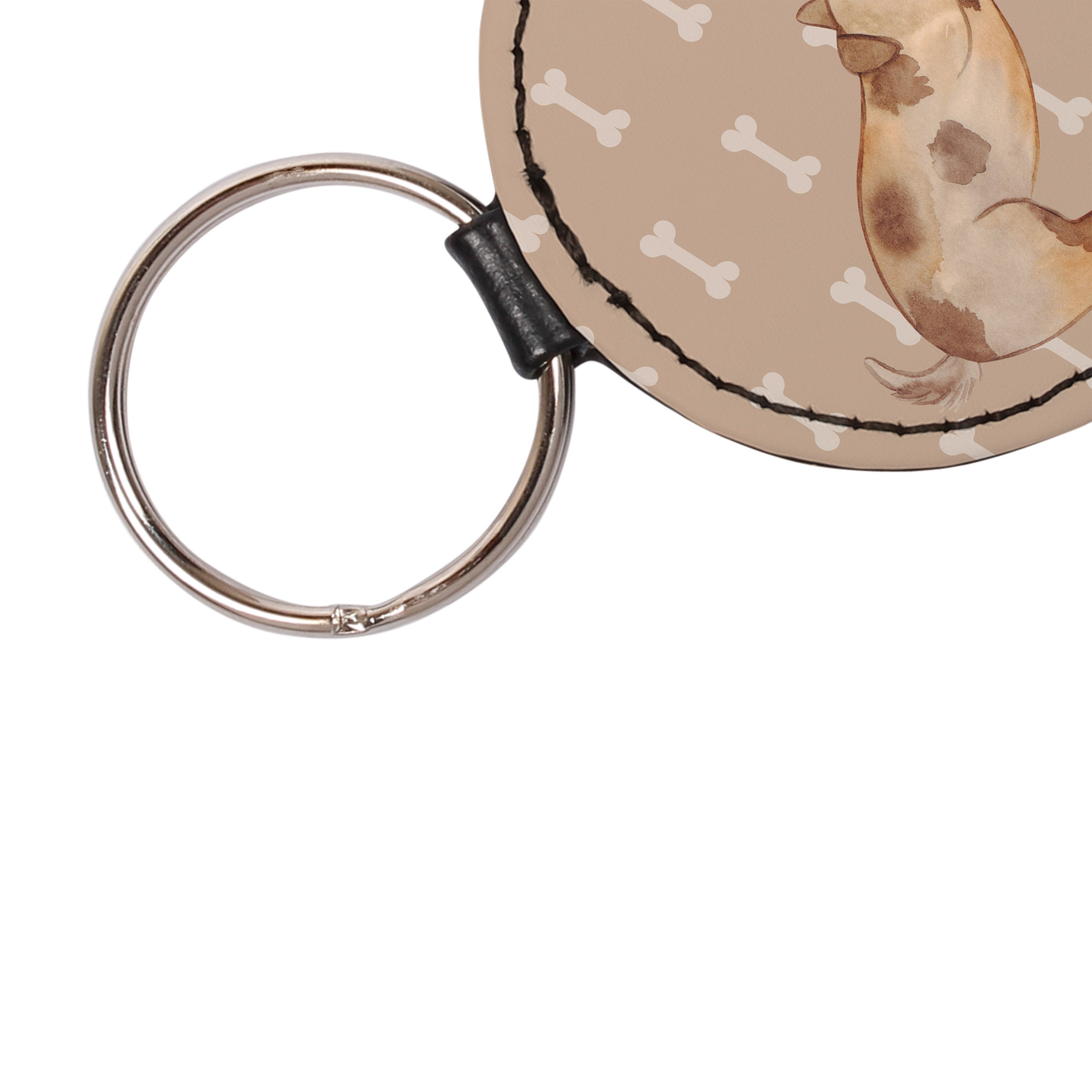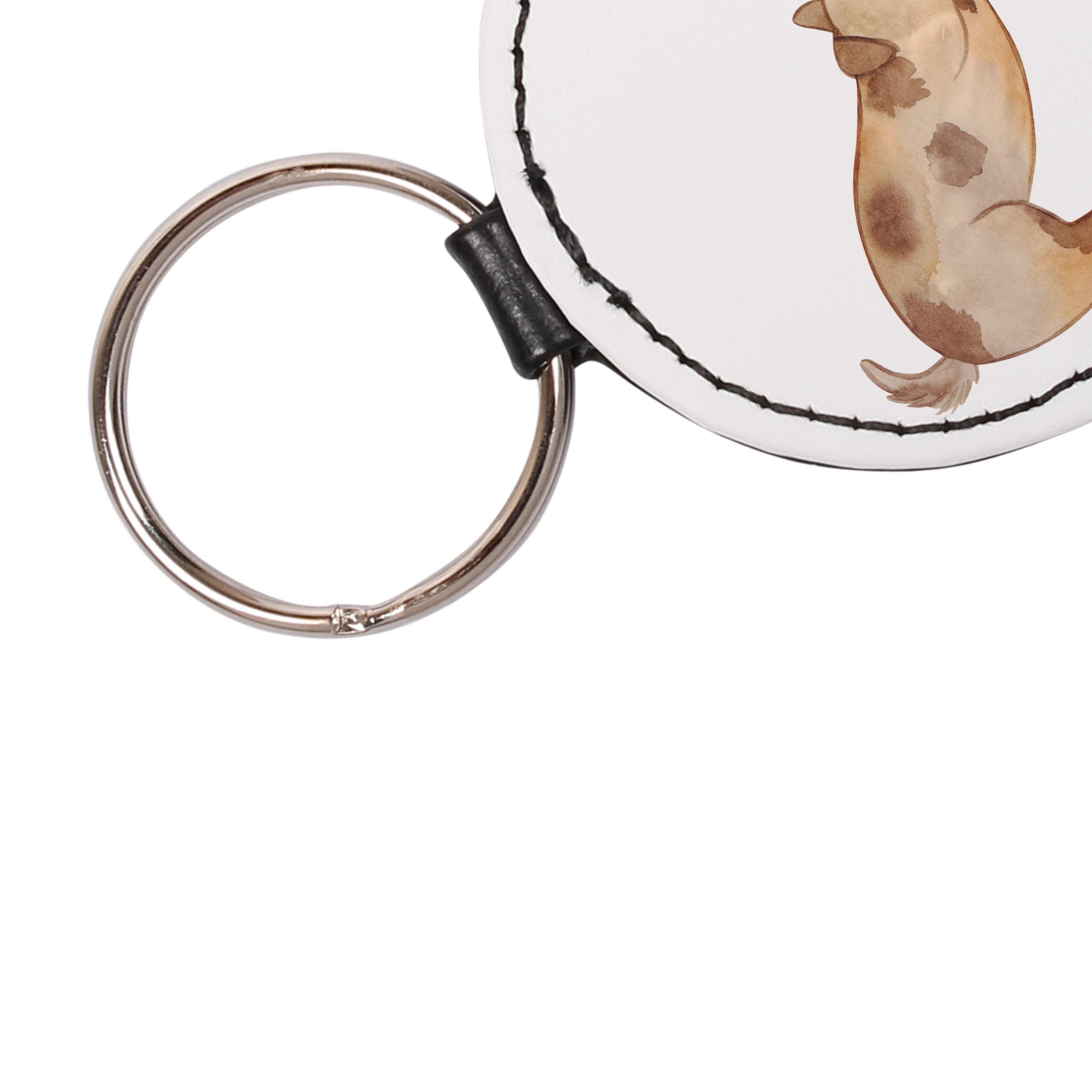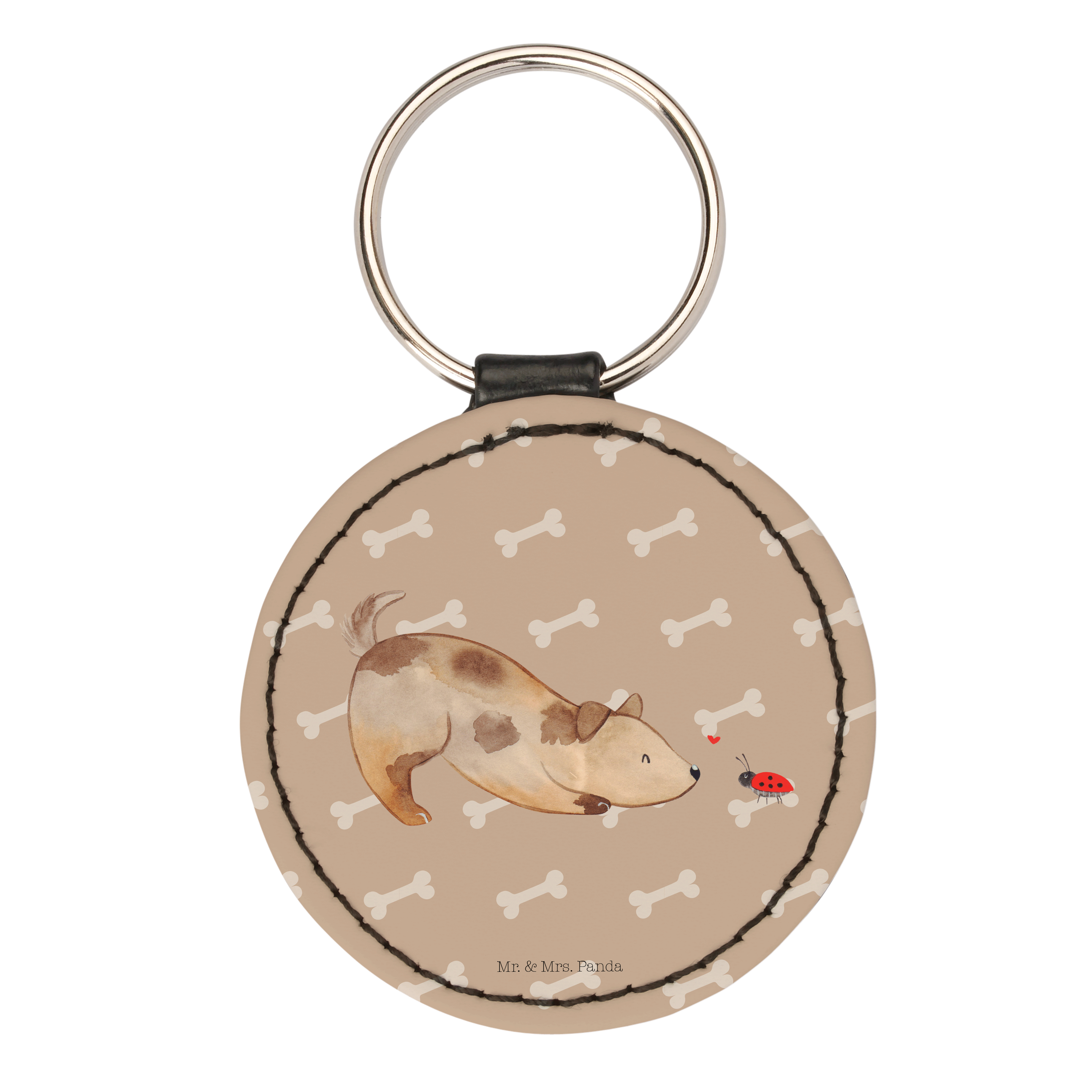 Rund Schlüsselanhänger Hund Marienkäfer - Weiß
