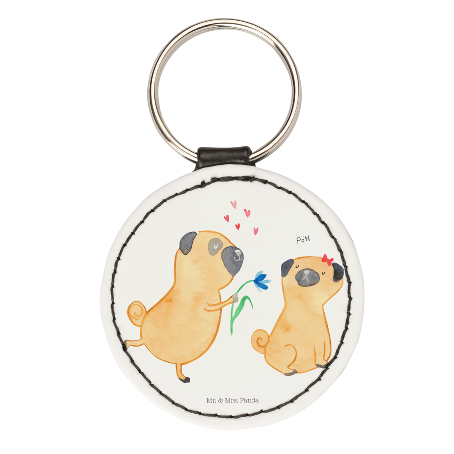 Rund Schlüsselanhänger Mops verliebt - Weiß
