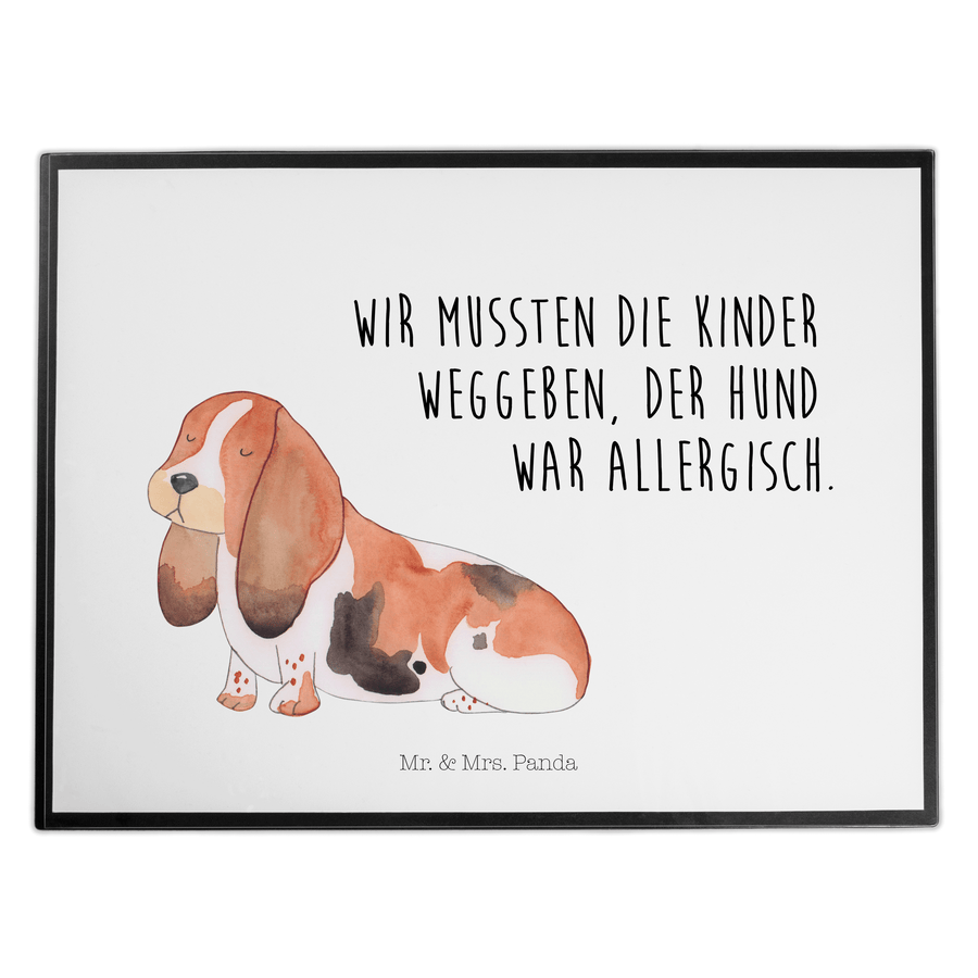 Schreibtischunterlage Hund Basset Hound - mit Spruch - Weiß