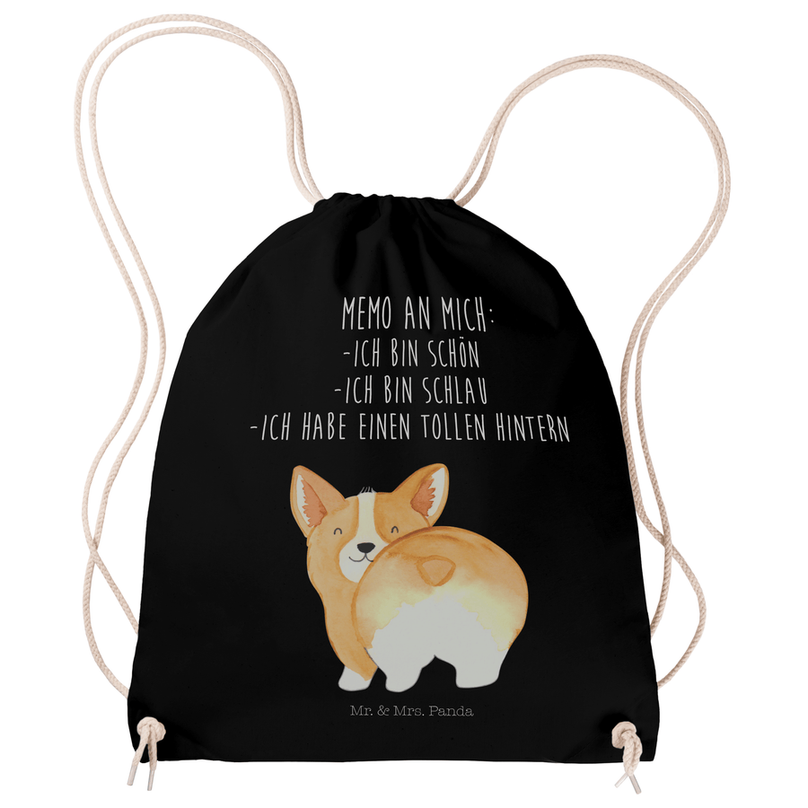 Sportbeutel Corgie Po - mit Spruch - Schwarz