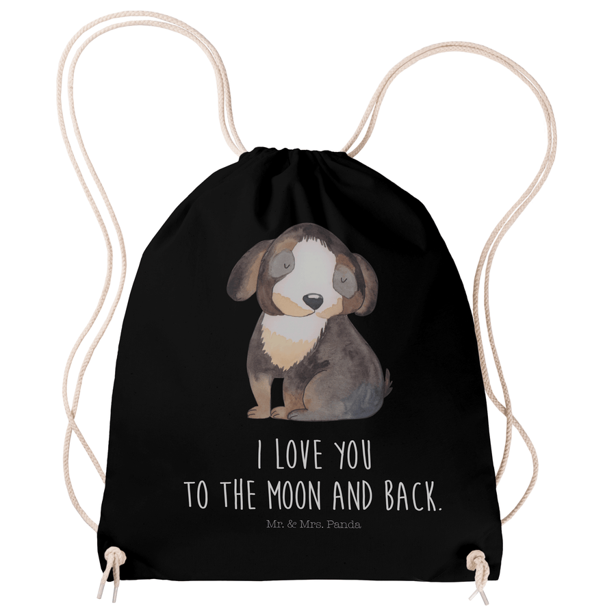 Sportbeutel Hund entspannt - mit Spruch - Schwarz