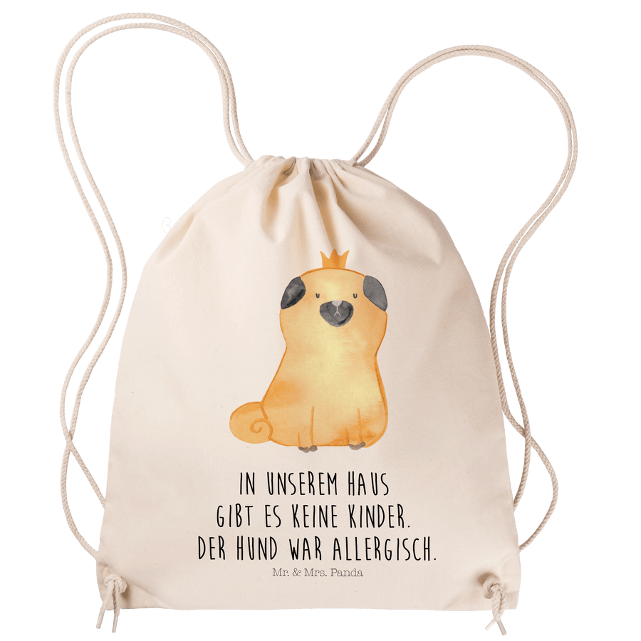 Sportbeutel Mops Krone Turnbeutel, Beutel, Sporttasche, Tasche, Stoffbeutel, Hund, Hundemotiv, Haustier, Hunderasse, Tierliebhaber, Hundebesitzer, Sprüche, Mops, allergisch, kinderlos, Hausregel, Hundebesitzer. Spruch, lustig