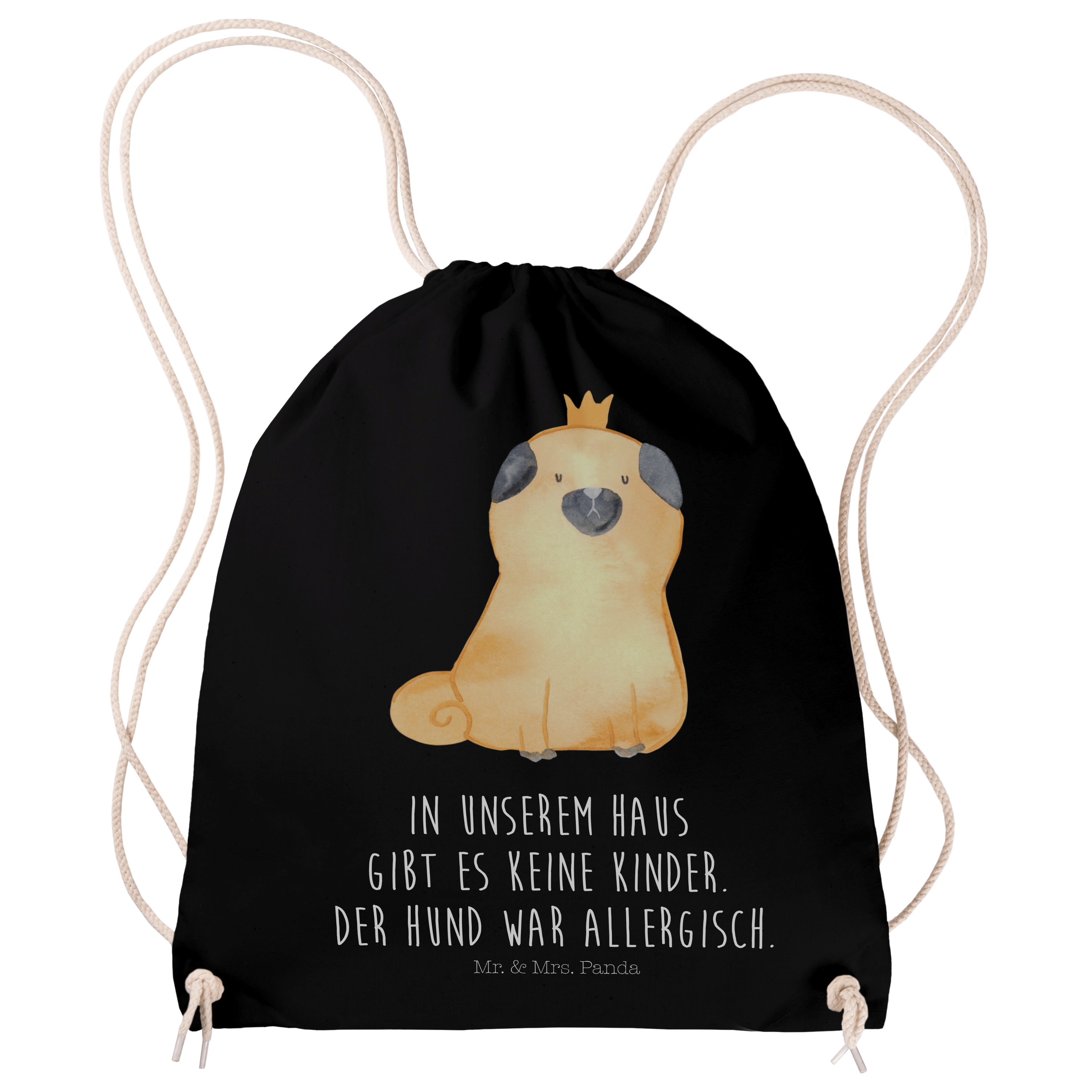 Sportbeutel Mops Krone - mit Spruch - Schwarz