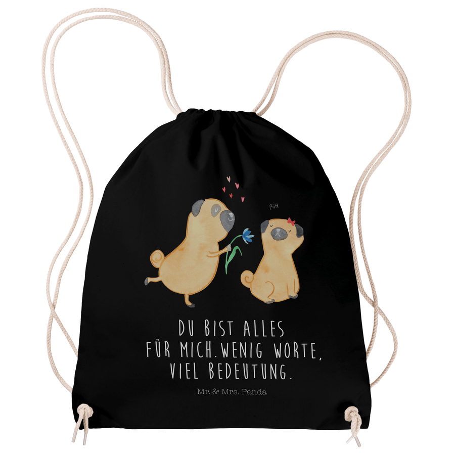 Sportbeutel Mops verliebt - mit Spruch - Schwarz