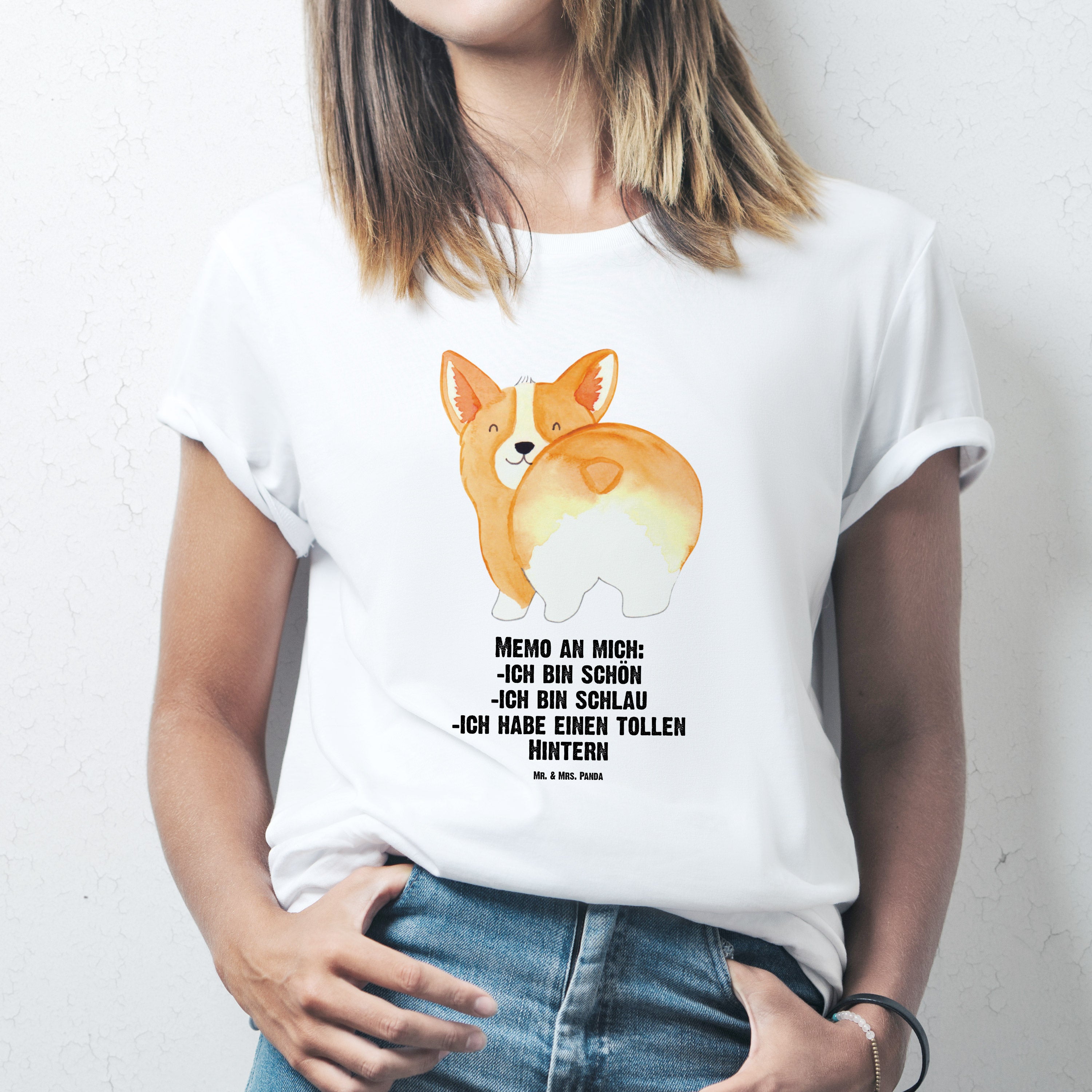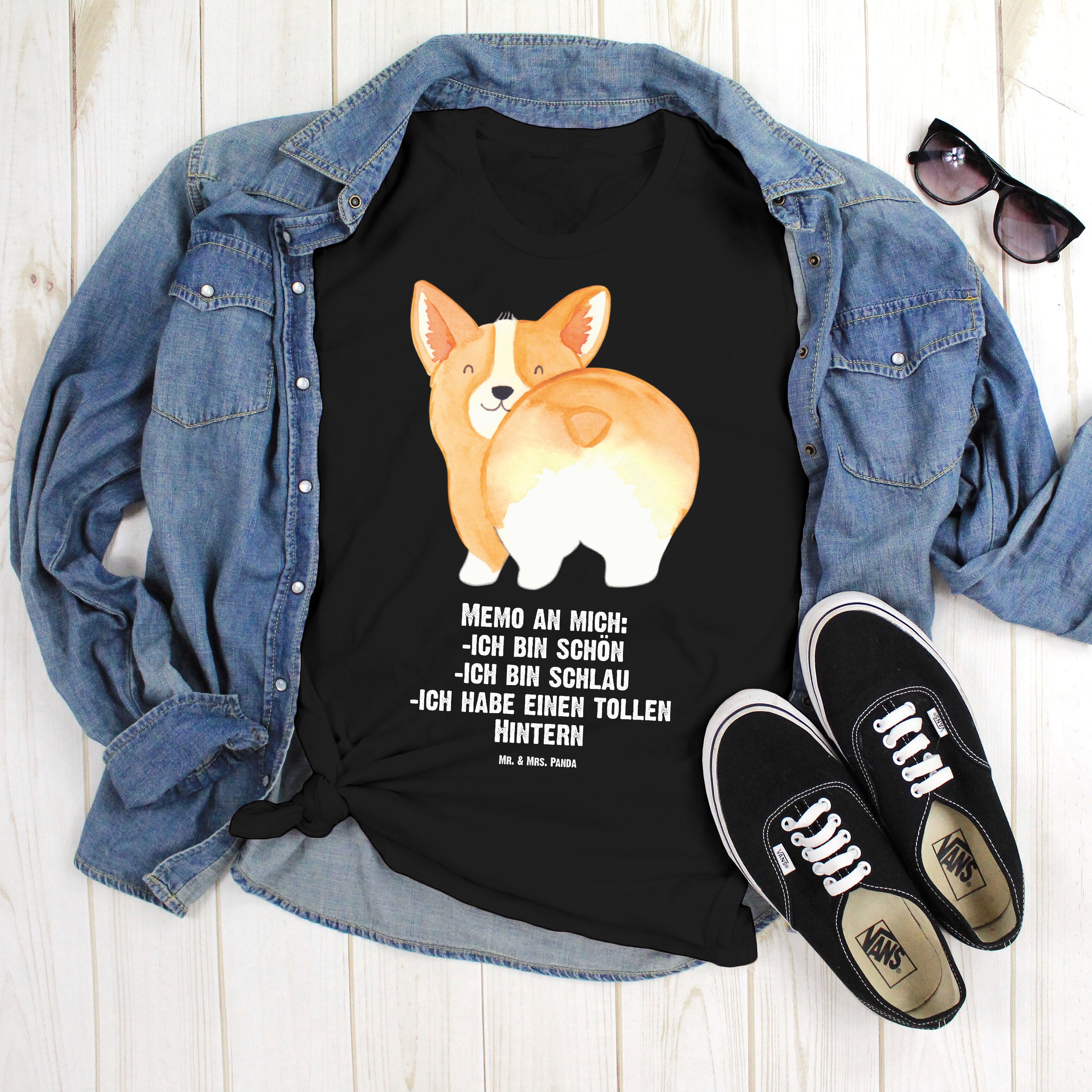 Größe M T-Shirt Corgie Po - mit Spruch - Schwarz