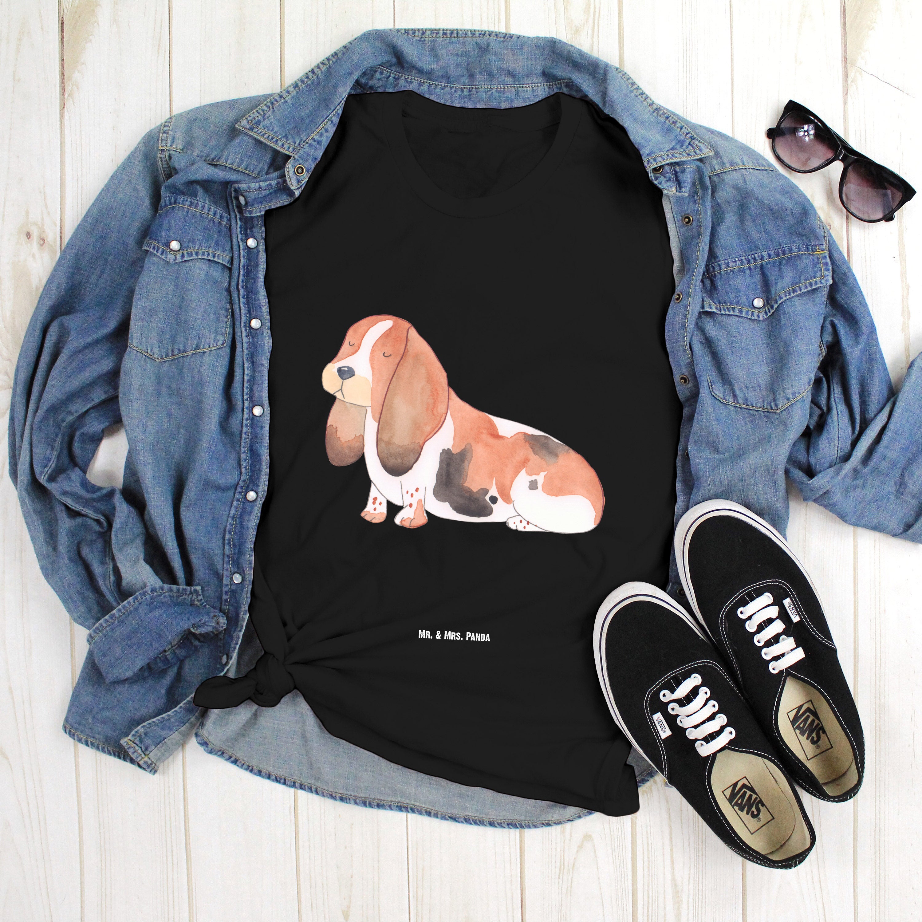 Größe L T-Shirt Hund Basset Hound - mit Spruch - Schwarz