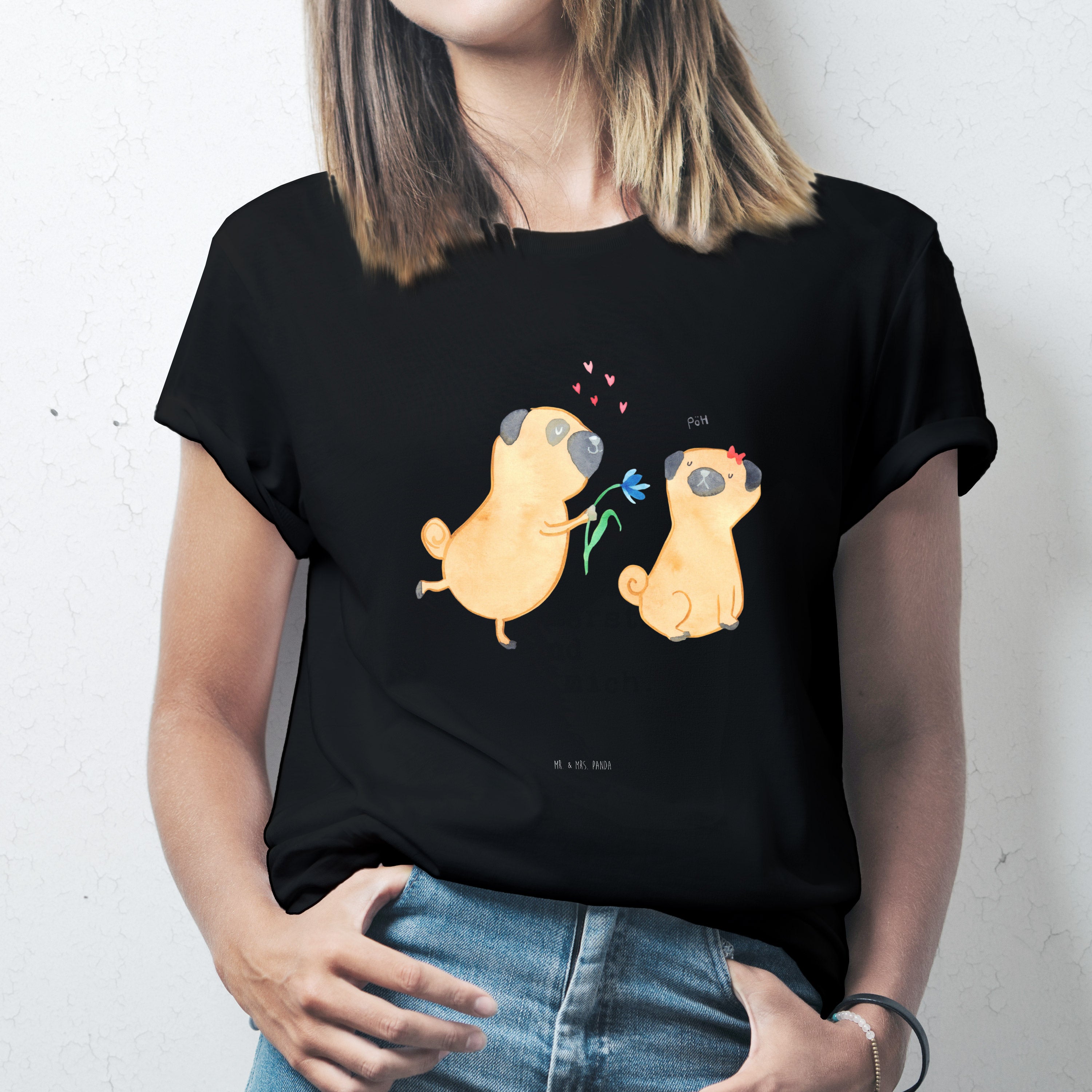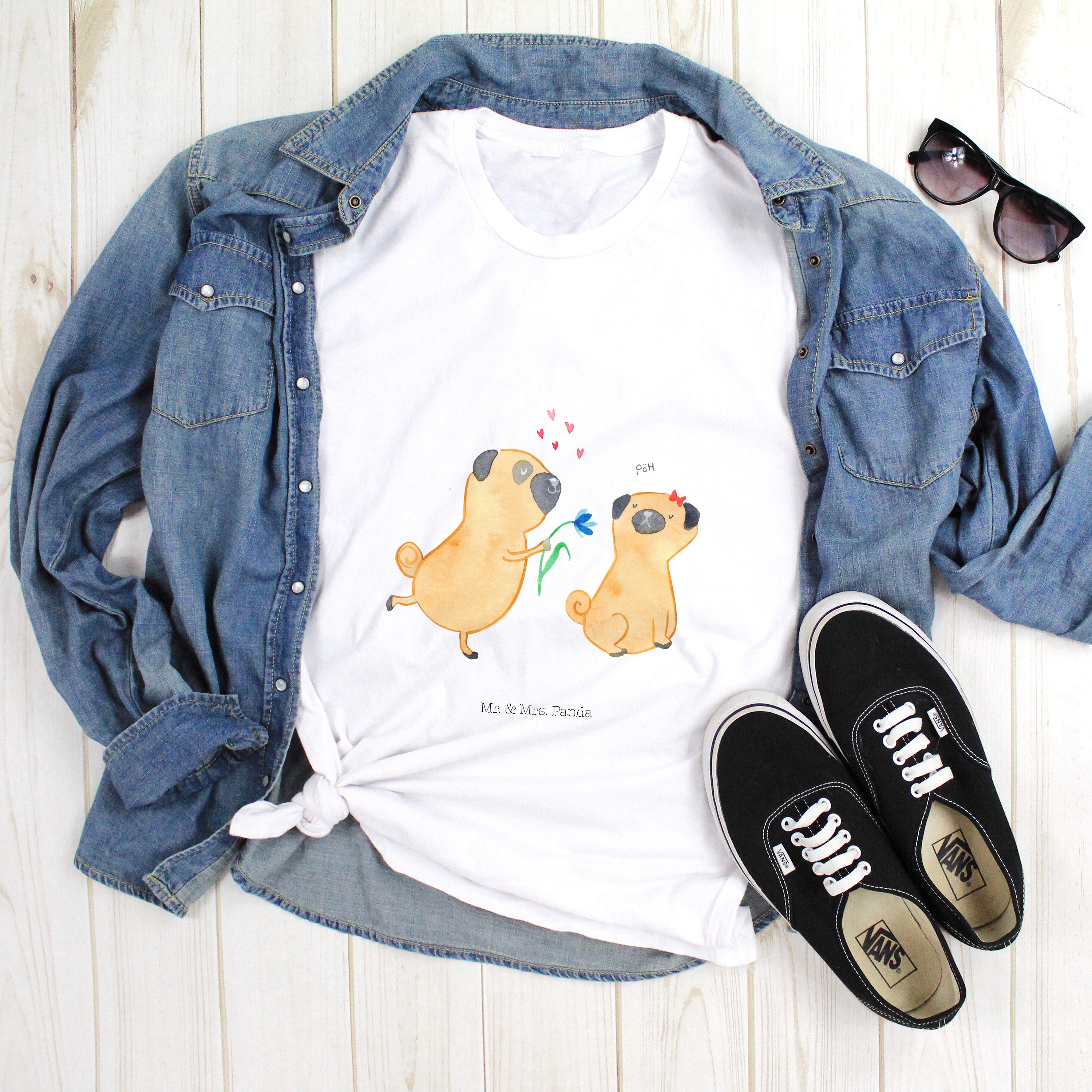 Größe S T-Shirt Mops verliebt - mit Spruch - Weiß