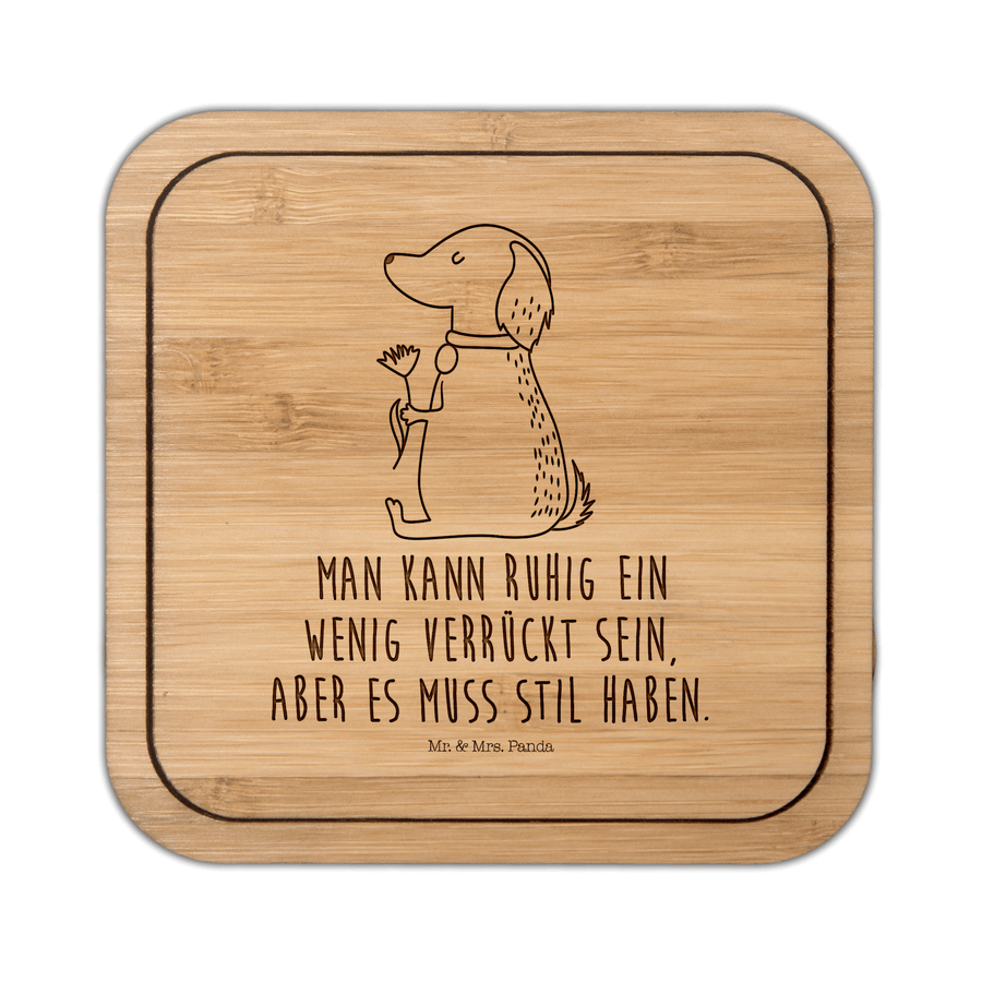 Untersetzer quadratisch Hund Blume - mit Spruch