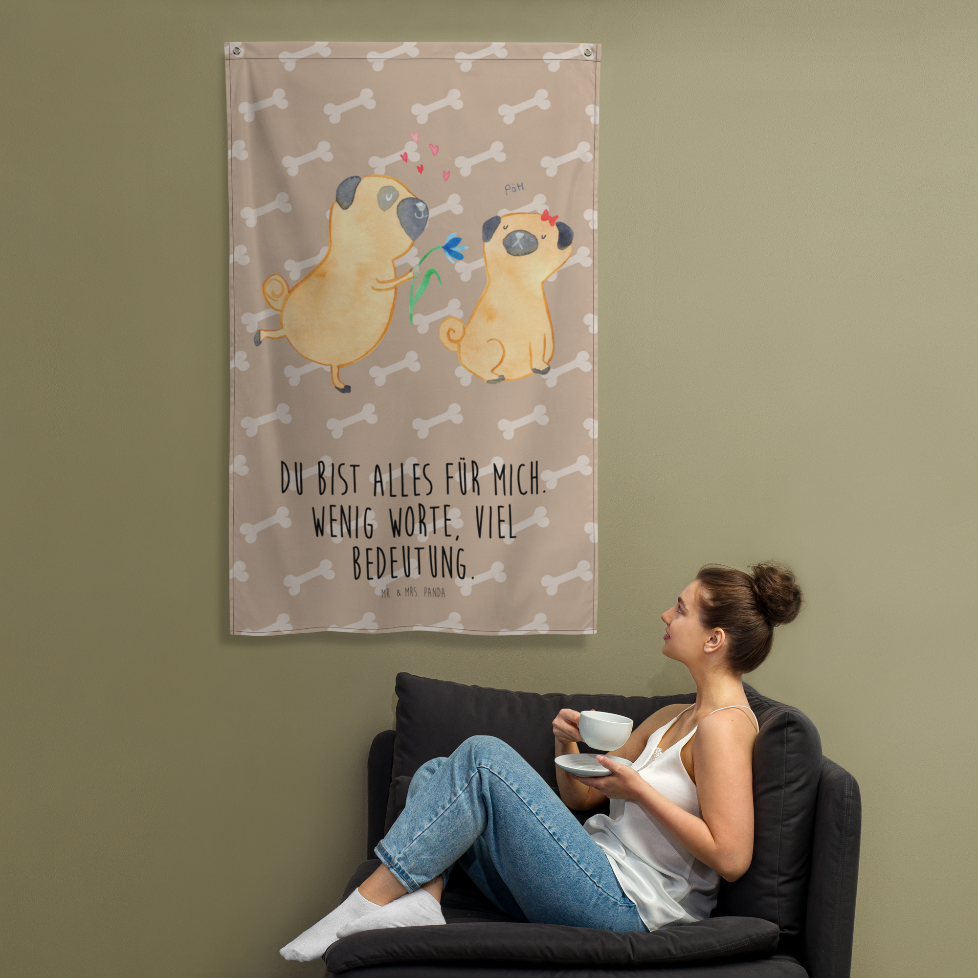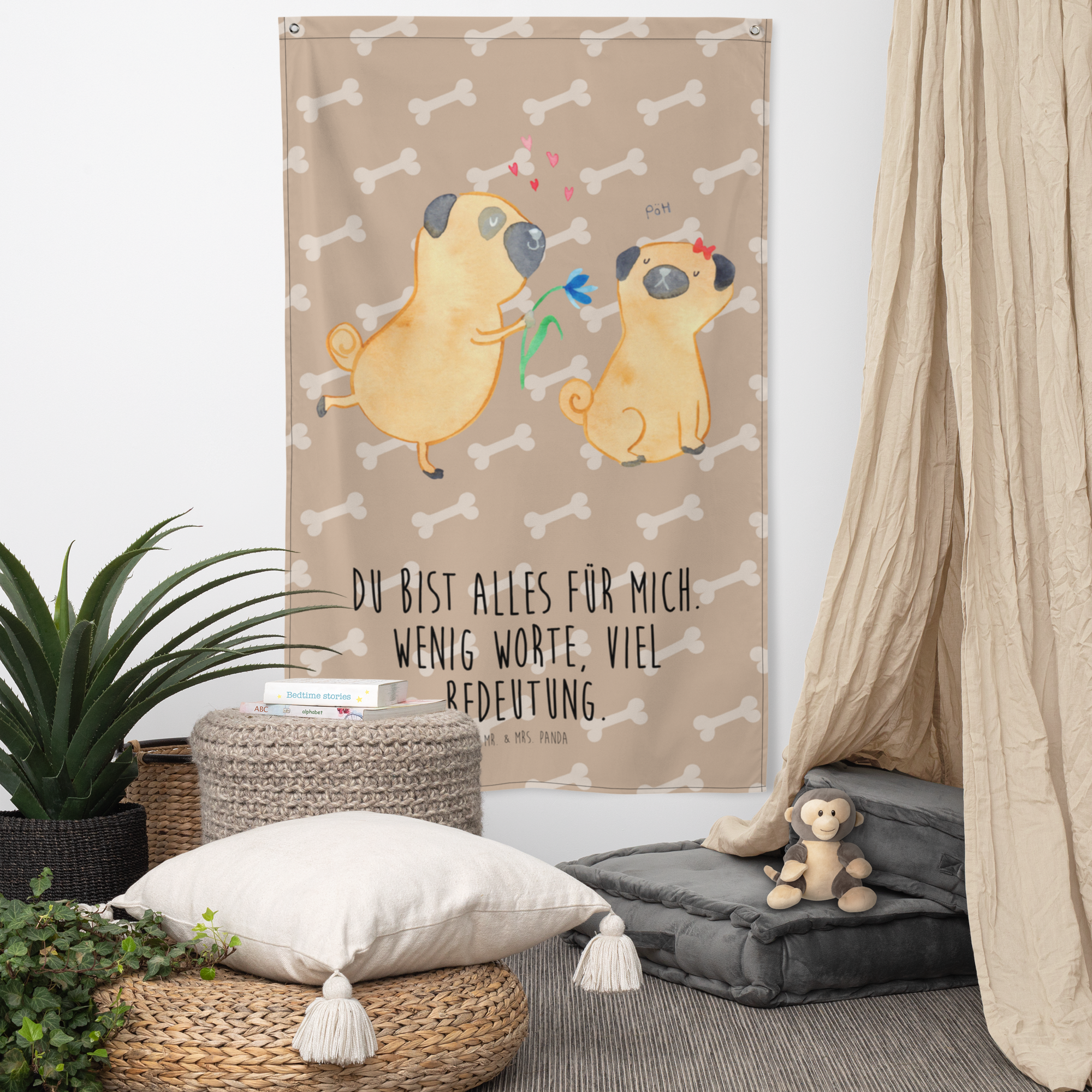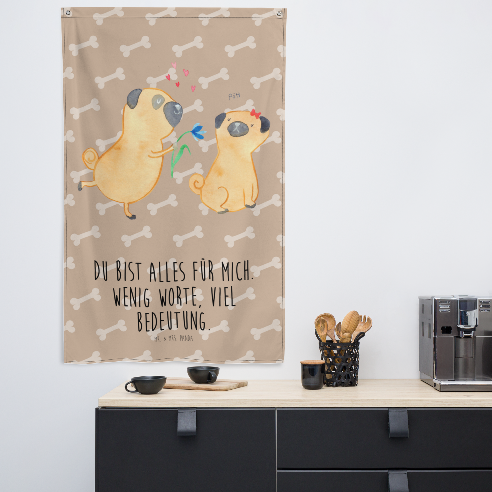 Wandteppich Mops verliebt - mit Spruch