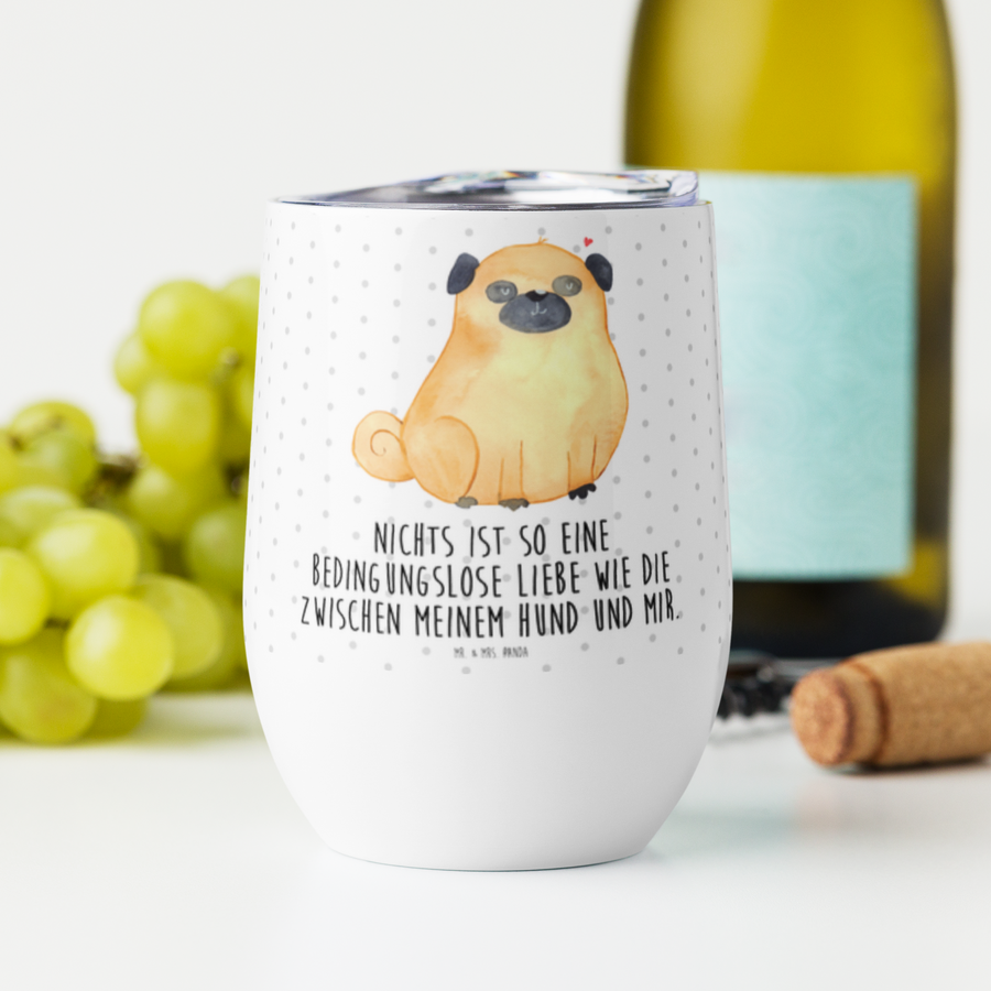 Weinbecher Mops Weinbecher, Glühwein Becher, Heißgetränke, Trinkbecher, Weinkelch, Weingläser, hochwertiger Weinbecher, Weinbecher Reisen, Weinbecher unterwegs, Hund, Hundemotiv, Haustier, Hunderasse, Tierliebhaber, Hundebesitzer, Sprüche, Mops, Liebe, Hundeliebe