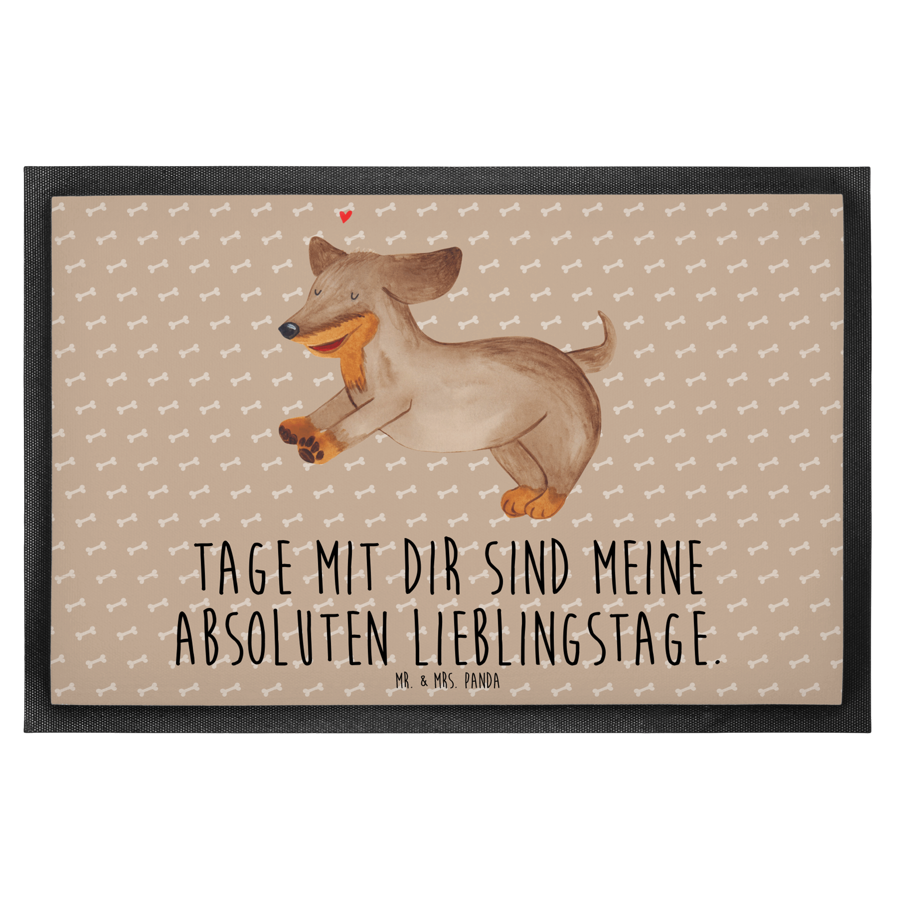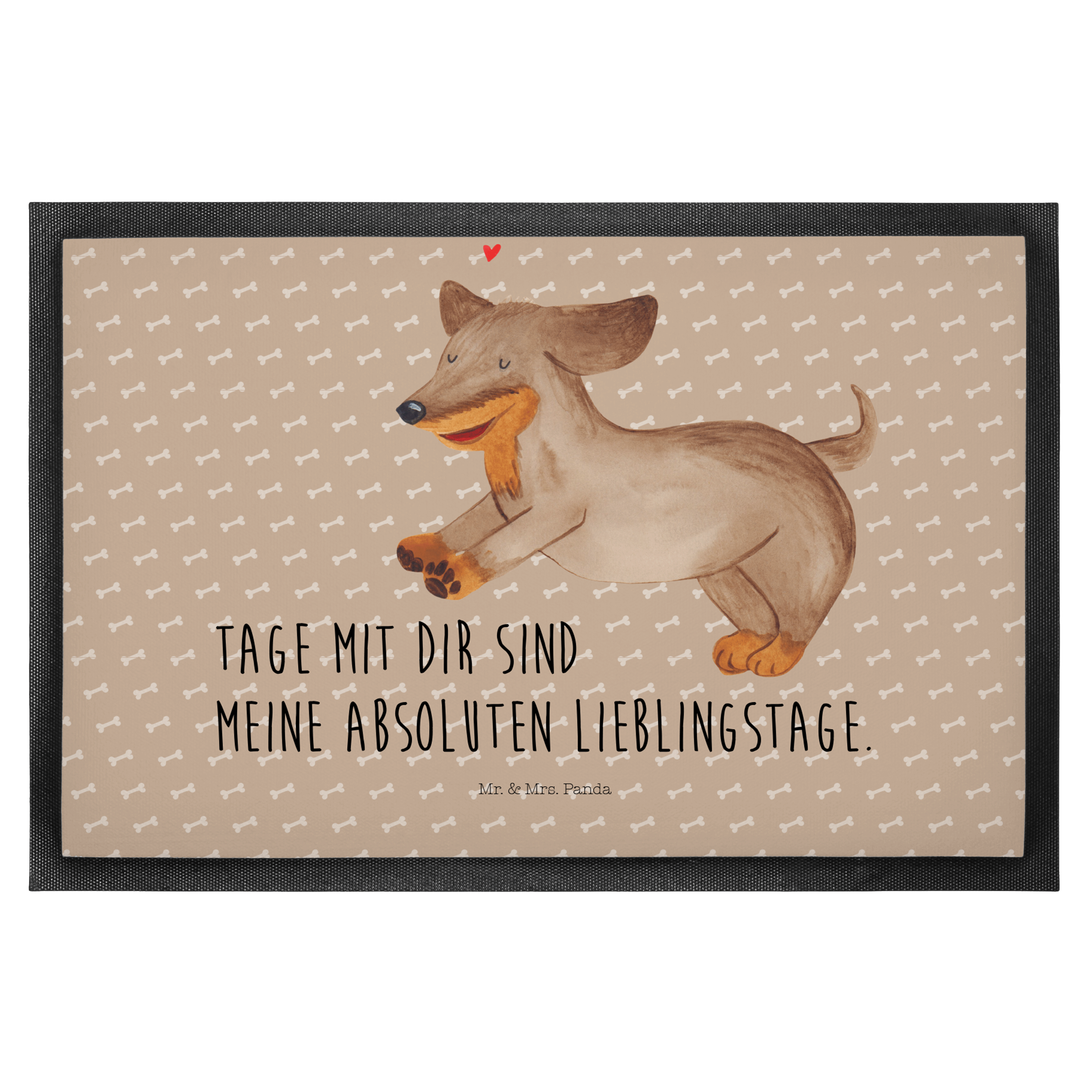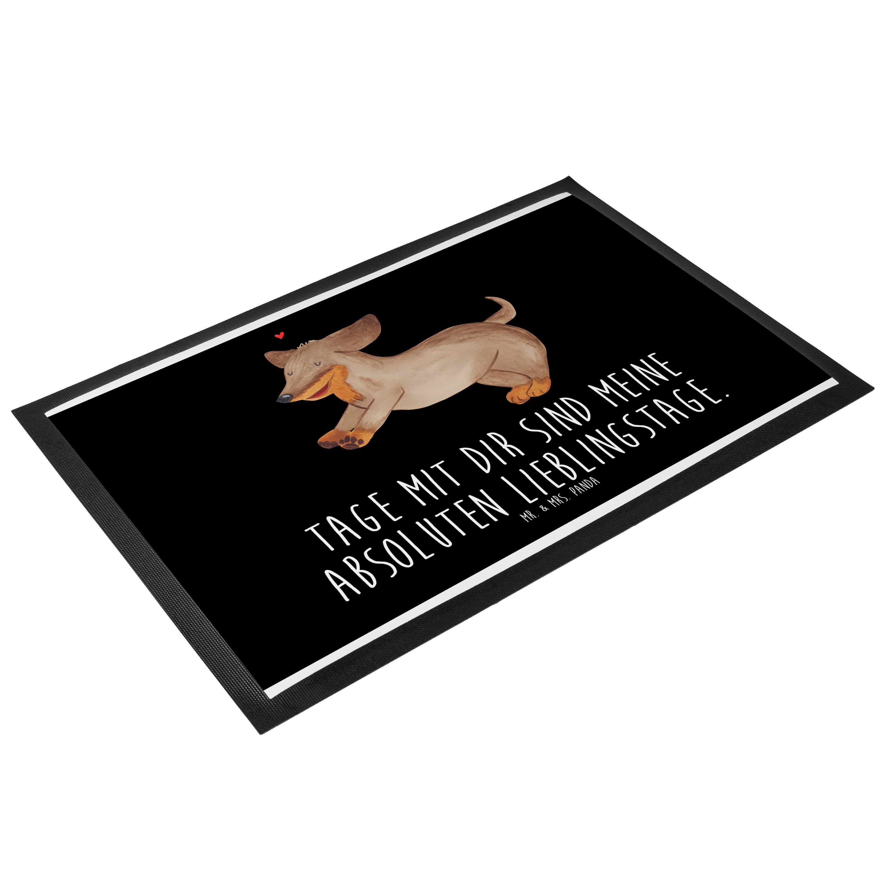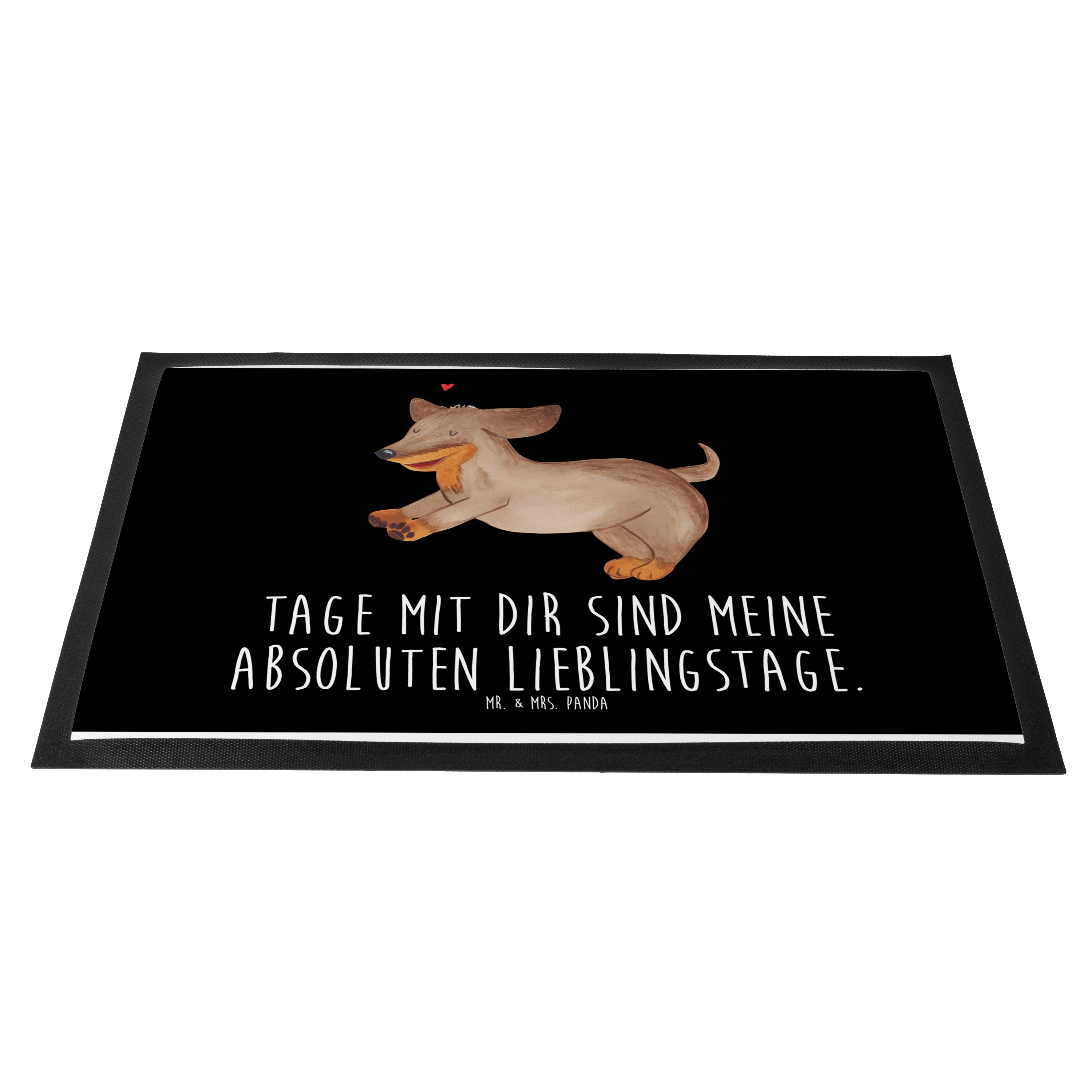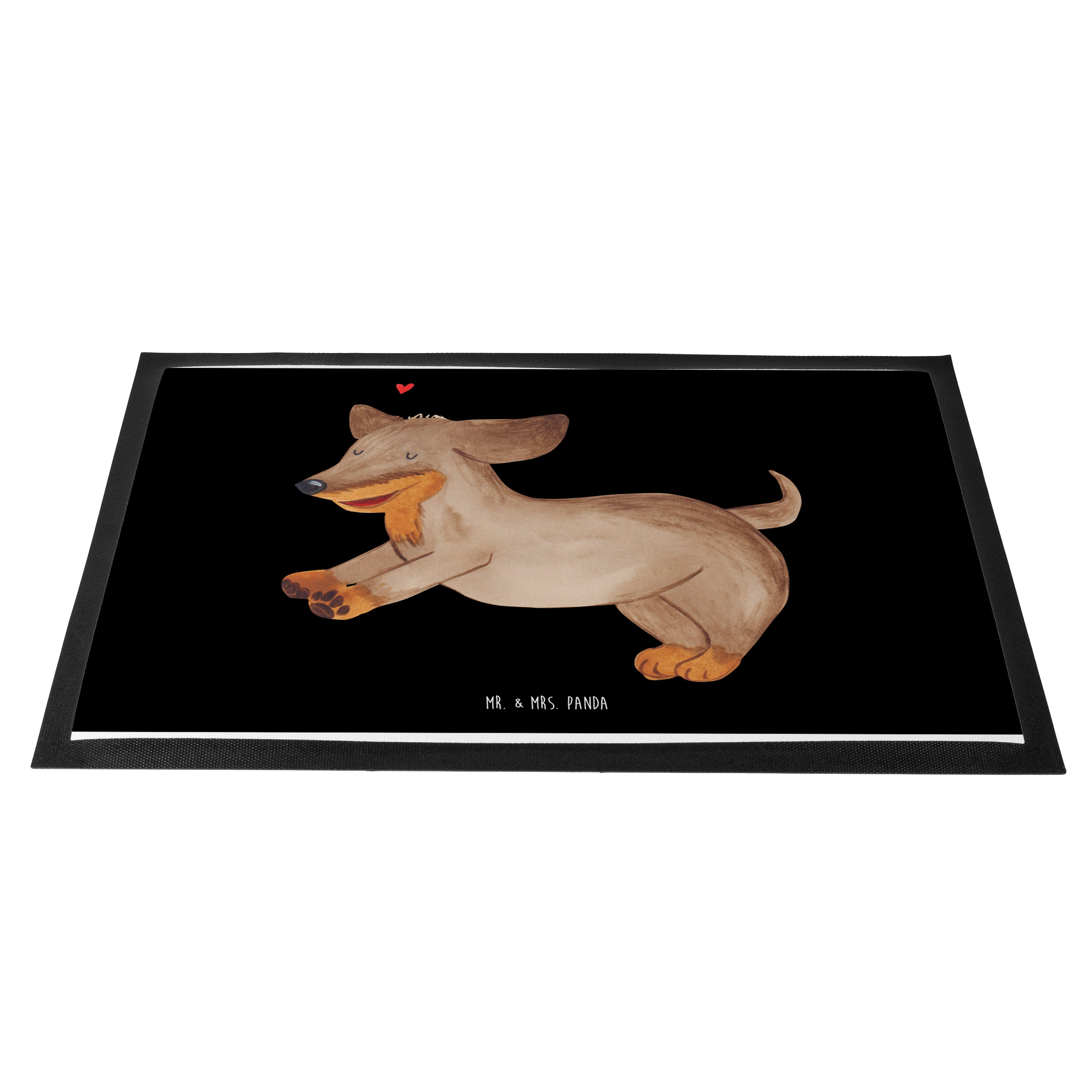 Fußmatte Hund Dackel fröhlich - 40 x 60 cm - mit Spruch - Schwarz