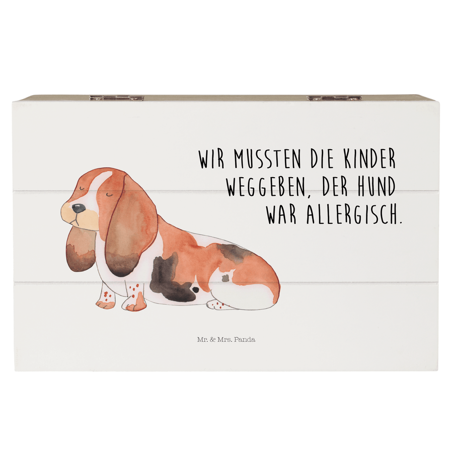 Holzkiste Hund Basset Hound - 19 x 12 cm - mit Spruch - Weiß